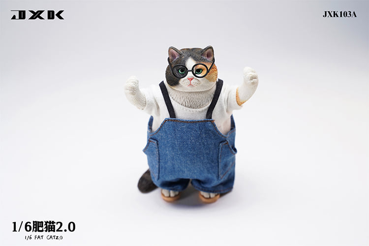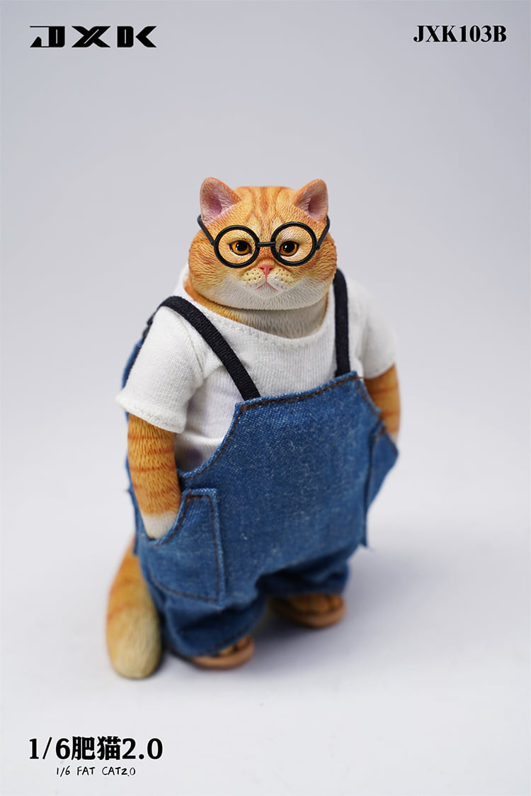 Product:JXKName:1/6 Fat cat 2.0No.:JXK103A/B/C/DWeight:185gMaterial:Resin、ClothSize:length width height:7×5.5×11cmNotice:Glasses、clothes、head and arm are removableList:Fat cat×1Clothes×1Trousers×1Glasses×1