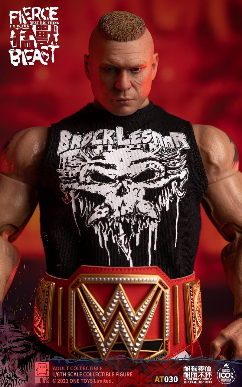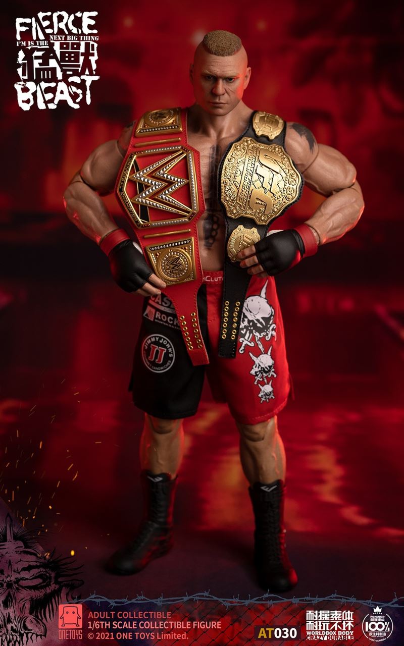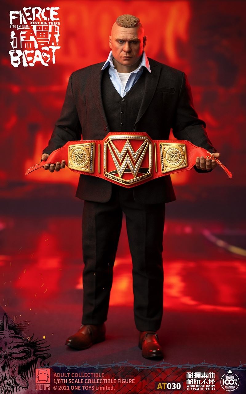 One (1) head sculptOne (1) Worldbox AT030 articulated bodyFour (4) pairs of interchangeable handsTwo (2) pairs of interchangeable gloved handsOne (1) pair of feetOutfits:One (1) suit jacketShirt (1) shirtOne (1) pair of pantsOne (1) pair of shoesOne (1) sleeveless shirtOne (1) pair of shortsOne (1) pair of fight shoesAccessories:Two (2) championship belts