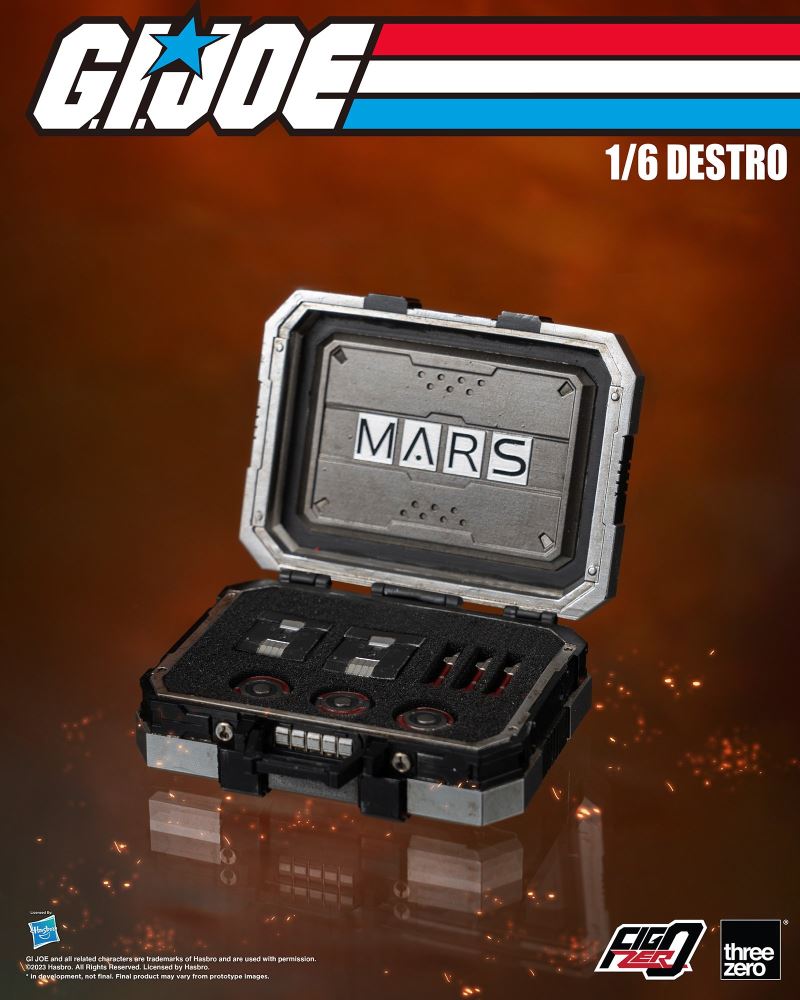 From the classic anime series GI Joe, Fig Zero 1/6 Destro will be available for pre-order at threezero store, threezero Tmall, and threezero distribution partners around the world from 10:00 am on August 22, Japan time!GI Joe Fig Zero 1/6 DestroFrom threezero x Hasbro's 1/6th scale GI Joe series comes a brutal arms dealer, Destro! A redesigned version inspired by the retro GI Joe character, it is a fully movable figure with a height of about 31 cm. The realistic weathering paint that threezero is good at is applied.Fig Zero 1/6 Destro is equipped with a detailed cloth costume, a characteristic pendant necklace, a tactical suit, gauntlets, gauntlets with a mini rocket, a tactical belt with a pouch, and tactical boots. A pistol, its holster, and a machine gun are included as weapons. Also included is a rocket case, 3 explosives, and 3 mini rockets. In addition, a briefcase that can store each weapon is also included! Four pairs of interchangeable wrist parts are included (open hand, fist, weapon holding hand, briefcase holding hand).specification1/6 scale, height about 31cmRetro GI Joe characters redesigned by threezerovarious accessoriesPrecise modeling with paint including weathering expression1/6 scale movable body with a wide range of motion wearing a cloth costumecostumePendant necklace x 1Tactical suit x 1Gauntlet x 11 gauntlet with mini rocketTactical belt with pouch x 11 pair of tactical bootsaccessories1 pistol and its holsterMachine gun x 1Rocket case x 2 (exchangeable with explosives)Explosive x33 mini rocketsBriefcase x 14 pairs of exchangeable wrist parts: 1 pair of open hands, 1 pair of fists, 1 pair of hands for holding weapons, 1 pair of hands for holding a briefcaseMaterial: ABS, PVC, POM, clothPre-order start at threezero store: August 22, 2023 10:00 am Price at threezero store: 149.99 USD / 22,500 yen + shipping Scheduled shipping date: Q1 2024