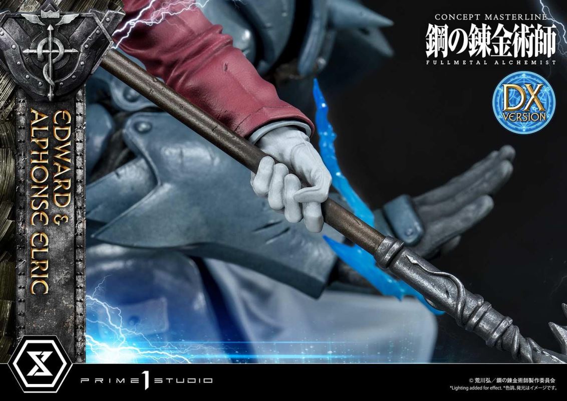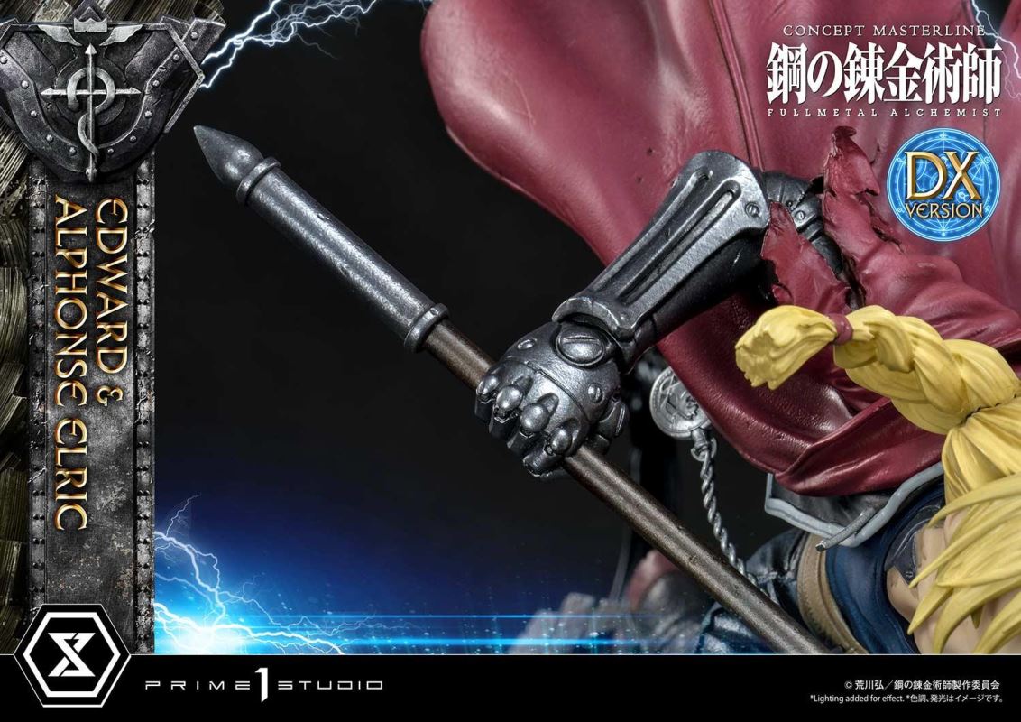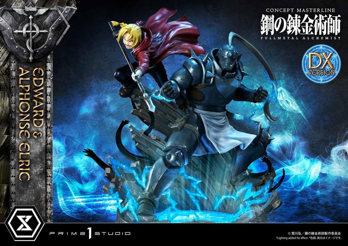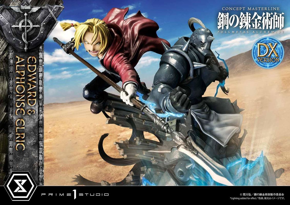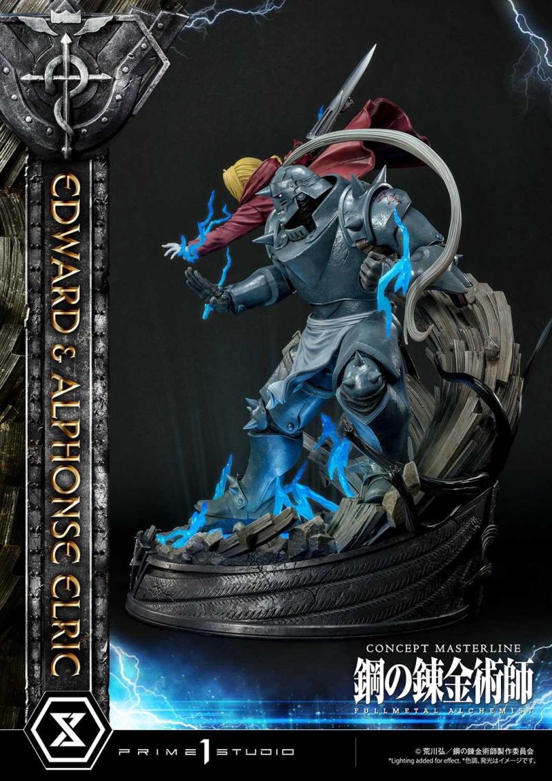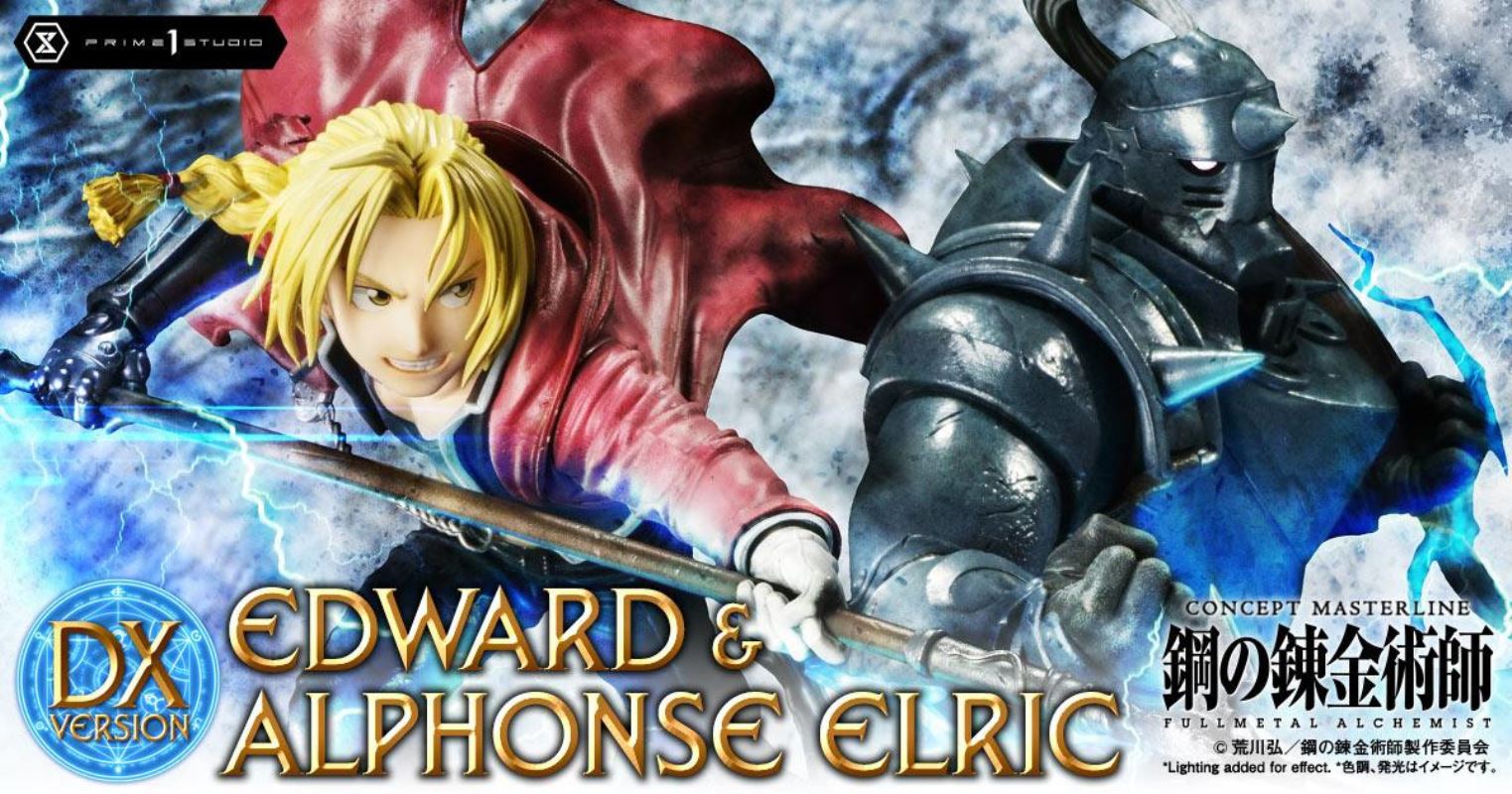 ศิลปินที่มีความสามารถของเราได้วางท่า State Alchemist, Ed Elric, เต็มไปด้วยพลังในการเล่นแร่แปรธาตุ, บินไปในอากาศบนพื้นแปลงร่าง; ขณะที่อัลมีท่าทีป้องกันที่น่าประทับใจอย่างสง่างาม ยืนพร้อมอยู่เหนือวงกลมแปลงร่างที่ส่งเสียงแตกด้วยเวทมนตร์จากต่างโลก เราได้เน้นย้ำถึงความคล่องแคล่วและพลังของ Ed ในการออกแบบเสื้อโค้ท ท่าทาง และการเคลื่อนไหวของ State Alchemist pocketwatch ที่ลื่นไหล เอ็ดดูราวกับว่าดึงออกมาจากอะนิเมะด้วยใบหน้าที่แน่วแน่และด้วยแขน Automail ที่สร้างขึ้นซึ่งมีอาวุธระยะประชิดที่เข้าได้คือ Automail Blade! Al Elric มักถูกเข้าใจผิดว่าเป็น Fullmetal Achemist เพราะชุดเกราะเต็มตัว เป็นนักศิลปะการต่อสู้ที่ประสบความสำเร็จ และแสดงทักษะของเขาด้วยท่าทางที่สมบูรณ์แบบ เราได้ทำให้แน่ใจว่าจะต้องจับคู่โทนสีและสีของสีที่ใช้ในชุดเกราะโลหะของเขาให้เข้ากับอะนิเมะอย่างแน่นอน เรายังให้ความสนใจเป็นพิเศษกับระดับของความเสียหายจากการรบบนชุดเกราะของเขาเพื่อแสดงให้เห็นว่า Alphone ใช้ประโยชน์จากมันได้ดี