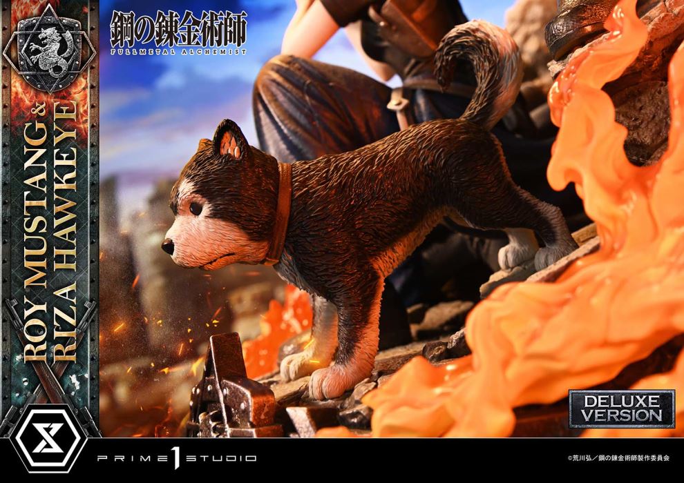 “Lieutenant, follow me” – Roy Mustang“I will follow you into hell if you ask me to” – Riza HawkeyePrime 1 Studio is very proud to present you the next addition to the Concept Masterline Series: the long-awaited 1/6 scale CMFMA-02DXS Roy Mustang & Riza Hawkeye Deluxe Bonus from Fullmetal Alchemist!We take you back into the captivating world of Fullmetal Alchemist, where alchemy is a powerful science governed by the law of equivalent exchange. Now joining the battle alongside the protagonist siblings Edward and Alphonse on their quest to uncover the dark secrets of the Philosopher’s Stone, the legendary duo Roy Mustang and Riza Hawkeye, are brought to life in this jaw-dropping 19-inch statue.Our artisans at Prime 1 took extreme care in designing and capturing the dynamic energy of Roy Mustang and Riza Hawkeye in action. Roy, the charismatic and ambitious Flame Alchemist, leaps into action with a great sense of composure, hand outstarted – sparkles surrounding his outstretched hand as he prepares to unleash devastating fire magic. Riza, the loyal lieutenant, is crouched on one knee, providing cover fire, her sharp eyes focused, ready to strike with her rifle. Their deep bond and mutual trust are at the heart of many pivotal moments in the series, and we’ve strived to recreate that in this beautiful sculpt. Like always, our experts pull no punches when it comes to bringing drawn characters to life – the textures and shading of every type of material on the characters are carefully thought out and executed to minute perfection, from the wrinkles of Colonel Mustang’s Amestris military uniform to Lieutenant Hawkeye’s rifle wood grain. Let’s not forget the two of them are protected by the brave and energetic Black Hayate - How cute!The Deluxe Version adds multiple swappable parts for both characters to grant you more flexibility in your storytelling. Mustang gets a set of arms, putting on his ignition cloth gloves as well as another right arm where he snaps his fingers. He also gets a swappable head part featuring a different facial expression. Riza, being the expert marksman that she is, gets a swappable arm set and a handgun.And when you order the Bonus Version from our official store or any authorized distributor, you will get an additional swappable head part for Riza, featuring her beautiful blond hair down, a very rare sight that many fans will enjoy!The base features the crest of Amestris, surrounded by the effects of flames and smoke engulfing our duo in a magnificent display of offense and defense. Our painters have used a paint gradation technique for the flames, adding an extremely realistic look to the statue as a whole, from a distance, flames do look like they glow as opposed to using LED. This statue is bound to amaze any fans who might lay their eyes upon it.Fans of Fullmetal Alchemist rejoice! Don’t miss out on this mend-bending statue and embrace the duo’s magic and heroism by pre-ordering the CMFMA-02DXS Roy Mustang & Riza Hawkeye Deluxe Bonus Version while quantities last. You can display this piece on its own or accompanied by its companion statue Edward & Alphonse Elric to recreate the ultimate epic battle scene.Specifications:Statue Size approximately 19.6 inches tall [H:50cm W:40cm D:48cm]Fullmetal Alchemist-themed baseTwo (2) Swappable head parts for Roy Mustang (Normal & Smile)Two (2) Swappable right arms for Roy Mustang (Spark & Snap Ready)One (1) Arm set for Roy Mustang (Putting on glove)One (1) Arm set for Riza Hawkeye (Holding Rifle)One (1) Arm set for Riza Hawkeye (Holding Handgun)One (1) Swappable head part for Riza Hawkeye (Normal)One (1) Additional Swappable head part for Riza Hawkeye (Long hair) [BONUS PART]Notice:Prototype samples shown.Product details could be subject to change without further notice.Please note the final product specifications may differ because each product is Handmade.Since the product is still in the development stage, the Size (up to 10%) & Weight (up to 10kg) may be changed during the production stage.©荒川弘/鋼の錬金術師製作委員会DETAILSBrandsPRIME 1 STATUECollectionConcept MasterlineSeriesFullmetal AlchemistScale1/6 ScaleProduct CodeCMFMA-02DXSProduct Size Approx.H:50cm W:40cm D:48cmCarton(Est):1 boxProduct Weight Approx.17.4 kgMaterialsPolystone and other materialsJAN4580708049595