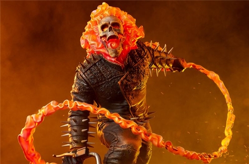 ABOUT“Mine is the power of hell unleashed!”Sideshow presents the Ghost Rider Premium Format™ Figure, one hell of a Marvel collectible statue for fans of the Spirit of Vengeance.The battle is getting heated as this skull-faced antihero prepares to put sinners in the hot seat. The Ghost Rider Premium Format™ Figure measures 21” tall x 14” wide x 24” deep as the brimstone biker erupts from the ground, riding his flaming Hell Cycle and swinging his blazing chain whip to deliver burning retribution. This massive display of dynamic action has translucent flames and detailed paint application that gives the impression of overheating metal.The Ghost Rider Premium Format™ Figure is fully sculpted from the flames on his head to his hellish base. An included alternate portrait shows him mid-transformation, as his mortal flesh is seared away to reveal the rider within. His moto jacket and pants have distressed leather-like textures and are decorated with silver spikes to give Ghost Rider his signature streetwear look. Additional orange paint highlights on his costume capture the look of light and heat as hellfire burns all around him on this fateful ride.Can your soul withstand the Penance Stare? Bring home the Ghost Rider Premium Format™ Figure for your Marvel collectibles display and find out.Materials : PolystoneProduct SizeHeight: 21 (53.3 cm)Width: 14 (35.6 cm)Depth: 24 (61 cm)Weight: 14 lbs (6.4 kg) ** Size and weight are approx. valuesLearn moreSKU300800UPC747720251601