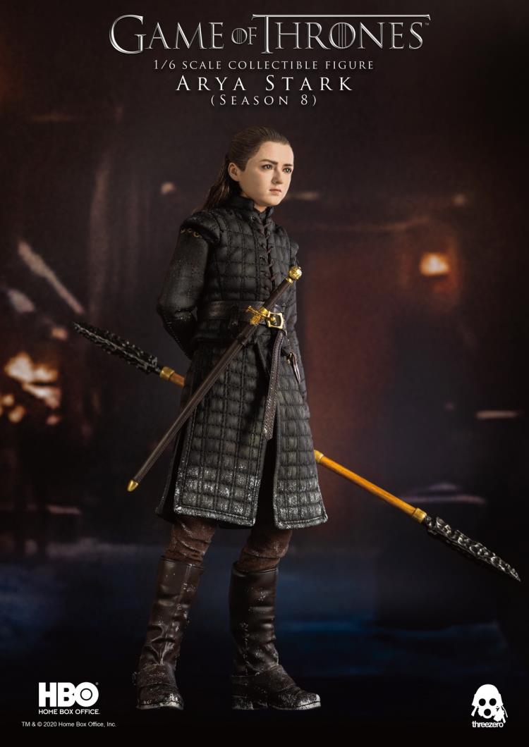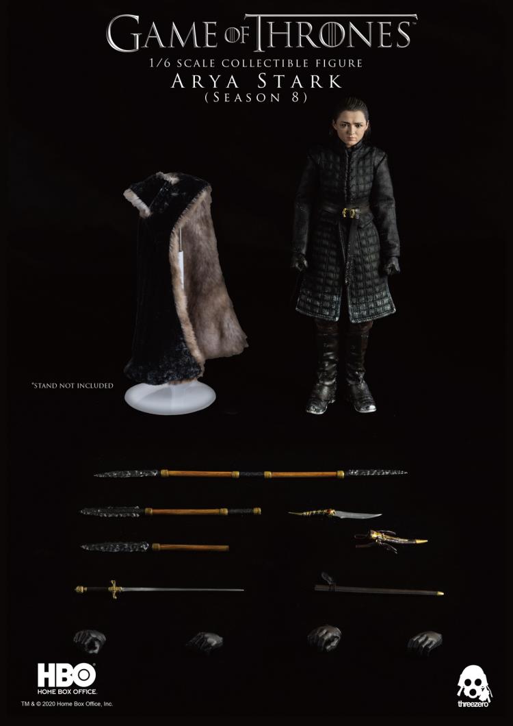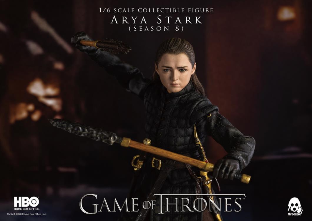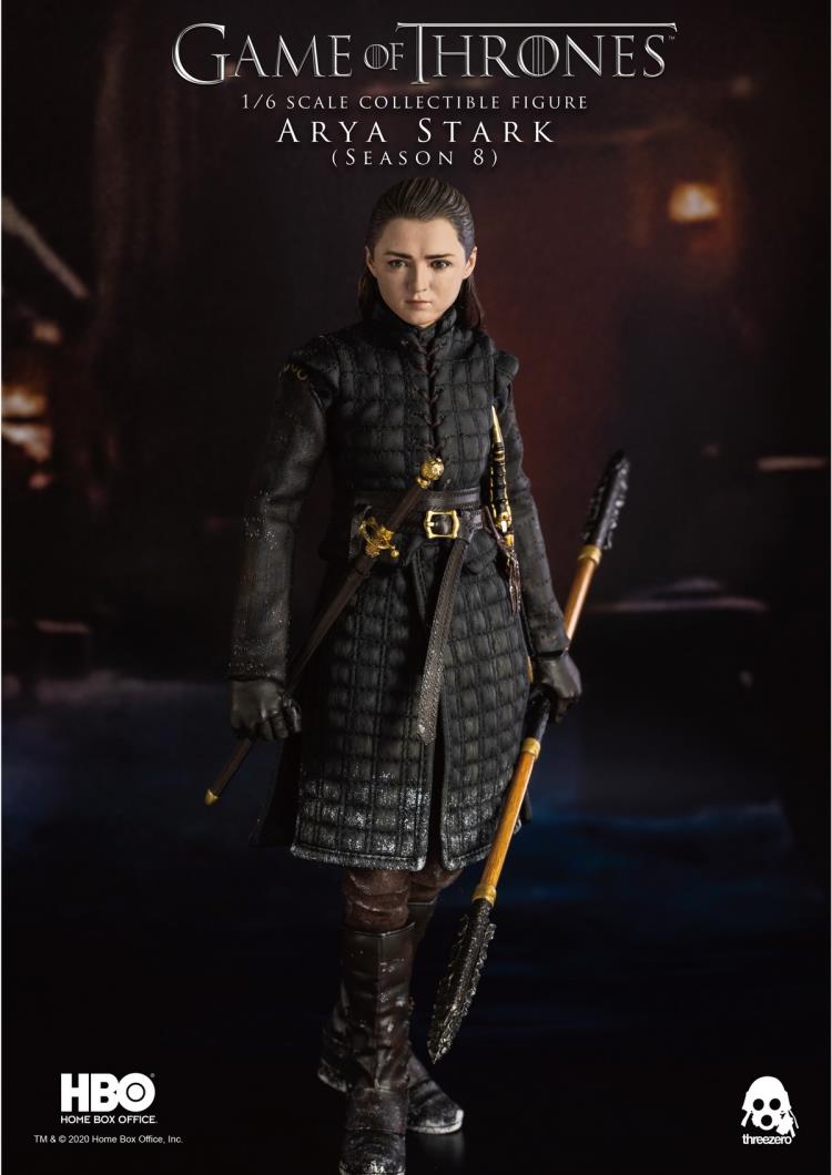 Threezero ใช้ฝีมือที่ยอดเยี่ยมเพื่อรับบทบาทในซีซั่นสุดท้ายของรายการทีวี HBO "A Song of Ice and Fire: Game of Thrones": Arya Stark (อารีสตาร์ก) ซึ่งจำลองมาอย่างสมบูรณ์แบบในตุ๊กตาสะสมขนาด 1/6