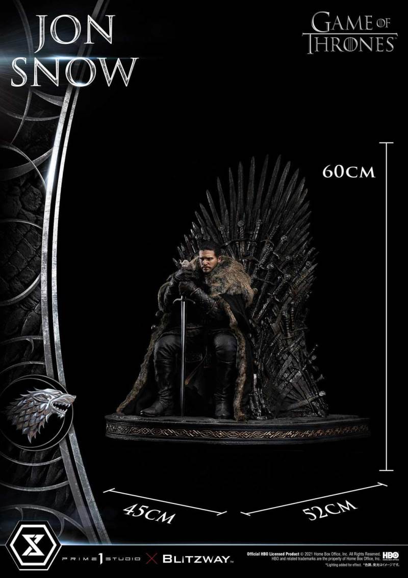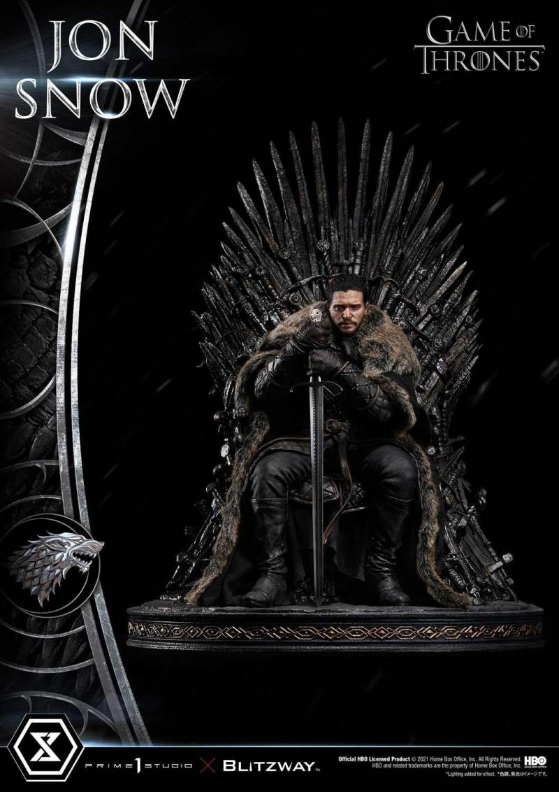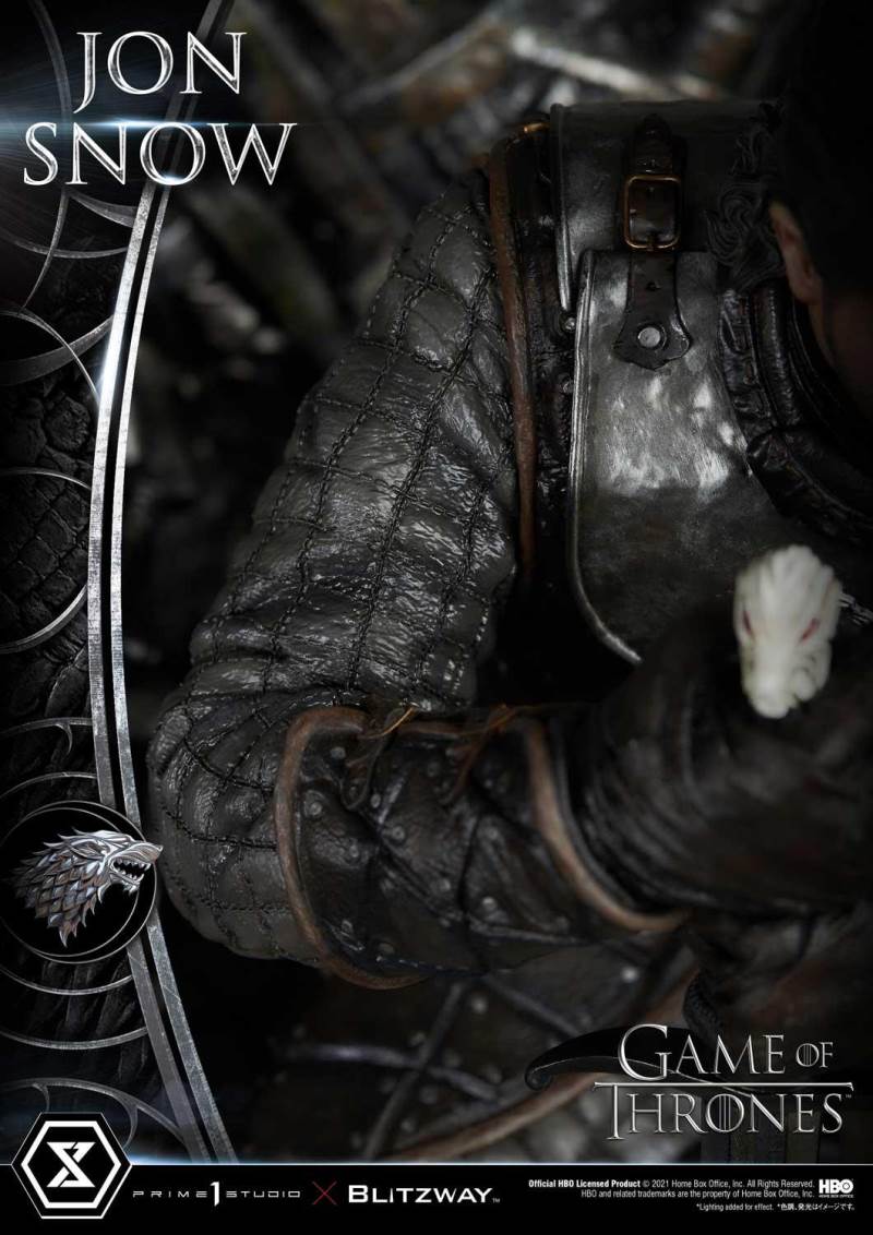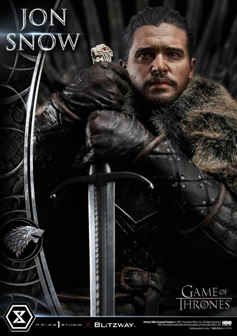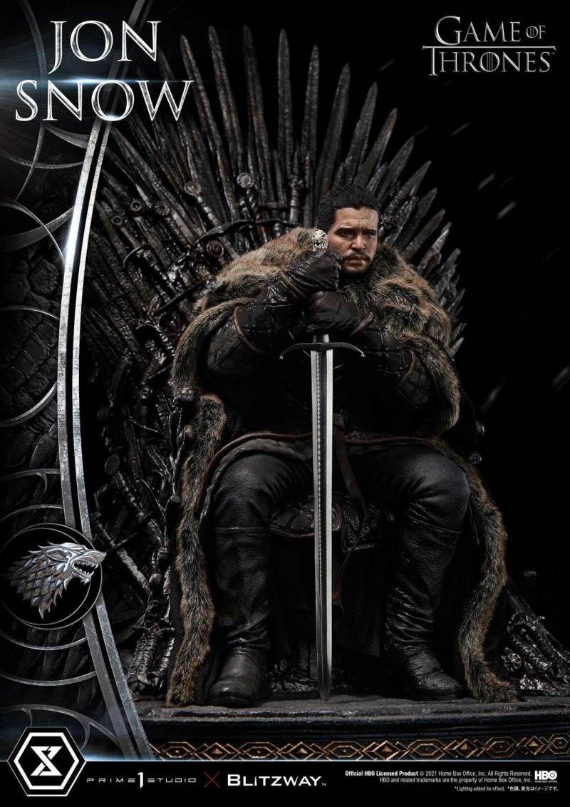 เขาเป็นที่รู้จักจากหลายชื่อ: The Bastard of Winterfell, Lord Snow, The White Wolf...Aegon Targaryen แต่ลอร์ดโครว์ทำงานในจิตใจและความคิดของเราในฐานะจอน สโนว์ บุตรนอกสมรสของเอ็ดดาร์ด สตาร์ค ราชาแห่งแดนเหนือ และสุดท้าย Prime 1 Studio ร่วมกับ Blitzway นำเขามาพบกับคุณในอารมณ์ครุ่นคิด แม้ว่าจะนั่งสูง 24 นิ้ว แต่ผลงานชิ้นเอกของ Game of Thrones นี้ต้องการให้จัดแสดงในสถานที่อันทรงเกียรติ ในรูปปั้นนี้ Warden of the North นั่งอย่างไม่สบายใจบนบัลลังก์เหล็ก จับดาบเหล็ก Valyrian ในตำนานของเขา Longclaw: Lord Commander Jeor Mormont มอบให้จอนเพื่อช่วยชีวิตเขา