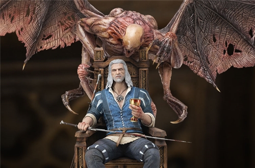 ABOUT THIS QUARTER SCALE STATUE“Witchers were made to kill monsters. It doesn’t matter who posted the notice, the coin has to be right, that’s all.” – Geralt of RiviaSideshow and PureArts are proud to bring the stunning Blood & Wine cover art to life with one of our largest and most impressive statues to date! Surmounted by the High Vampire Dettlaff with a spectacular 42 inch wingspan, Geralt of Rivia gazes intently from his throne and gripping a bloodied chalice in one hand, his enhanced griffin silver sword in the other.BrandThe Witcher 3: Wild HuntManufacturerPureArtsTypeStatue Quarter Scale StatueGenreFantasy Dark Fantasy Video GameWHAT'S IN THE BOX?The Geralt Deluxe Quarter Scale Statue features: Massive 1:4 Scale sculpt with hyper-detailed skin and clothing texturesDettlaff High Vampire is a full body sculpt with a 42” (106 cm) wingspanStatue includes the griffon silver sword and his steel swordADDITIONAL DETAILS & DIMENSIONSMaterialsMetal , PolystoneProduct SizeHeight: 23.62 (60 cm)Width: 42 (106.7 cm)Depth: 18.89 (48 cm) *Box SizeHeight: 17.32 (44 cm)Width: 16.92 (43 cm)Depth: 26.37 (67 cm) ** Size and weight are approximate values.SKU911721UPC713929404841Item shown is a prototype. When shipped, the final production piece may differ in appearance.
