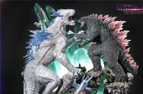 Clashing Powers, Radiant Ice and Heat.A Titan Showdown Comes to Life in the Hollow Earth Diorama.From the epic film Godzilla x Kong: The New Empire, which marks a new chapter in the saga of the kings and commemorates both Godzilla’s 70th anniversary and the 10th anniversary of the Monsterverse, comes an all-new Ultimate Diorama Masterline statue featuring the battle between Godzilla and Shimo.The surface world’s reigning king, Godzilla, and the legendary ice beast, Shimo—this statue captures the climactic clash between these two Titans, embodying their immense scale, raw power, and otherworldly beauty. Locked in a stance of unyielding tension, their confrontation is rendered as symbolically as an ancient mural or a royal crest. Their difference in size has also been faithfully reproduced. The setting has been relocated from Rio de Janeiro, as seen in the film, to the Hollow Earth. Towering cliffs and sky-piercing crystals form a dramatic and dynamic base layout.While drawing inspiration from the film, the sculpt and paintwork take an imaginative turn. Godzilla’s chiseled physique and Shimo’s majestic white silhouette have been intricately detailed down to each individual scale. The ancient ruins beneath them exude a weathered, timeworn presence. LEDs are embedded throughout the Titans and the base, illuminating them with glowing pink and blue—each representing their elemental power—alongside the mystical shimmer of the crystal.This statue also includes swappable parts for Godzilla: a lowered arm pose ready to strike, and a roaring pose in full intimidation. Mix and match to evoke a wide range of emotions.And in this bonus version, the exploration vehicle H.E.A.V. is included as a display piece that can be placed beside the Titans. A symbol of humanity’s gaze—your gaze—added to the scene.The ultimate Titan showdown brought to life through masterful sculpting. Collect it alongside the upcoming Kong vs Skar King and Mothra statues to recreate the grand spectacle of the Hollow Earth in your own collection room.Specifications:Godzilla x Kong: The New Empire Themed BaseGodzilla- Two (2) Swappable Heads (Serious, Roaring)- Two (2) Swappable Pairs of Arms (Forward, Threatening)- One (1) Swappable Left Arm (Lowered)- One (1) Head StandLED Light-Up Feature (Godzilla & Shimo: Eyes, Mouth, Dorsal Fins / Base: Crystal)One (1) H.E.A.V. [BONUS PART]LED Power Supply Method: TBD * Please prepare batteries, USB cables, or other necessary items depending on the final power supply method.Region ExclusiveNotice:Prototype samples shown.Product details could be subject to change without further notice.Please note the final product specifications may differ because each product is Handmade.Since the product is still in the development stage, the Size (up to 10%) & Weight (up to 10kg) may be changed during the production stage.© 2025 Legendary. All Rights Reserved. ™ & © TOHO CO., LTD. MONSTERVERSE TM & © LegendaryDETAILSBrandsPRIME 1 STATUECollectionUltimate Diorama MasterlineSeriesGodzilla , KongScaleNon ScaleProduct CodeUDMGXK-01SProduct Size Approx.H:86cm W:92cm D:69cmCarton(Est):4 boxProduct Weight Approx.86.1 kgMaterialsPolystone and other materialsJAN4582647121684