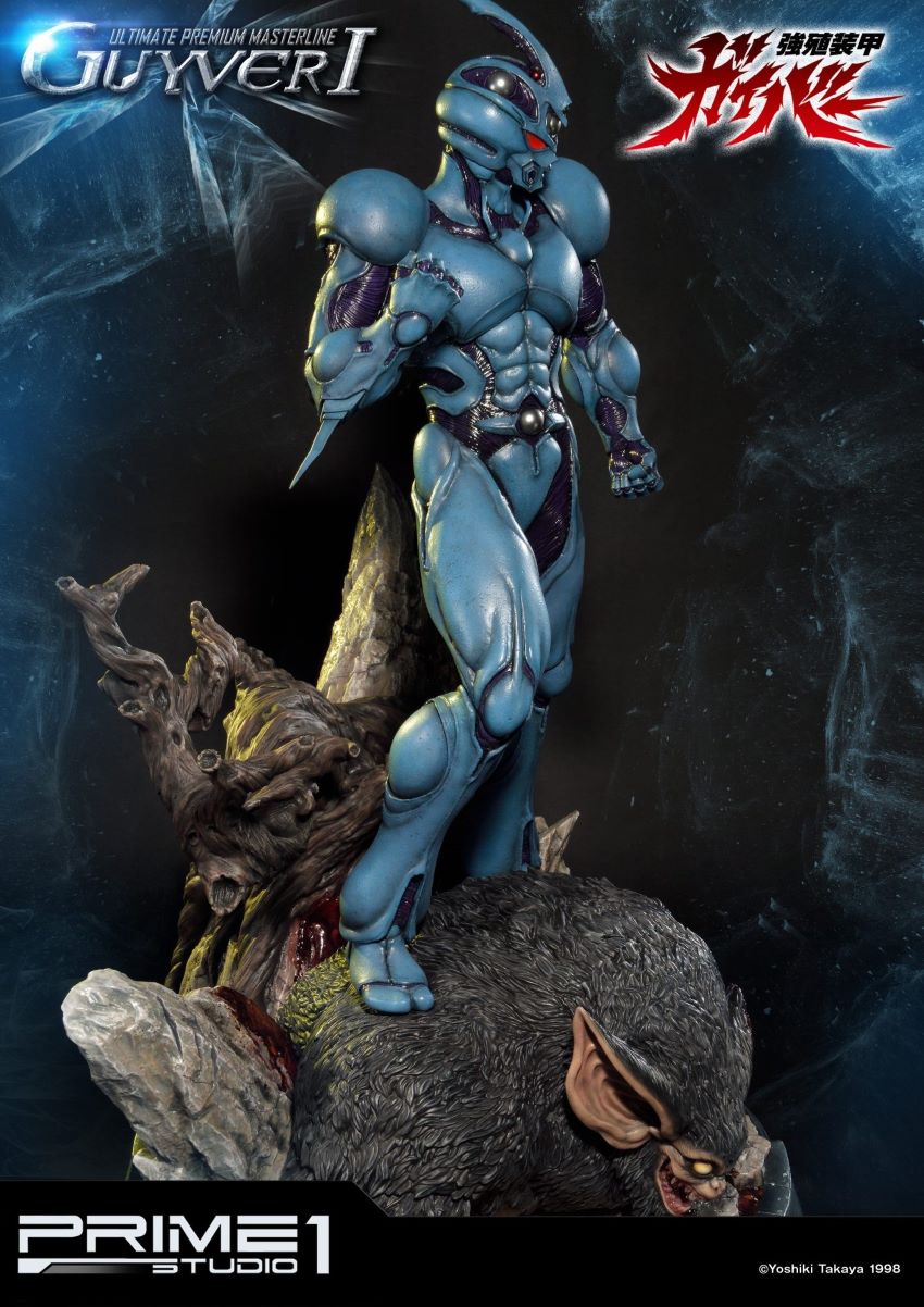 DescriptionsPrime 1 Studio is proud to present UPMGV-01: Guyver I from Guyver: The bioboosted armor. Sho Fukamachi is the main protagonist of the anime/manga series. Sho is seventeen years old and a second-year student at Narisawa High School. The Chronos Corporation has secret plans for the world and have biologically engineered employees and soldiers so that they can transform into powerful monsters at will, beings called Zoanoids. A test type Zoanoid, disguised as a normal man, escapes after stealing a bag containing three items Chronos was studying, known as the Guyver units. Chronos soldiers attempt to recover the units from the test-type but he activates a grenade, killing himself and scattering the Guyver units. One of the lost units is discovered by Sho and he accidentally activates the unit and it merges him with biological-armor that increases all his physical abilities and arms him with deadly weaponry. As he is the host for the first Unit activated, he is known as Guyver I. The 32-inch statue represents Guyver I defeating a Ramotith, one of the Zoanoids developed by Chronos, standing in his way. Specifications:One (1) interchangeable right arms with fistOne (1) interchangeable right arms with open handOne (1) interchangeable left open handOne (1) interchangeable left hand fistOne (1) interchangeable left High-Frequency Sword extendedOne (1) interchangeable left High-Frequency Sword shortNotice:Prototype samples shown.Product details could be subjected to change without further notice.© 高屋良樹/KADOKAWA