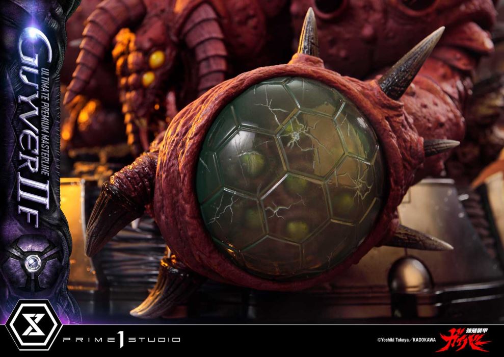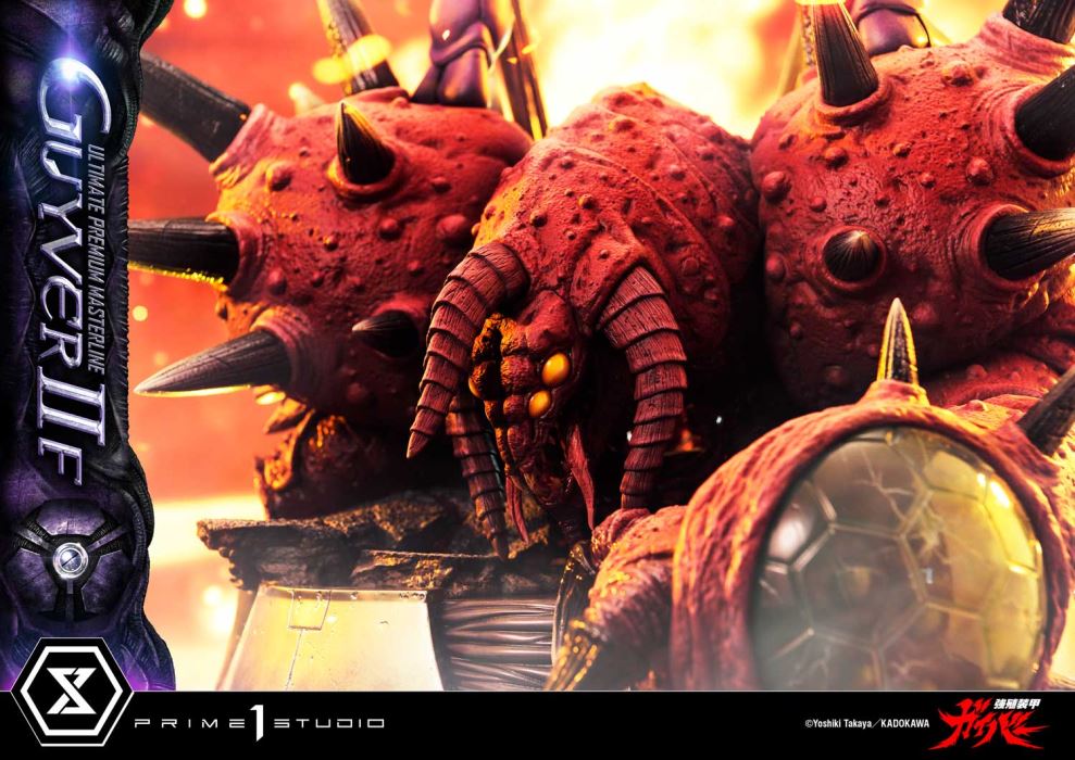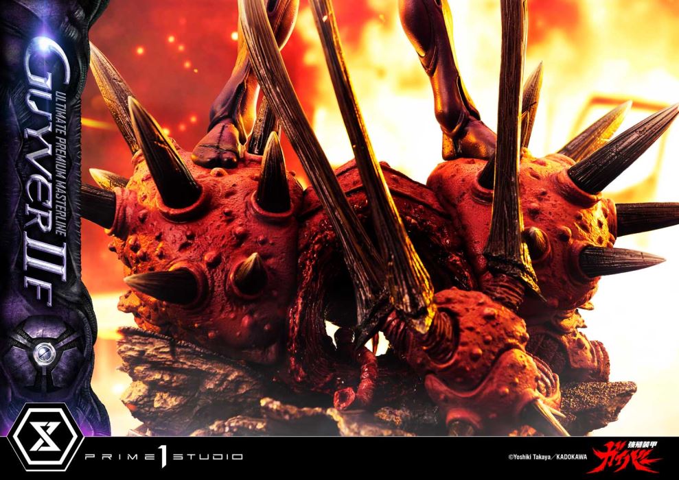 A Solitary Will Dwells Within an Enigmatic Back.The Beautiful Bioboosted Warrior Emerges from an Iconic Cover Art.In 2025, the legendary sci-fi comic “Bio-Booster Armor Guyver” by Takaya Yoshiki will celebrate its 40th anniversary. From this iconic masterpiece comes the Ultimate Premium Masterline 1/4 scale figure of Guyver IIF (Female).Valkyria Forsberg Lisker is a woman who stops at nothing to achieve her goals and refuses to side with anyone. This figure captures her bioboosted form in stunning detail, inspired by the cover art of Volume 26. From the weighty metallic finish of the Control Medal to the vivid gradients and shading of the purple armor, and the intricately sculpted elegant body lines, every aspect brings to life the unforgettable image etched in fans’ minds. The high-frequency blades on both arms come in two variations—long and short—allowing you to display them in your preferred style.At her feet lies the lifeless body of Zerbebuth-R, a fearsome Hyper Zoanoid who engaged in a fierce battle against her. The destroyed remains of this formidable enemy showcase the Guyver IIF's extraordinary combat prowess and ruthless determination. From the high-frequency claw on her right arm to the thermal cannon on her left, the intricate sculpting and detailed paintwork are truly stunning, creating an immersive display scene that rivals her own commanding presence.As a bonus feature, this exclusive version includes a special interchangeable head part, revealing Valkyria’s face beneath the armor. Her intelligent eyes, confident lips, and composed expression, devoid of emotion, offer a glimpse into her inner self.The enigmatic beauty of this bioboosted warrior, with a solitary will emanating from her mysterious back, is brought to life in exquisite detail befitting the 40th anniversary of “Guyver.” A must-have for every fan, this figure is a true masterpiece.Specifications:Bioboosted Armor Guyver Themed BaseOne (1) Swappable Head (Full Face)Two (2) Right High-Frequency Swords (Long, Short)Two (2) Left High-Frequency Swords (Long, Short)One (1) Swappable Head (Valkyria) [BONUS PART]Notice:Prototype samples shown.Product details could be subject to change without further notice.Please note the final product specifications may differ because each product is Handmade.Since the product is still in the development stage, the Size (up to 10%) & Weight (up to 10kg) may be changed during the production stage.©Yoshiki Takaya/KADOKAWADETAILSBrandsPRIME 1 STATUECollectionUltimate Premium MasterlineSeriesBioboosted Armor GuyverScale1/4 ScaleProduct CodeUPMGV-07SProduct Size Approx.H:88cm W:55cm D:49cmCarton(Est):1 boxProduct Weight Approx.27.9 kgMaterialsPolystone and other materialsJAN4582647120557