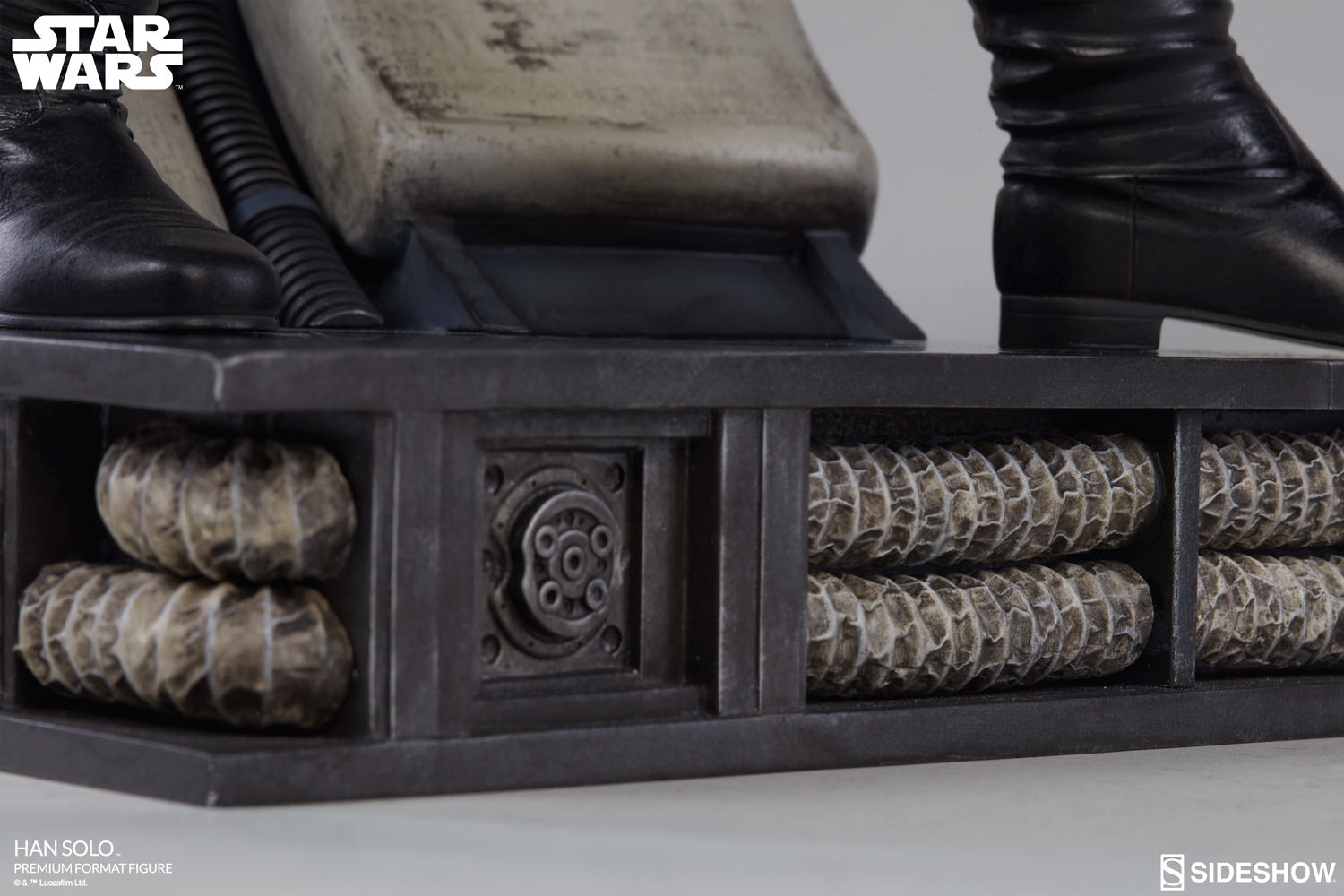 ABOUT THIS PREMIUM FORMAT™ FIGURE“Who’s scruffy looking?” He just got back from making the Kessel Run, and now he’s ready to join your collection- Sideshow is proud to present the Han Solo Premium Format Figure. For the look of this figure, Han Solo has been brought to life straight from Star Wars Episode V: The Empire Strikes Back. His detailed portrait has been sculpted to capture the likeness of Harrison Ford. The Han Solo Premium Format Figure has an authentic Episode V costume sewn from fabric and leather elements to give his look an added sense of realism, down to the details of his belt. Taking an action stance with his blaster, Han is ready to shoot first when his enemies come to collect what he owes. He stands on top of a Millennium Falcon inspired base to complete the scene, proving this smuggling scoundrel has the heart of a rebel. The Exclusive edition of this statue comes with a right hand equipped with an E-11 blaster for additional display options. No time to discuss this as a committee- pre-order the Han Solo Premium Format Figure for your collection today!LicenseStar WarsTypePremium Format™ FigureManufacturerSideshow CollectiblesArtistsRachel Roubicek (Design) Jean-Paul Mavinga (Design) Matt Black (Design & Sculpt)Daniel Staig (Design & Sculpt)Tom Gilliland (Design)Trevor Grove (Sculpt)Tim Niver (Sculpt)Adam Smith (Mold & Cast)Chadwick Anderson (Mold & Cast)Wan Lee (Paint) Bernardo Esquivel (Paint)Esther Skandunas (Costume Fabrication)The Sideshow Design and Development TeamADDITIONAL DETAILS & DIMENSIONSExpected to ShipMay 2018 - Jul 2018Item shown is a prototype. When shipped, the final production piece may differ in appearance.Product Size20 H (508mm) x 14 W (355.6mm) x 15 L (381mm)*Product Weight15.00 lbs (6.8 kg)*Dimensional WeightTBDInt'l Dim. WeightTBD* Size and weight are approximate values.SKU3005001UPC747720233775© and ™ Lucasfilm Ltd.