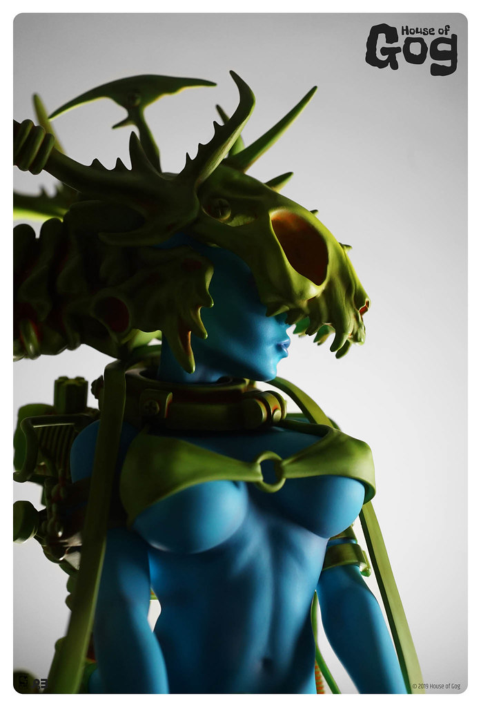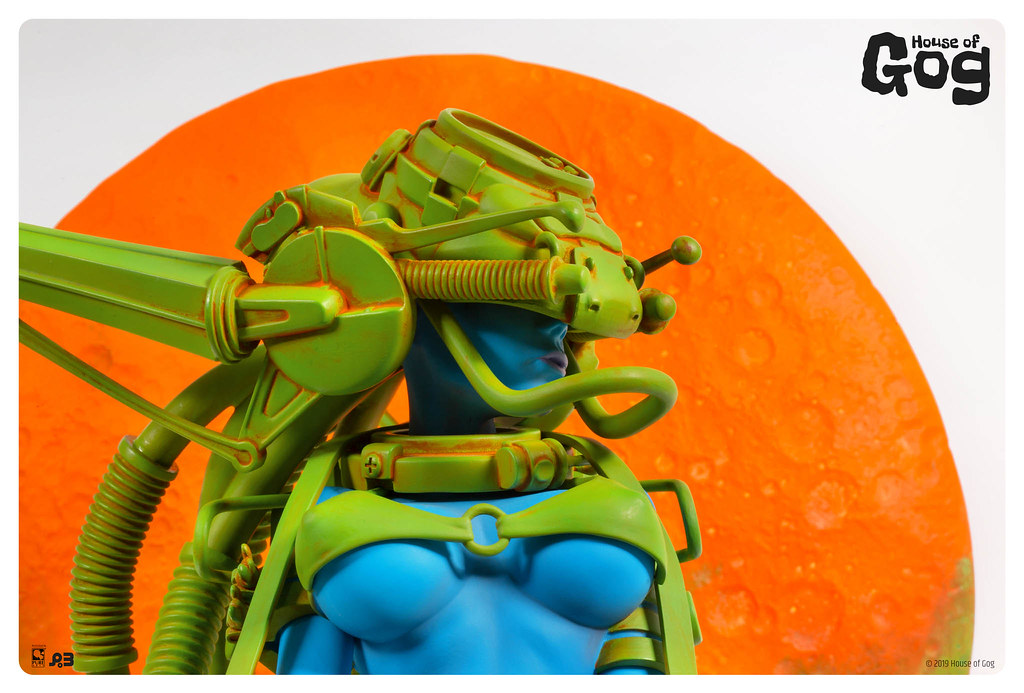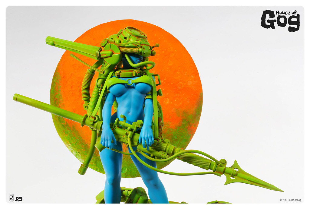 เฉดสีของภาพวาดของ Pascal Blanch?มีความโดดเด่นและเป็นเอกลักษณ์พร้อมองค์ประกอบไซไฟที่น่าสนใจและสัมผัสแห่งอนาคต รูปปั้นนี้มีพื้นฐานมาจากภาพวาดบนปกฉบับที่ 270 ของนิยายวิทยาศาสตร์ในตำนานและนิตยสารแฟนตาซีเฮฟวี่เมทัล Moonstone นักรบหญิงสาวแห่งเผ่า Moon Moon ได้สาบานตนมานานหลายศตวรรษในการปกป้องดินแดนศักดิ์สิทธิ์ปกป้องวิหารจากการบุกรุกและพยายามทำให้การนอนหลับชั่วร้ายตลอดไป
