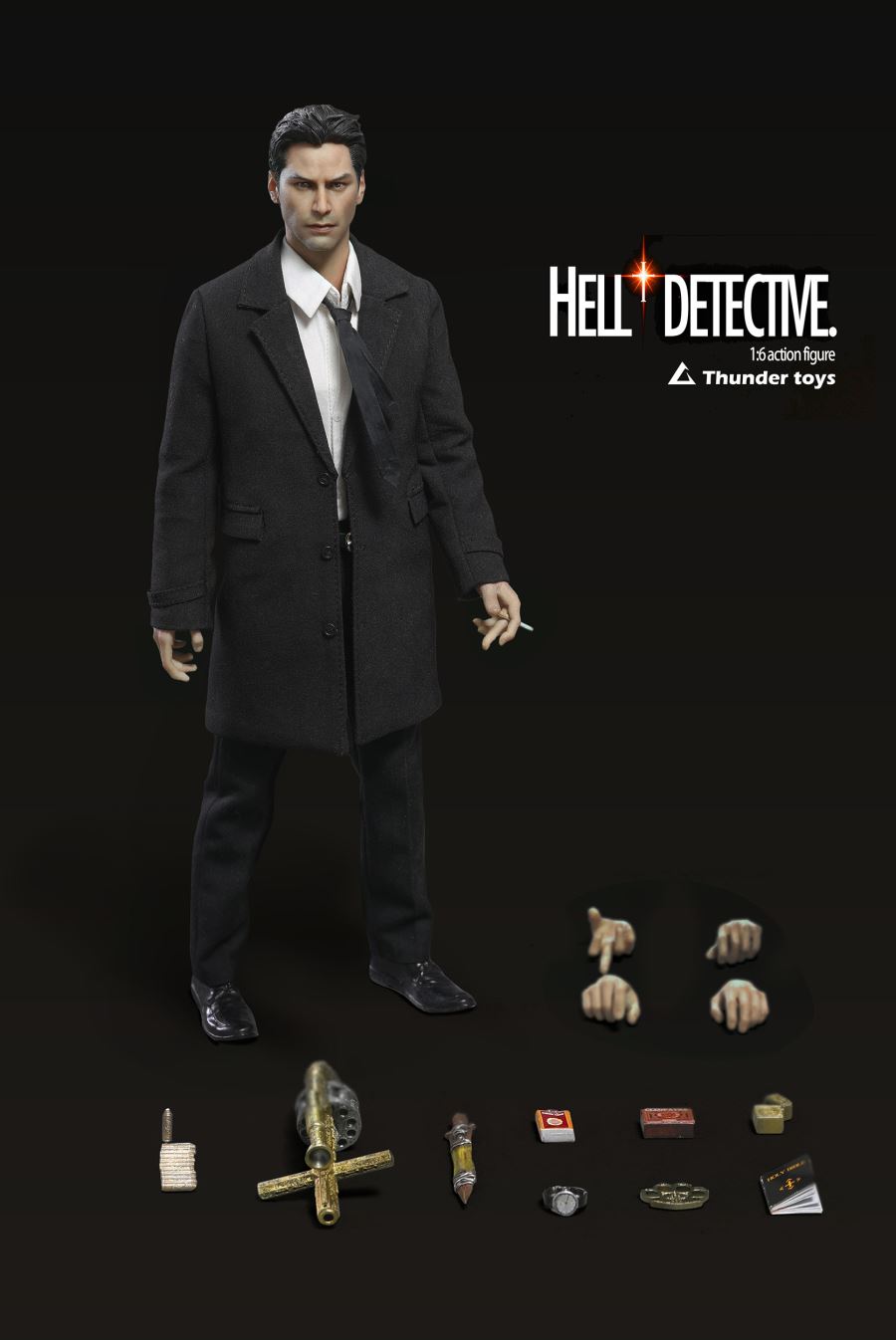 #TD2020B:Head * 1Body * 1Shirt * 1Tie * 1Pants * 1Wind coat * 1Leather shoes * 1Socks * 1Hand shape * 3Cigarette * 3Cigarette case * 1Screaming Beetle *1The bible * 1Brass knuckles (metal) *1Spear of Destiny (metal) *1Lighter (removable metal) *1Watch * 1Dragon Lance (metal) *1Exorcism mirror * 1Cut off time: December 18th, 2020Estimated shipment date: The second quarter of 2021