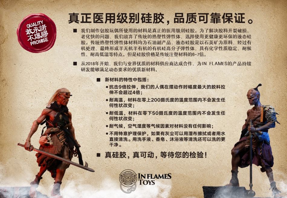 IN FLAMES X NEWSOUL—The1/6th scale Havoc in Heaven serial “Alternative God, Young Bone” Collectible Figure Specification:Productcode: IFT-047Specification of the product:-An elaborate carvedhead (with two eyes looking at different sides for each, for special designeffect)-A new development ofseamless movable body-The inner part ismade of steel skeleton, the outer part made of medical silicone-The figure has over24 movable joints-8 pieces ofinterchangeable palms-The figure isapproximately 29 cm tallCostumes:-A blue waist-A tiger skin waistdecoration-A black belt-A dark brown tiewrist-A piece of purpleskirt pants-Two dark brownleggingsAccessories:-Shoulder armor-A bracelet-Trophies made ofdemon’s skull (with yellow real fabric hairimplantation)-Square stage with transparentpillarWeapons:-A short waist knife-A long handle hammerRelease date:-Approximately Q3 2020—Q4 20202019 INFLAMES TOYS CO., Inc.All Rights Reserved.Remarks:Prototype shown, final productmay be slightly different.No further notice if the minute changesexist.