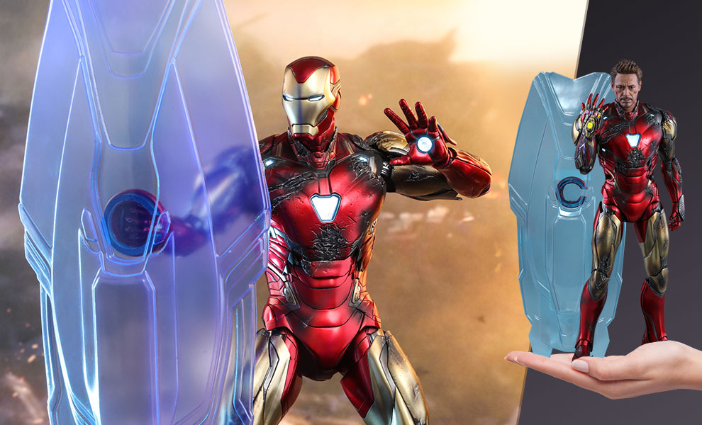 ABOUT THIS SIXTH SCALE FIGURE“I love you three thousand.” – Tony StarkAvengers: Endgame was always going to mark the final Marvel Cinematic Universe appearance for some of the original Avengers. Since the very first Iron Man movie back in 2008, fans have been captivated by the incredible story of the genius billionaire Tony Stark and it’s sad to see the beloved character leaving the silver screen!Inspired by the big moments in Avengers: Endgame, Sideshow, and Hot Toys are excited to present the sixth scale collectible figure battle damaged version of Iron Man Mark LXXXV as the latest addition to the ever-expanding Marvel Cinematic Universe lineup. Meticulously crafted based on Tony Stark/Iron Man in the movie, the one-of-a-kind collectible figure features two interchangeable head sculpts including a newly developed head sculpt with battle damage and an interchangeable helmeted head with LED-light up function. The Iron Man armor has been faithfully reproduced with red, gold and charcoal grey coloring featuring battle damage and weathering effects, LED light-up functions scattered throughout the upper body, back and Arc Reactor on chest, a battle-damaged sixth scale Nano Gauntlet as seen in the movie equipped with LED light-up function and matching interchangeable hands mounted with all six Infinity Stones, an energy blade, a pair of claw blasters and a highly elaborated rock diorama dynamic figure stand. This special edition is available in select markets and includes a Holo Shield bonus accessory exclusively for collectors.This special collectible figure will serve as a great centerpiece for your Iron Man collection! BrandMarvelManufacturerHot ToysTypeSixth Scale FigureArtistsGOX (Head Sculpt)E-Lee (Head Paint)JC. Hong (Head Art Direction)Lok Ho (Paint)WHAT'S IN THE BOX?The Iron Man Mark LXXXV (Battle Damaged Version) Sixth Scale Figure features:An authentic and detailed likeness of Iron Man in Avengers: EndgameOne (1) newly developed battle damaged head sculpt with authentic likeness of Robert Downey Jr. as Tony Stark in the movie Movie-accurate facial features with detailed beard, wrinkles and skin texture One (1) interchangeable helmeted head with LED light-up function (white light, battery operated) Approximately 32.5 cm tallOver 30 points of articulationsContains diecast material Special features on armor include:Metallic red, gold and charcoal gray colored painting on the sleek and streamline Iron Man armor designSpecially designed battle-damaged armors over shoulder, chest, arms, and thighs16 LED light-up points throughout parts of the armor (white light, battery operated)One (1) pair of articulated air flaps at back of the armorOne (1) detachable chest armor to reveal interior mechanical designThree (3) pairs of interchangeable hands including: - One (1) pair of fists- One (1) pair of hands with articulated fingers and light-up repulsors (white light, battery operated) - One (1) pair of battle hands with light-up repulsor (white light, battery operated) Enhanced articulations on waist armor which allow flexible movement Each piece of head sculpt is specially hand-paintedWeapons: One (1) energy bladeOne (1) pair of claw blastersAccessories:One (1) damaged Nano Gauntlet with three (3) pieces of interchangeable hands including relax, gesture hand and hand with articulated fingers, mounted with six Infinity Stones (6 LED light-up points, battery operated)Specially designed rock-themed diorama dynamic figure stand Exclusive Bonus Accessory for Special Edition: One (1) Holo shieldADDITIONAL DETAILS & DIMENSIONSMaterialsDiecast zinc alloyProduct SizeHeight: 12.79 (324.87 mm) | *Dimensional Weight0.00 lbs (0 kg) [Intl. 0.00 lbs (0 kg)] ** Size and weight are approximate values. Learn moreSKU9049231UPC4895228602541(c) 2019 Marvel (c) 2019 Hot Toys Limited. All Rights Reserved.