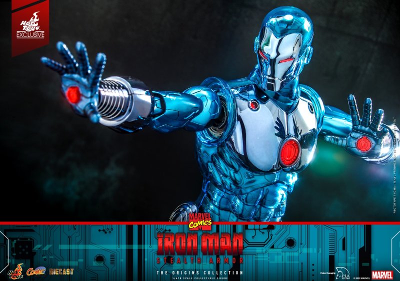 Sideshow และ Hot Toys มีความยินดีที่จะเปิดตัวฟิกเกอร์ Iron Man Stealth Armour มาตราส่วน 1/6 ที่มีเกราะเรืองแสงเป็นสีน้ำเงินโครเมียมเป็นส่วนเสริมล่าสุดของ The Origins Collection เป็นรายการพิเศษเฉพาะของ Hot Toys ในตลาดที่เลือกเท่านั้น