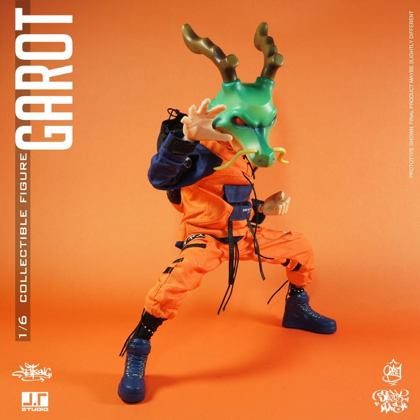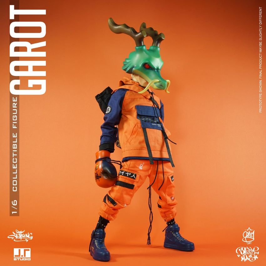 "GAROT 1/6 Proportionate Puppet" สวมโครงร่างสีส้มน้ำเงิน นอกจากนี้ยังมีชุดกีฬาหล่อเหลาที่มีตัวอักษรภาษาอังกฤษและภาษาญี่ปุ่น มันสวมหน้ากากรูปมังกร ใต้หน้ากากนั้นเป็นใบหน้าที่เท่ห์ ขนสีขาวปุยออกแบบโดยนักออกแบบ กาวติดมือ, อุปกรณ์ตกแต่งรวมถึงกระเป๋ามวยไหล่เดียว, ถุงมือมวย, หูฟัง, แว่นตา, ลูกโปร่งแสงด้วยคำว่า STREET MASK, ด้วยมือที่เปลี่ยนได้หลายอัน, ดวงตาที่เคลื่อนไหวได้, และข้อต่อที่สามารถเคลื่อนย้ายได้ด้านบนและด้านล่างของร่างกาย คุณสามารถแสดงแอ็คชั่นการต่อสู้รูปหล่อจำนวนมากได้! แจ็คเก็ตสามารถถอดออกเพื่อเผยให้เห็นเสื้อกั๊กสีฟ้าและรอยสักแขนและความแปรปรวนจะเพิ่มขึ้น