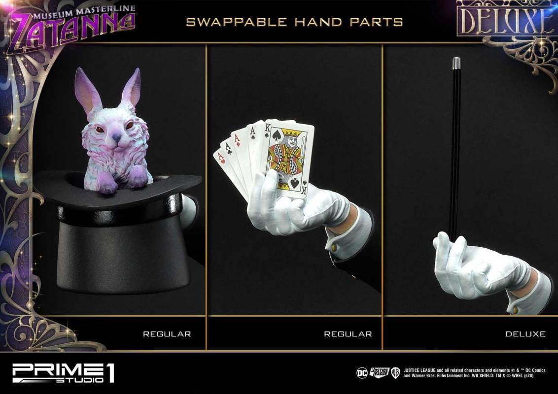 มาขึ้นเวทีกับ Zatanna กัน! เธอยืนสูง 29 นิ้วในพิพิธภัณฑ์ที่งดงามตั้งอยู่บนฐานที่มีธีมบนเวทีขั้นสูงสุด เธอสวมชุดบนเวทีสุดคลาสสิกพร้อมถุงน่องตาข่าย รับรองว่าจะไม่เพียงขโมยการแสดง แต่ยังขโมยหัวใจคุณอีกด้วย! รุ่นดีลักซ์มีสวิตช์ด้านขวาสามแบบและภาพบุคคลที่เป็นไปได้สามแบบช่วยให้คุณสามารถแสดง Zatanna ได้ตามที่คุณต้องการ! เธอจะดึงกระต่ายที่ถูกสิงออกจากหมวกหรือร่ายมนตร์? “ Eht eciohc si srouy!”
