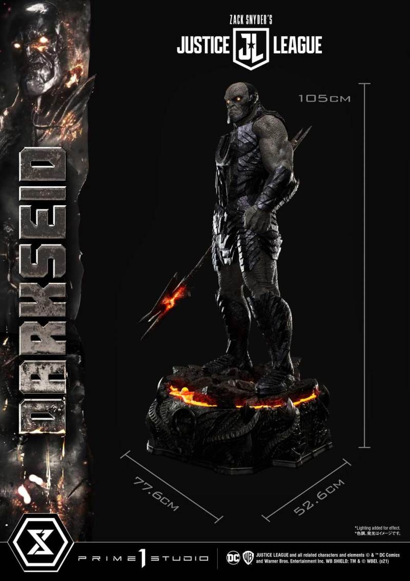 Prime 1 Studio ได้ทุ่มเทอย่างหนักเพื่อนำเสนอ New God Uxas ซึ่งเป็นที่รู้จักกันดีในเรื่องที่น่ากลัวที่สุดของเขา Darkseid เป็นหนึ่งในสิ่งมีชีวิตที่ทรงพลังที่สุดใน DC Multiverse ทั้งหมดและนักแกะสลักที่มีประสบการณ์ของเราพยายามที่จะจับพลังที่เป็นลางไม่ดีและเหนือมนุษย์ผ่านท่าทางทัศนคติและท่าทางของเขา ศิลปินที่มีความสามารถของเราได้ศึกษาโครงหลังกรอบของภาพยนตร์เรื่อง Snydercut เพื่อฝังรูปปั้น Darkseid ของเราด้วยพื้นผิวที่คงกระพันที่เหมาะสมของเขาเสื้อผ้าของเขาที่มีสัญลักษณ์ Omega ของเขาและสัดส่วนที่น่ากลัวของขนาดของเขา จิตรกรฝีมือดีของเราทำให้รูปปั้น Darkseid ของเรามีความลึกและมีชีวิตโดยการทาเลเยอร์บนชั้นของสีรองพื้นที่ถูกต้องที่สุดการแปรงแห้งการซักด้วยสีเข้มและการเคลือบหลาย ๆ สีเพื่อเติมเต็มการแสดงที่น่าเกรงขามของเขา ชุดเกราะ Apokoliptan ของเขาทาสีด้วยสีโลหะสีเข้มเพื่อสะท้อนความมืดที่ห่อหุ้มทุกคนที่จ้องมองเขา