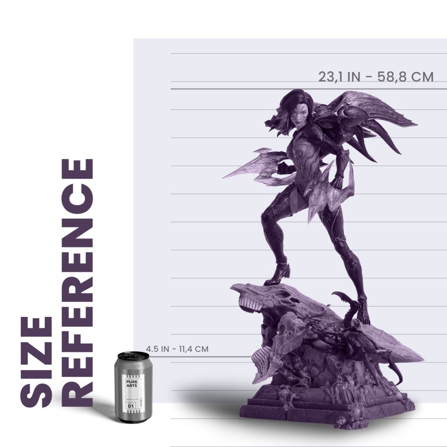 My appearance may frighten you, but make no mistake—I am on your side, and we fight to the bitter end.“Swallowed into the Void as a child, Kai’Sa showed resilience and strength as she battled to return to Runeterra. She transformed from a young, frightened girl to a fearless champion determined to defend humans from the Void and protect the balance of the universe.Join the Daughter of the Void as she keeps the Void’s hunger at bay and guards Runeterra with PureArts’ Kai’Sa 1/4 Scale Statue!INCLUDES BONUS alternate head sculpt with display base!Product Highlights:Hyper-detailed sculpt of Kai’SaAlternate head pose with display baseHigh-quality paint applicationBase and weapon LED lighting effectsEdition size: 2000PRODUCT FEATURES:Licensed by Riot GamesScale: 1/4Powered by USBMaterial: PolyresinEstimated Delivery: Q2 2022Shipping: Worldwide