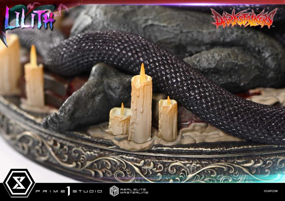 Eyes of innocent cruelty. Life in a borrowed body.The dark realm takes form—another magic made real.The Darkstalkers series tells the story of dark dwellers locked in fierce battles. From this distinctive and ambitious entry in Capcom's fighting game history, Lilith joins the Real Elite Masterline.Following the earlier release of Morrigan, this statue brings to life her counterpart through an imaginative arrangement. What we pursued in this piece is the concept of the dark realm made real. By carefully fusing realism with stylization, we have created a sculptural beauty that feels otherworldly. Her pose, drawing a graceful S-curve, suggests both a cruel desire to satisfy curiosity and a hint of searching for something unknown.Her almond-shaped eyes, colored in crimson, are slightly enlarged to leave a stronger impression. The round and wide pupils emphasize the innocence of her youthful character. Pearl-painted wing membranes reflect a mysterious glow. Though not human, her skin tone conveys a sense of life. Textures reproduce the feel of leather and arm sleeves. Please take your time to enjoy each detail of this figure, brought to life through cutting-edge sculpting and painting techniques.A large serpent rears and coils, while those who once sat upon the throne have turned to its foundation. Like Morrigan's, the special base features a gothic design. The dim, heavy atmosphere illuminated by candlelight enhances the vivid colors of her appearance.This bonus version also includes a nameplate stand. Bats, candles, and a castle add to the immersive world of the piece.Lilith, clad in new allure, pairs beautifully with the previously released Morrigan to form a matching display. Add this another magic made real to your Darkstalkers collection—and experience the realism of the dark realm for yourself.Specifications:Darkstalkers Themed BaseOne (1) Nameplate Stand [BONUS PART]Notice:Prototype samples shown.Product details could be subject to change without further notice.Please note the final product specifications may differ because each product is Handmade.Since the product is still in the development stage, the Size (up to 10%) & Weight (up to 10kg) may be changed during the production stage.©CAPCOMDETAILSBrandsPRIME 1 STATUECollectionReal Elite MasterlineSeriesDarkstalkersScale1/4 ScaleProduct CodeREMDKS-02SProduct Size Approx.H:52cm W:50cm D:34cmCarton(Est):1 boxProduct Weight Approx.9.5 kgMaterialsPolystone and other materialsJAN4582647121493