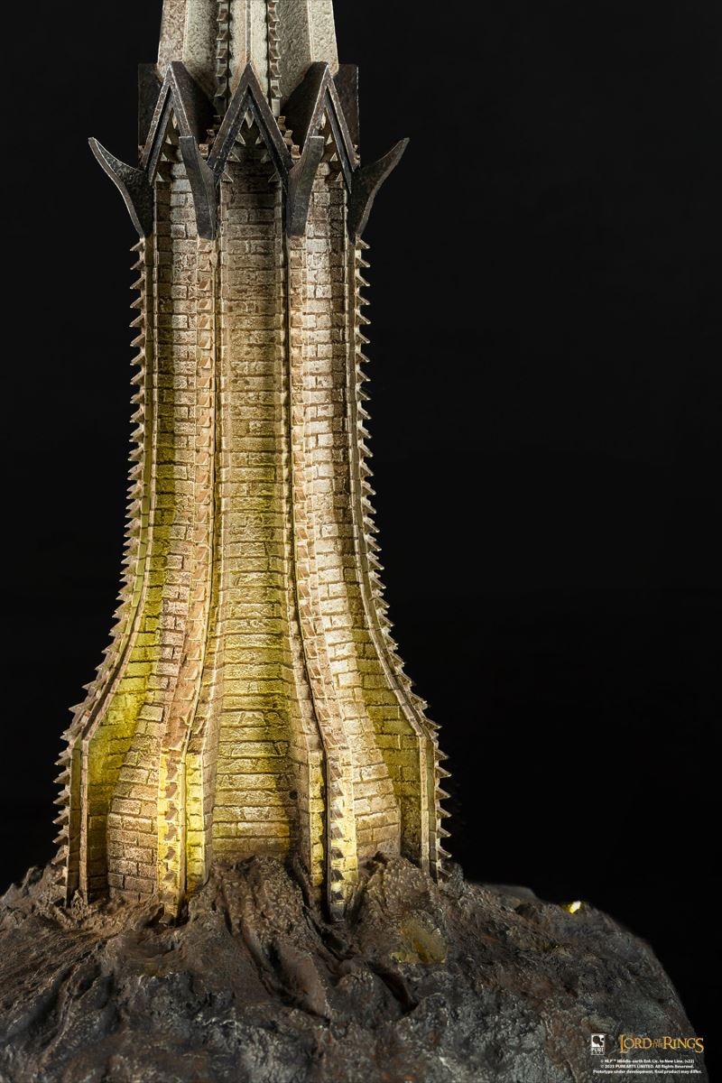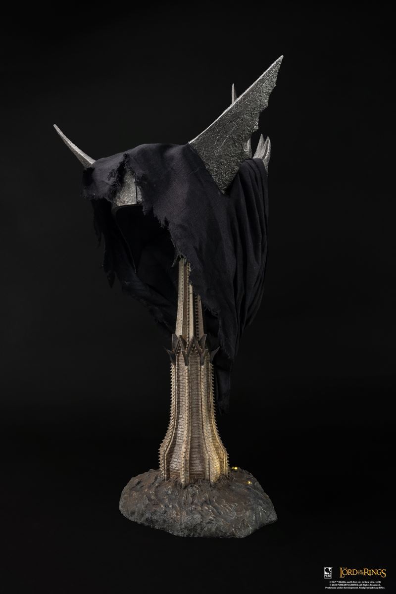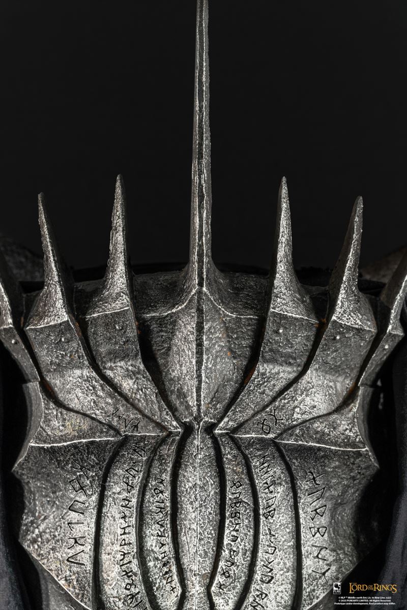 ABOUTMy master, Sauron the Great, bids thee welcome. Is there any in this rout with authority to treat with me?” – Mouth of Sauron, The Return of the KingHe was one of the few servants of Mordor who communicated directly with Sauron, and now he is PureArts' third The Lord of the Rings collectible. This The Lord of the Rings Mouth of Sauron 1:1 Scale Art Mask is a highly impressive and imposing collectible. He grins ominously atop an LED-lit Mordor Gate Tower base, the location where he greets Aragorn and his army. This Mouth of Sauron Art Mask completes the ominous trifecta of 1:1 scale The Lord of the Rings antagonists. Do not miss your chance to add this life-size bust to your collection today!*Requires 3 AA batteries (not included)BrandThe Lord of the RingsCharacterThe Mouth of SauronManufacturerPureArtsTypeBustLife-Size BustGenreFantasy Sci-fi Pop CultureMaterialsPolyresin , Mixed MediaProduct SizeHeight: 26 (66 cm)Width: 16 (40.6 cm)Depth: 11 (27.9 cm) *Shipping Weight9.00 lbs (4.1 kg) ** Size and weight are approx. valuesLearn moreSKU912185UPC713929404506Item shown is a prototype. When shipped, the final production piece may differ in appearance.