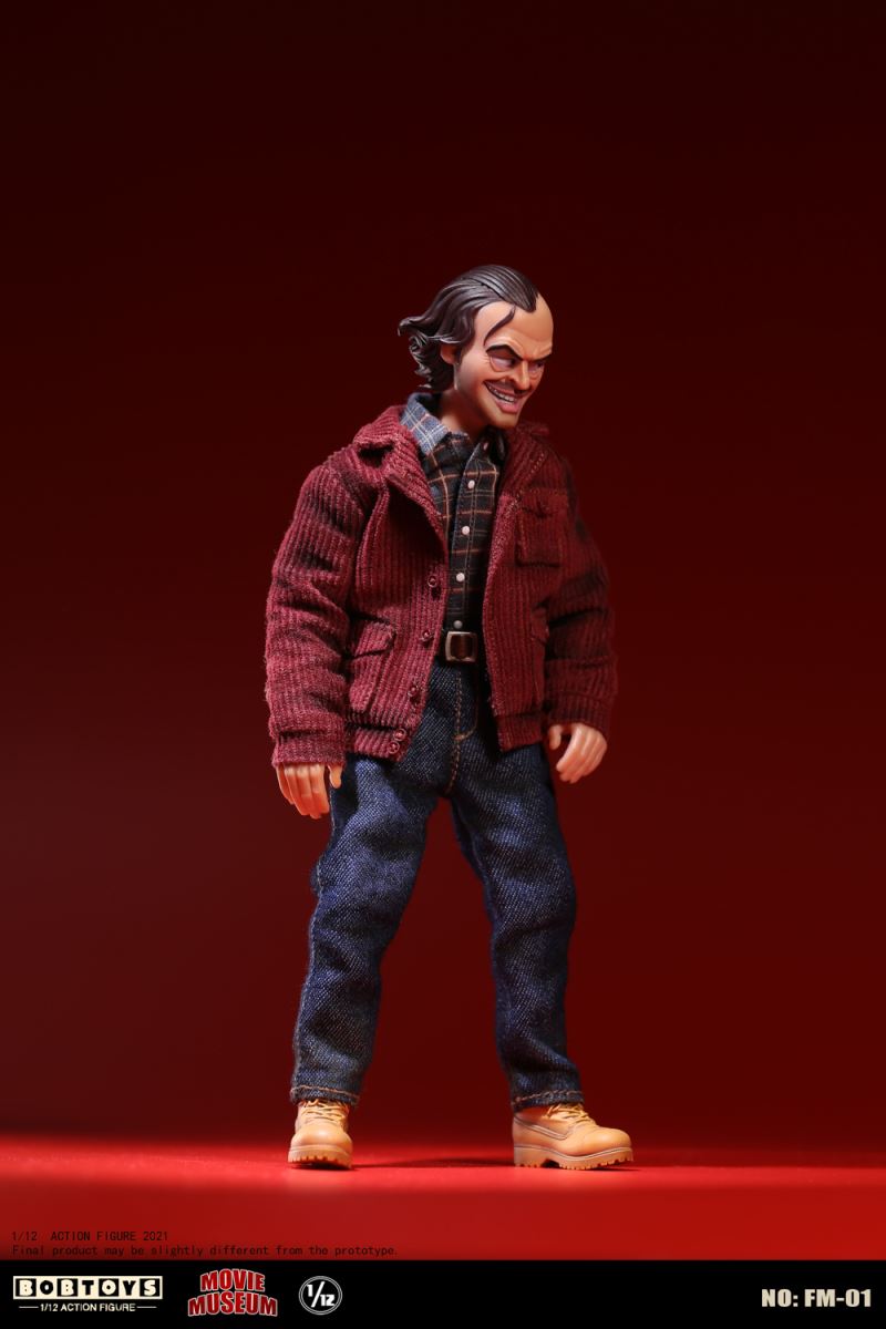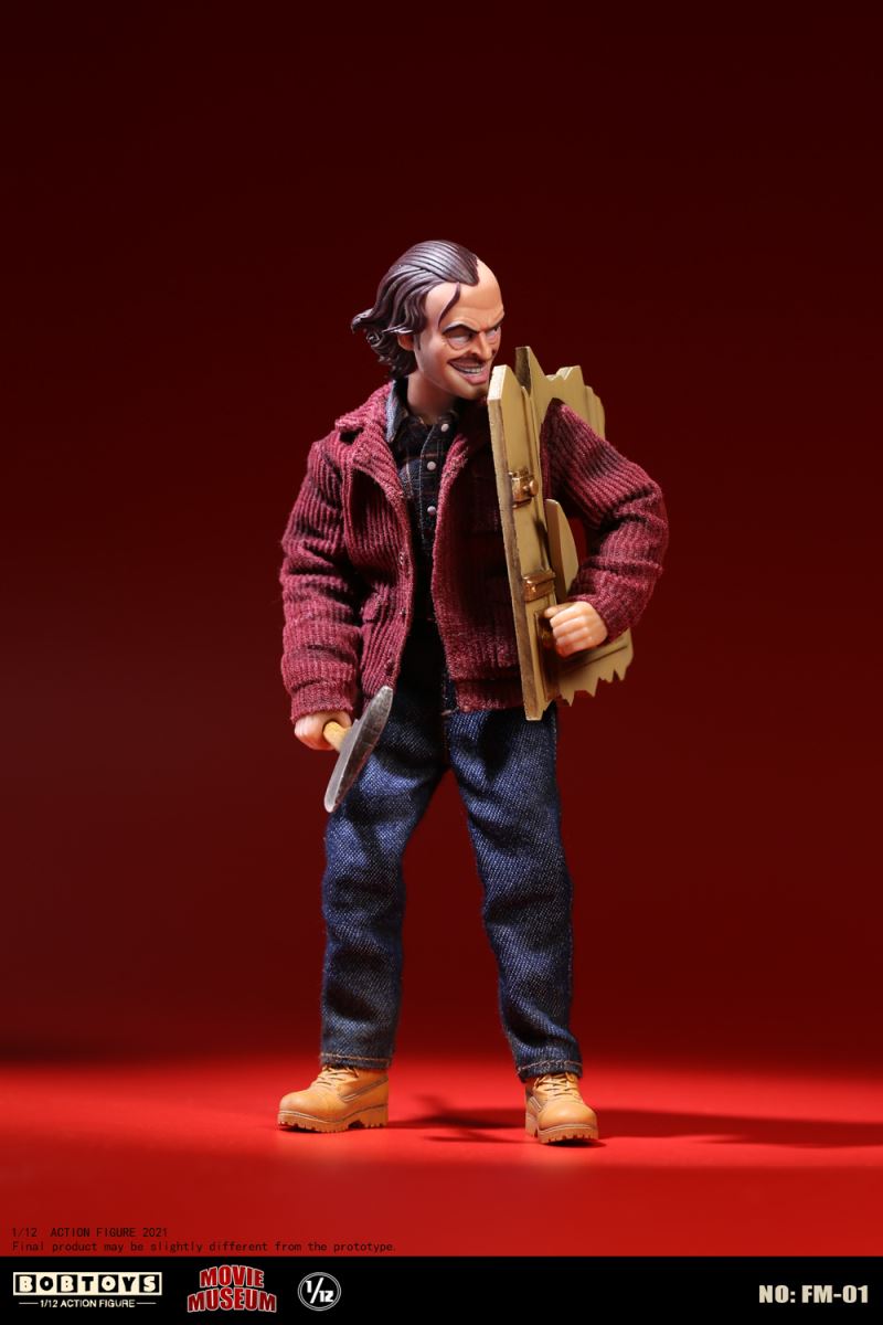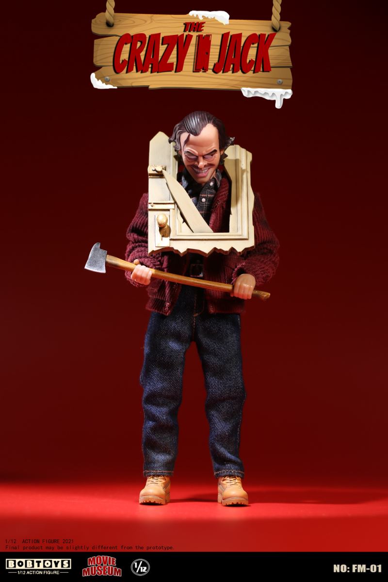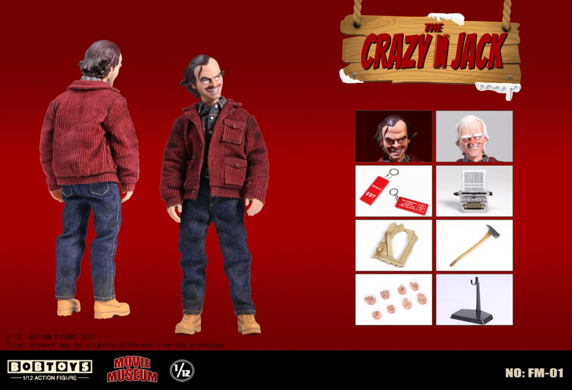 BOBTOYS 1/12 MOVIE MUSEUM Series First Bomb Crazy Jack FM-01List:Smiling head*1Frozen head*11/12 body*1Natural hands*1 pairHold gun hands* 1 pairHold sword hands*1 pairMad hands*1 pairRed coat * 1Plaid Shirt * 1Jeans * 1Boots * 1 pairFire axe * 1Typewriter * 1Scratch paper * 1Door frame * 11/1 key card* 11/12 figure stand*1