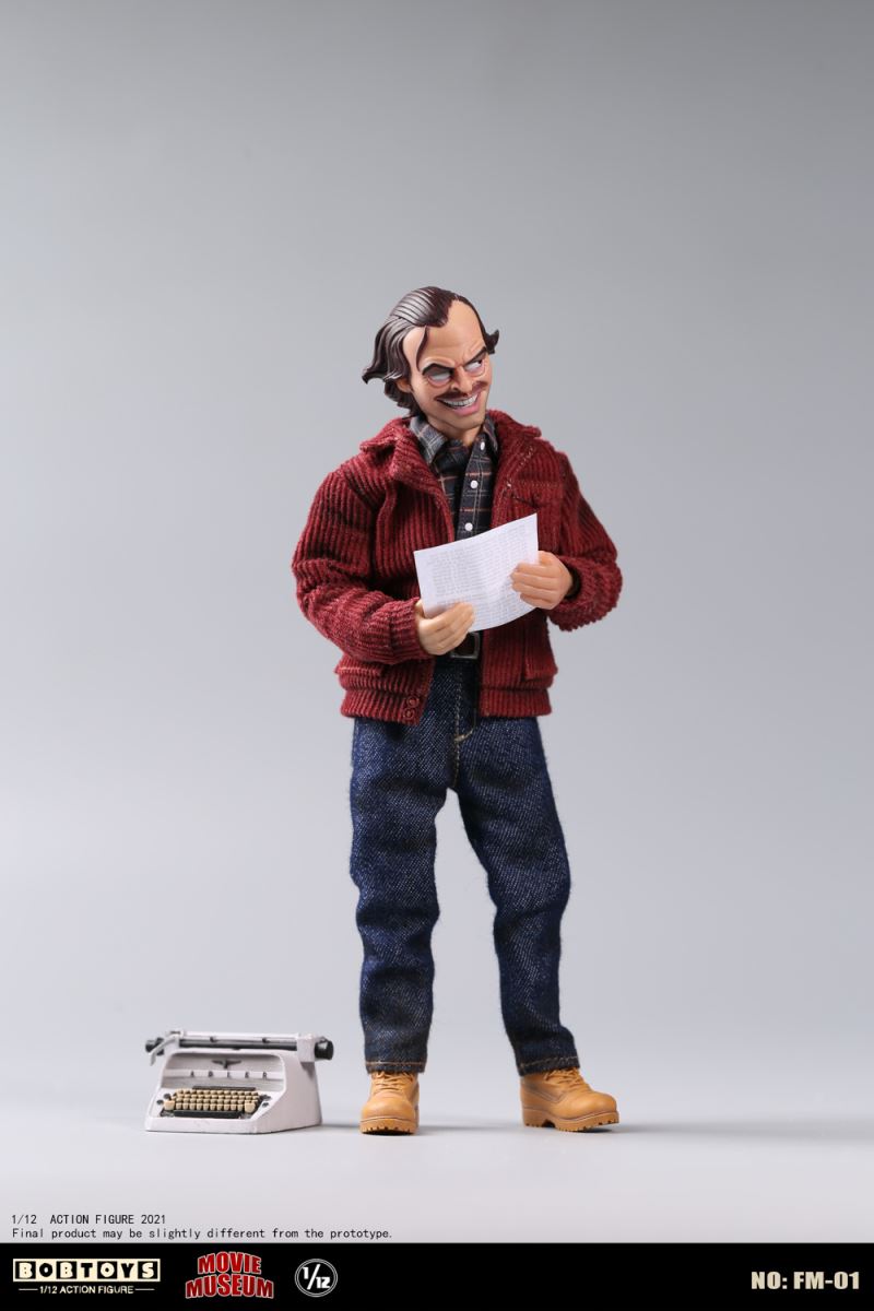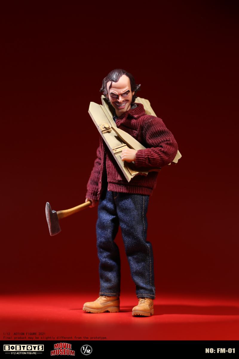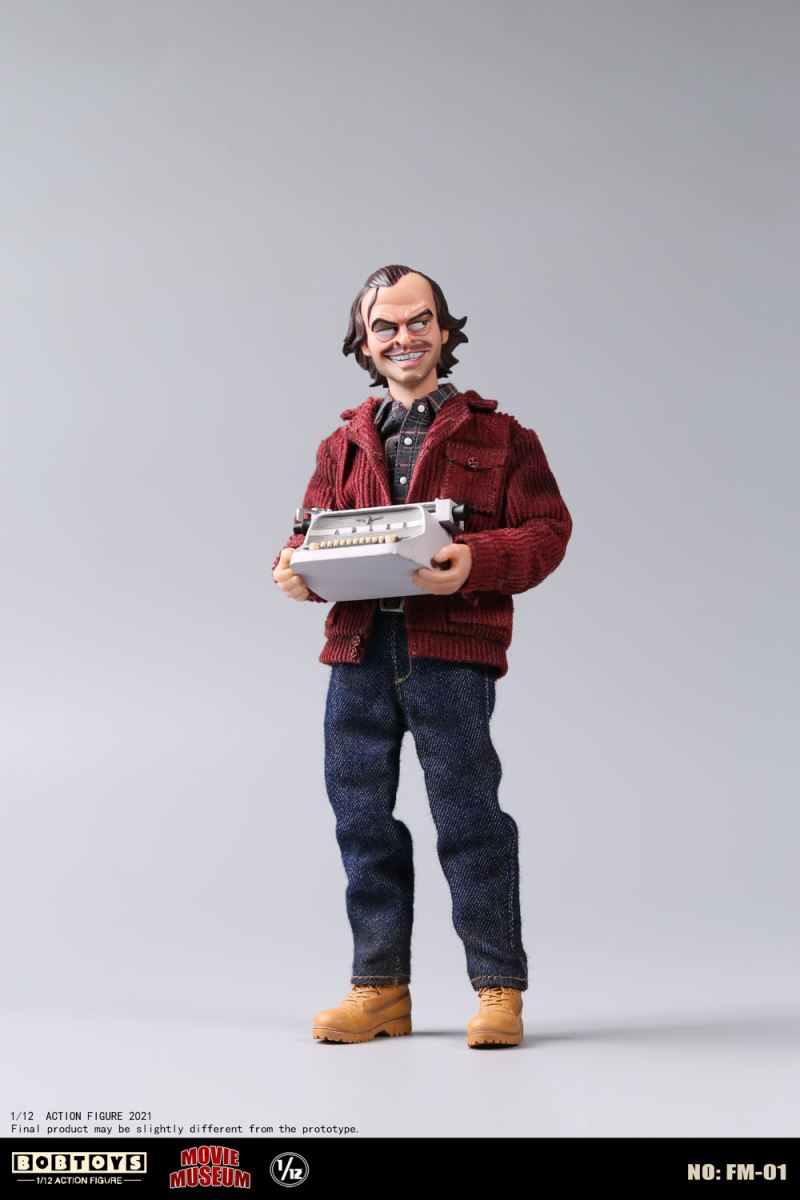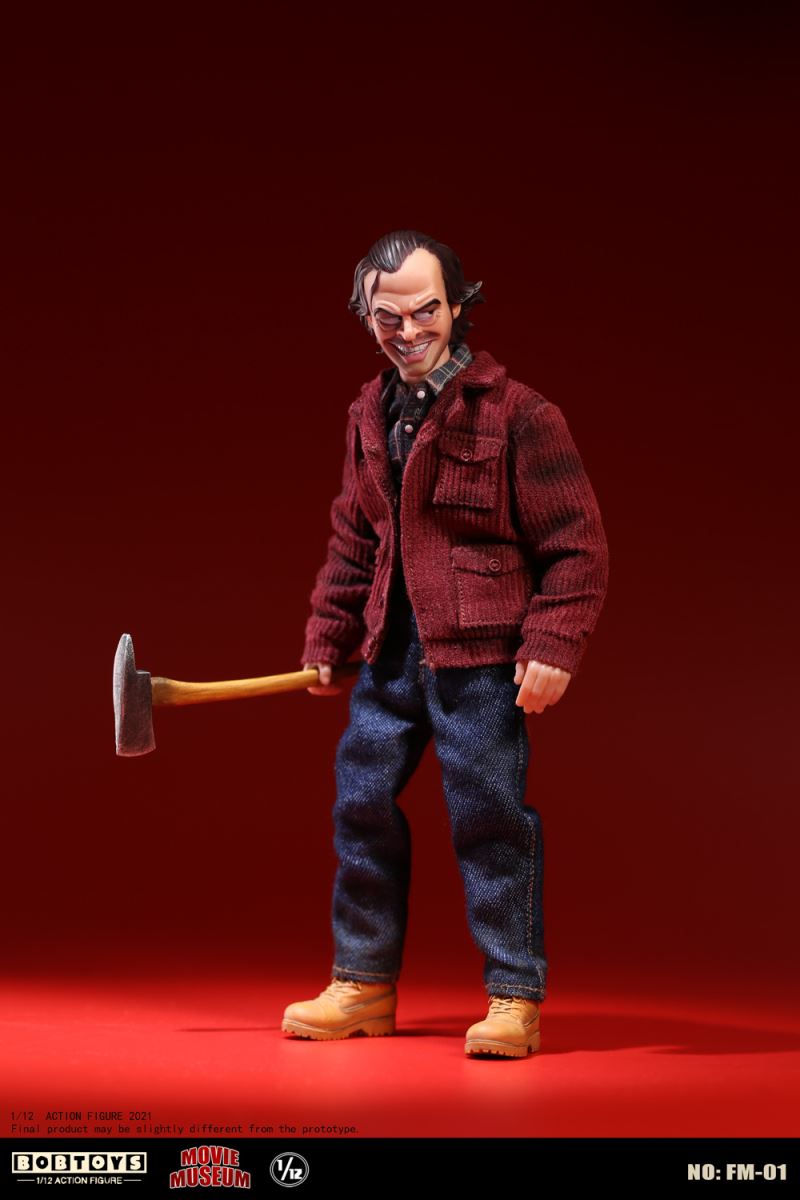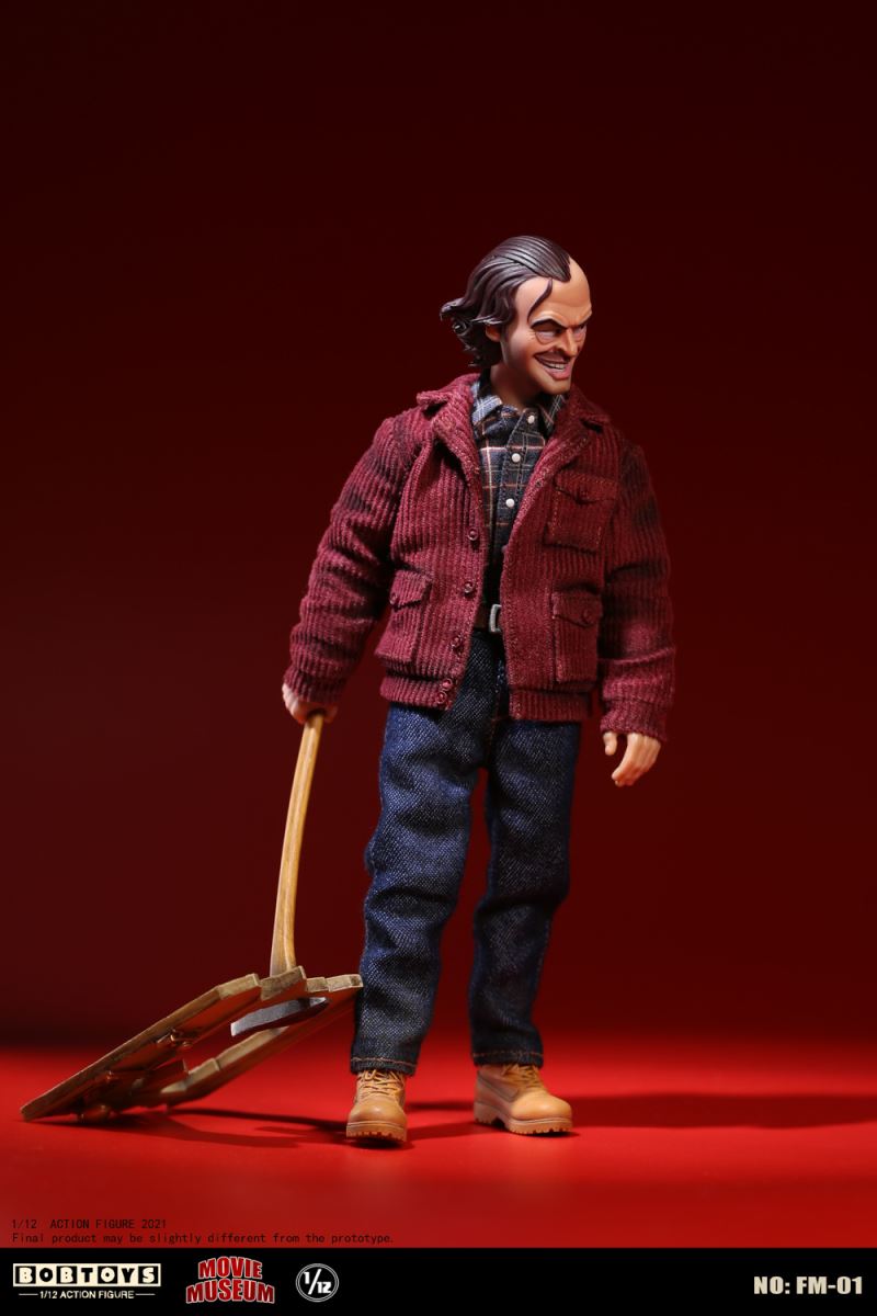 BOBTOYS 1/12 MOVIE MUSEUM Series First Bomb Crazy Jack FM-01List:Smiling head*1Frozen head*11/12 body*1Natural hands*1 pairHold gun hands* 1 pairHold sword hands*1 pairMad hands*1 pairRed coat * 1Plaid Shirt * 1Jeans * 1Boots * 1 pairFire axe * 1Typewriter * 1Scratch paper * 1Door frame * 11/1 key card* 11/12 figure stand*1