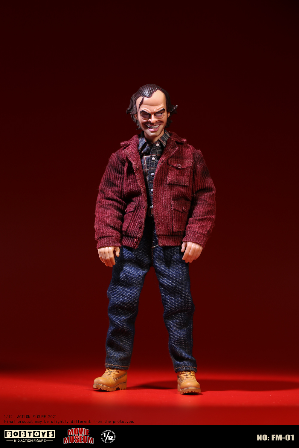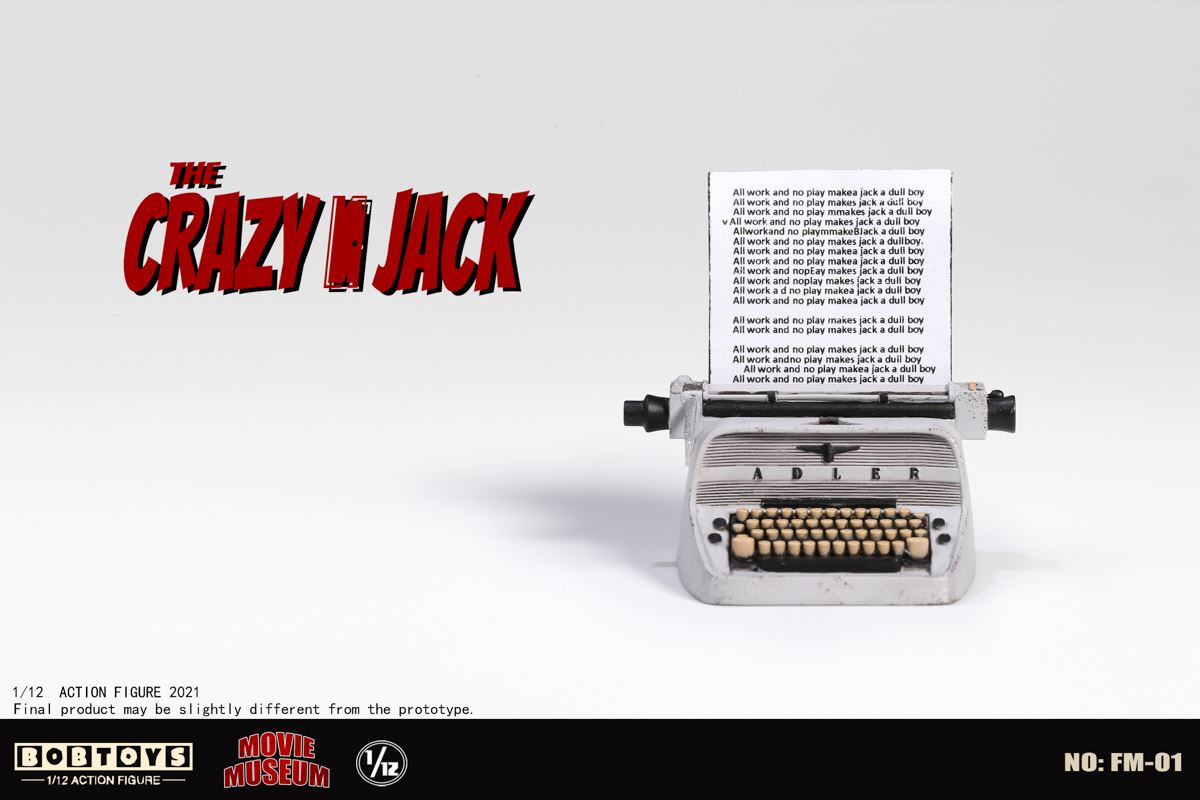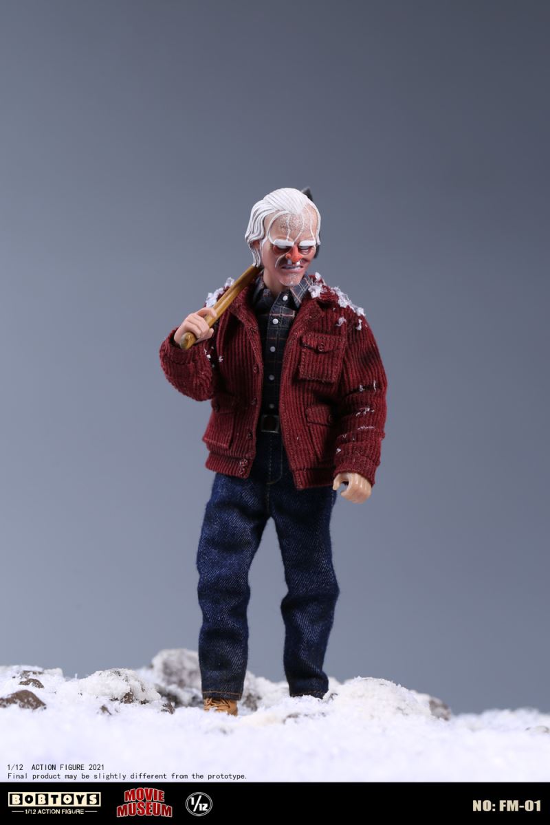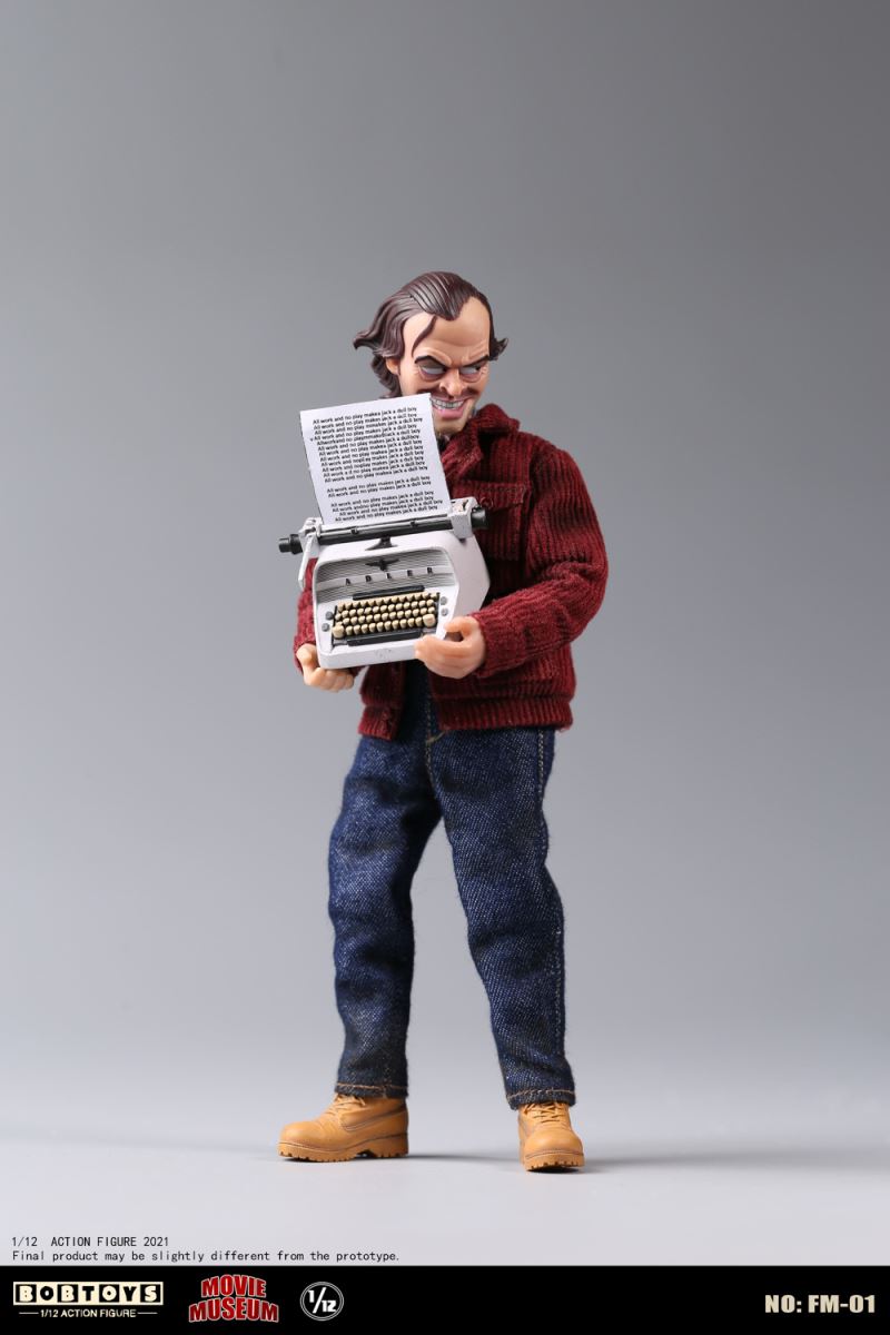 BOBTOYS 1/12 MOVIE MUSEUM Series First Bomb Crazy Jack FM-01List:Smiling head*1Frozen head*11/12 body*1Natural hands*1 pairHold gun hands* 1 pairHold sword hands*1 pairMad hands*1 pairRed coat * 1Plaid Shirt * 1Jeans * 1Boots * 1 pairFire axe * 1Typewriter * 1Scratch paper * 1Door frame * 11/1 key card* 11/12 figure stand*1