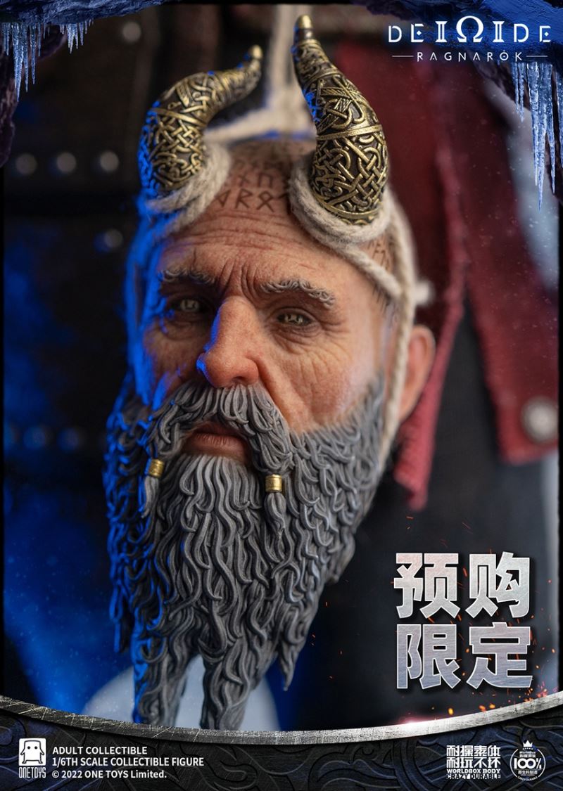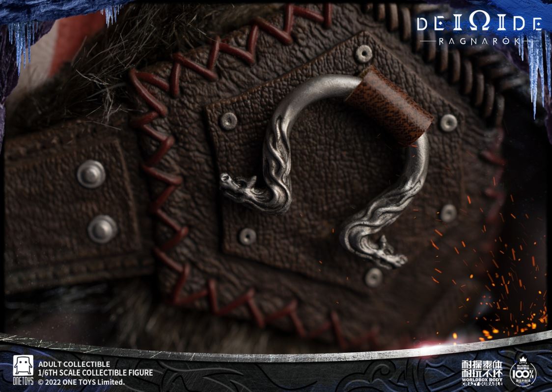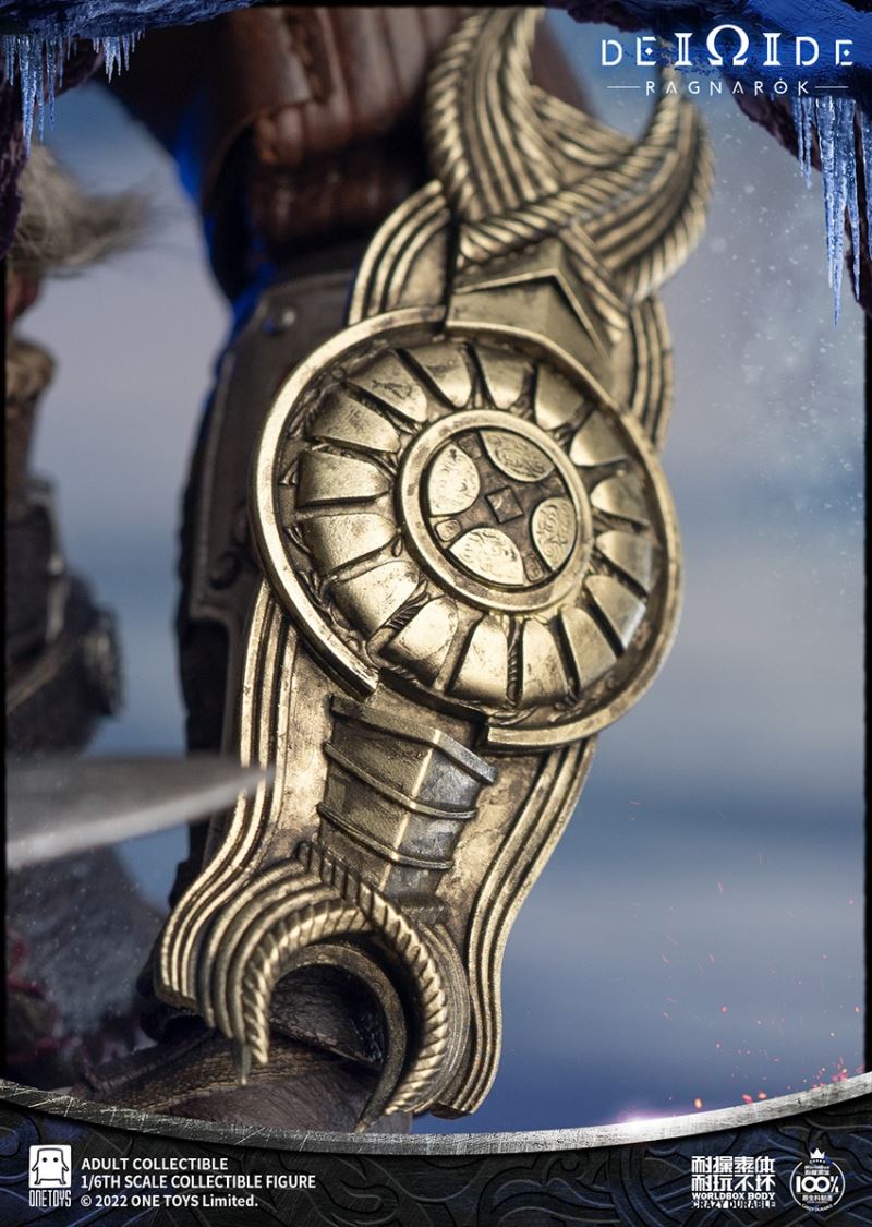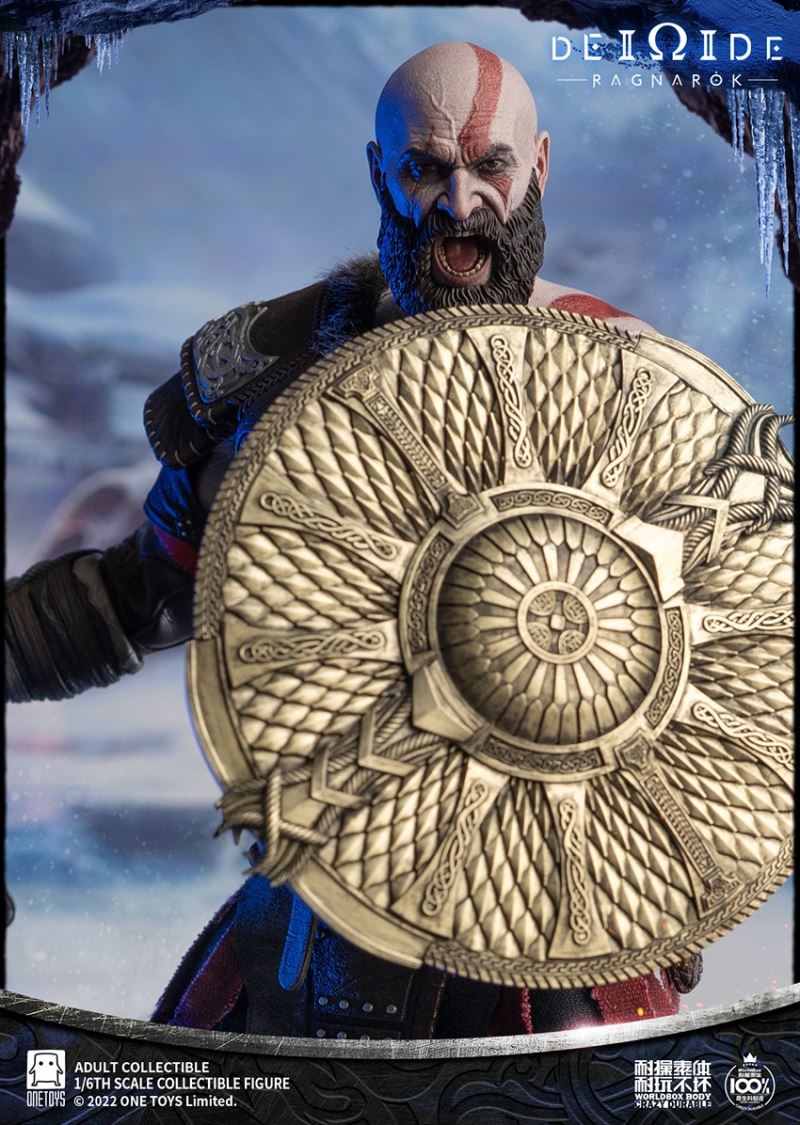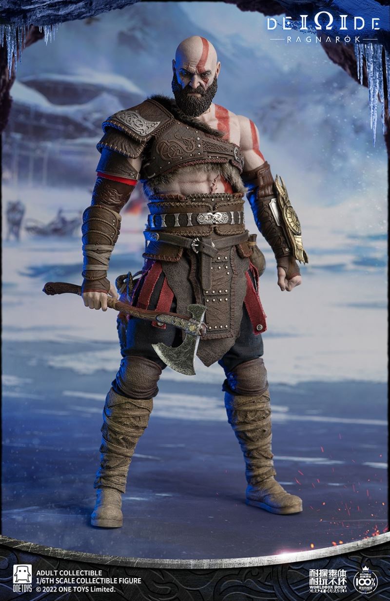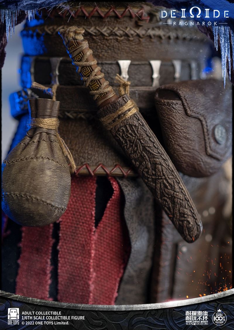 Onetoys:1/6 Man Of War Action Figure- Two (2) head,one head with a closed mouth and a serious expression, one head with an open mouth and a roar.- One (1) mimir head,order for free in the scheduled period.- One (1) body,newly developed body based on character characteristics.- One (1) pairs ordinary gloved hands- One (1) pairs holding gloved hands- One (1) pairs open gloved hands- One (1) pairs fist gloved hands- One (1) upper armor- One (1) Front skirt armor- One (1) Rear skirt armor- One (1) right shoulder armor- One (1) pairs arm armor,the left and right arm armors have different appearances.- One (1) pants- One (1) pairs knee pads- One (1) back pocket- One (1) side waist pocket- One (1) pairs boots,the segmented structure facilitates styling.- One (1) leather belt- One (1) short knife- One (1) scabbard- One (1) tomahawk- One (1) War knife,the end is tied with an iron chain, which can be wrapped around the arm to make a shape.- One (1) closed oval shield- One (1) round shield- One (1) Figure stand