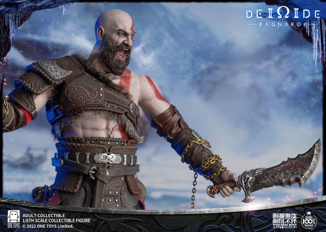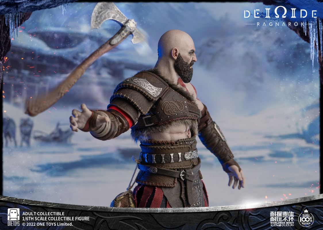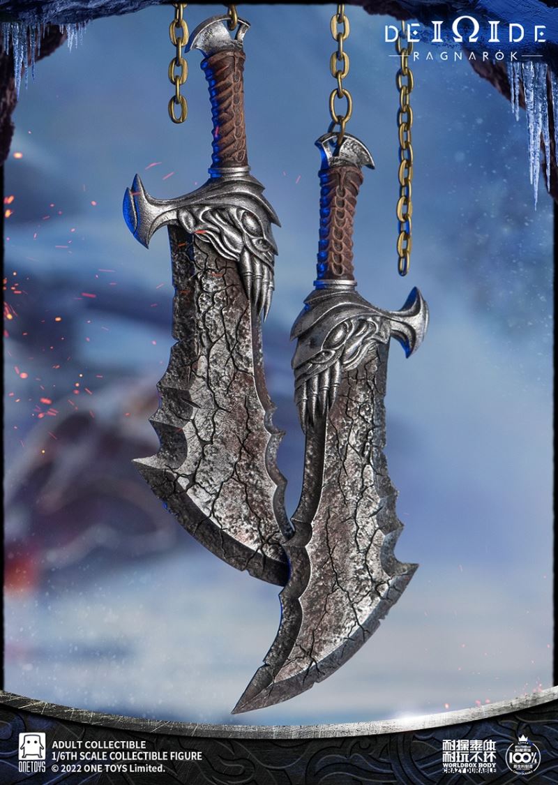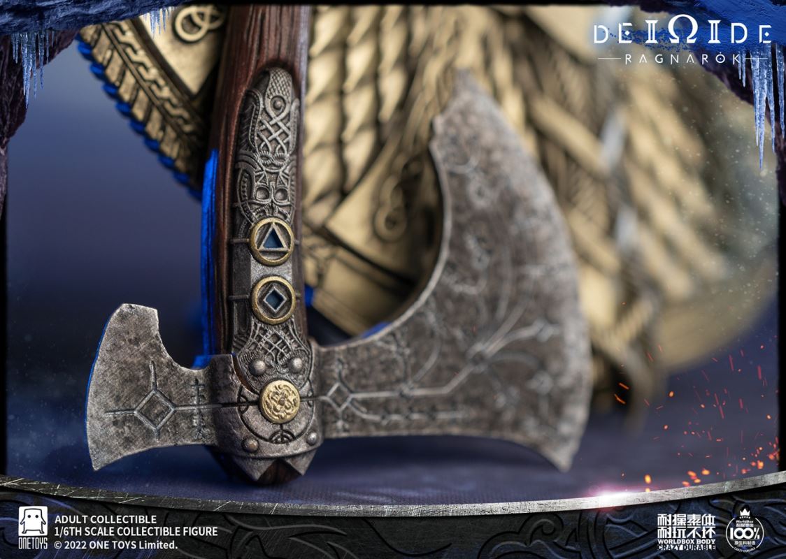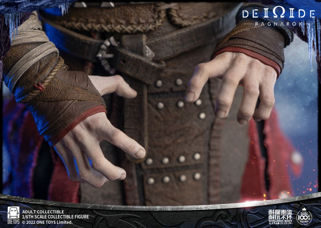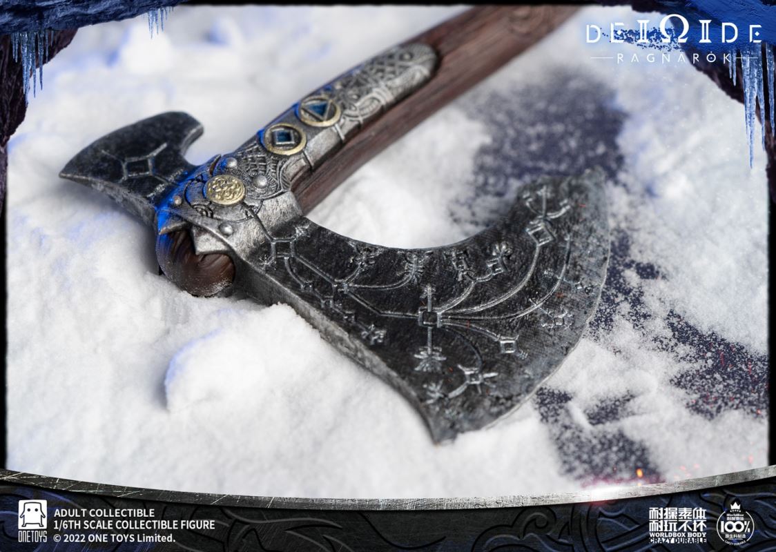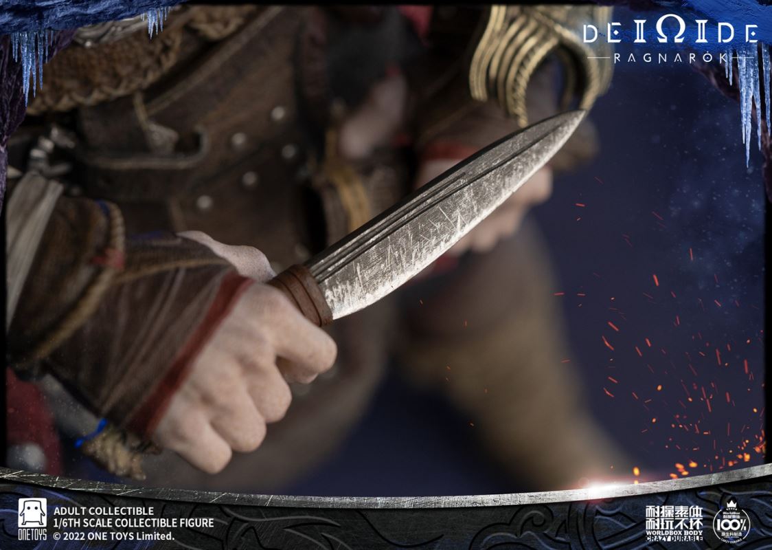 Onetoys:1/6 Man Of War Action Figure- Two (2) head,one head with a closed mouth and a serious expression, one head with an open mouth and a roar.- One (1) mimir head,order for free in the scheduled period.- One (1) body,newly developed body based on character characteristics.- One (1) pairs ordinary gloved hands- One (1) pairs holding gloved hands- One (1) pairs open gloved hands- One (1) pairs fist gloved hands- One (1) upper armor- One (1) Front skirt armor- One (1) Rear skirt armor- One (1) right shoulder armor- One (1) pairs arm armor,the left and right arm armors have different appearances.- One (1) pants- One (1) pairs knee pads- One (1) back pocket- One (1) side waist pocket- One (1) pairs boots,the segmented structure facilitates styling.- One (1) leather belt- One (1) short knife- One (1) scabbard- One (1) tomahawk- One (1) War knife,the end is tied with an iron chain, which can be wrapped around the arm to make a shape.- One (1) closed oval shield- One (1) round shield- One (1) Figure stand