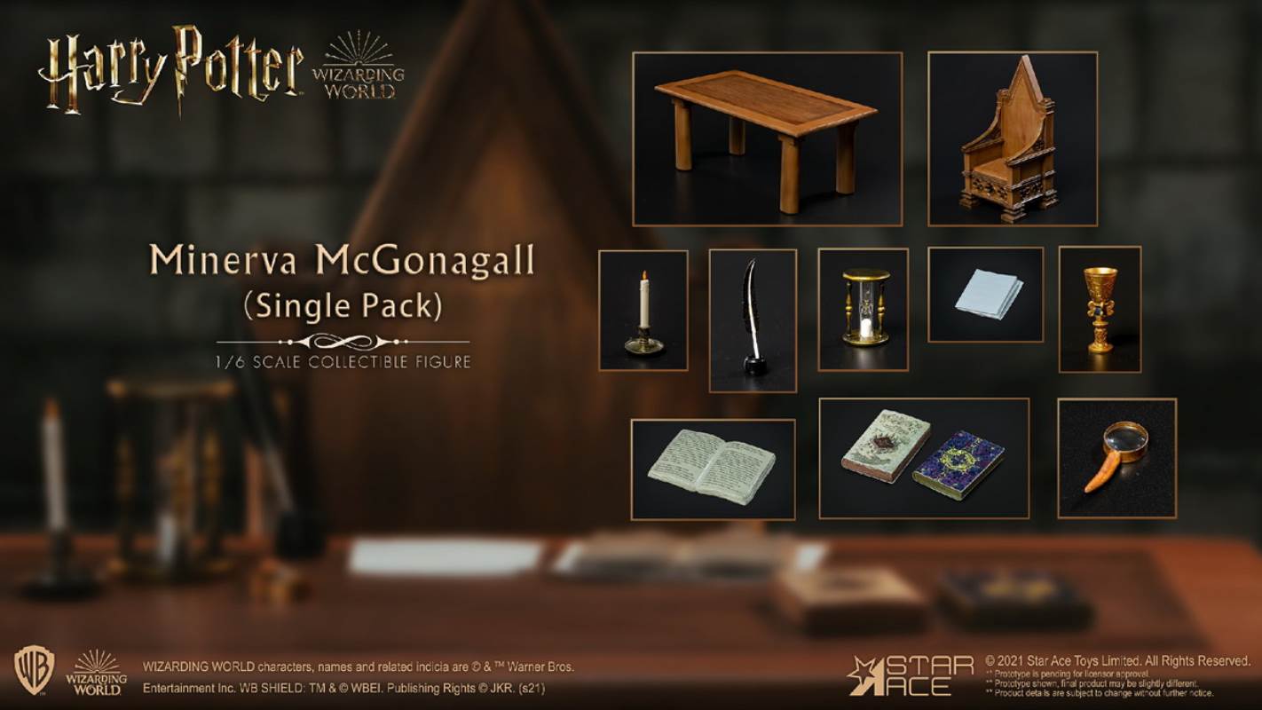 รูปปั้นขนาด 1/6 ของศาสตราจารย์มักกอนนากัลนี้มีลักษณะเหมือนจริงของ Maggie Smith และเครื่องแต่งกายในภาพยนตร์ที่แม่นยำ เธอมาพร้อมกับหมวกคัดแยกรูปแมวแปลงร่างอุจจาระและอุปกรณ์อื่น ๆ อีกมากมาย