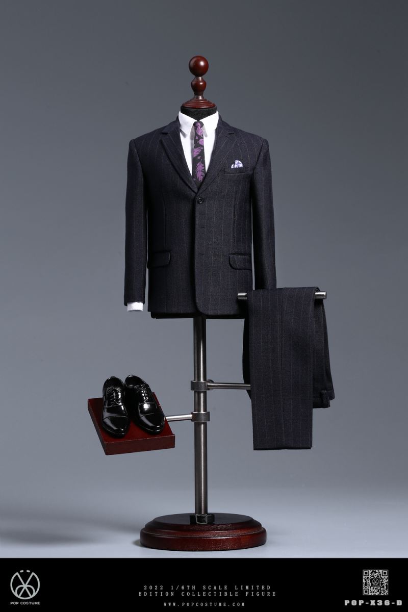 POP COSTUME New 2022 Fall New 1/6 Men's Haute Couture Suit Set Box POP-X36 & POP-X37 & 1/6 Suit Display Stand & EY-04X36 Series Product Set Box contains four monochrome styles:The X36 series product kit contains four monochrome styles:POP-X36-A Navy bluePOP-X36-B Dark grayPOP-X36-C BlackPOP-X36-D Navy blue stripedPOP—X36-A Navy bluePOP-X36 -B Dark grayPOP-X36-C BlackPOP-X36-D Navy blue stripeList:suit jacket*1tie*1shirt*1trousers *1Belt*1Leather shoes*1List:Western-style clothes*1Tie*1Shirt*1Pants*1 pairLeather belt*1Leather shoes*1 pair------------------------The X37 series product kit contains four monochrome styles:POP-X37-A Light gray stripePOP-X37-B Navy blue stripePOP-X37-C Dark gray stripePOP-X37-D BlackPOP-X37-A Light gray stripePOP-X37-B Navy blue stripePOP-X37-C Dark gray stripePOP-X37-D BlackList:suit top*1tie*1shirt *1trousers*1belt*1leather shoes*1List:Western-style clothes*1Tie*1Shirt*1Pants*1 pairLeather belt*1Leather shoes*1 pair---------------------------POP COSTUME 1/6 EY04 Doll Model Clothing Display Stand Man Stand Hanger Alloy Solid WoodMaterial , with the following features:ABS phantom, covered with nylon fabricStand made of 304 stainless steel, durableSolid wood base for stable standingAdjustable stand shoe tray and trouser stand POP COSTUME EY04 showing stand for 1/6th figure suit. Be made of wood and alloy.1/6th exclusive showing stand can create a better showing effect for figures' suit,it has the following characteristics:--The main body is made of ABS, covered with nylon--The holder is made of 304 stainless steel , be more sturdy and durable--The pedestal is made of solid wood, stands firmly--The shoes pallet and trousers' shelf can be adjusted