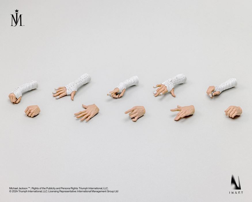 INART-Michael Jackson 1/6 Collectible ActionFigure Product Brand: INARTLicensor: Triumph International, LLC.ProductName: INART-Michael Jackson 1/6 Collectible ActionFigure Product Material: Metal, Resin, PVC, ABS, Wool, Real Fabric, etc.Product Scale: 1/6 (including base H: 37CM*W: 17CM*D: 13CM)Pre-sale Time: 2024.7.24 (GMT+8)--2024. 8.24 (GMT+8)Delivery Method: SF Express Land Transport Cash on DeliveryExpected First Batch Delivery Time: The first half of 2025 (the delivery cycle refers to the actual scheduled quantity, and the exact time will be announced before delivery)Manufacturing Brand: INARTLicensor: Triumph International, LLC.Product Name: Michael Jackson 1/6 Collectible FigureMaterial: Metal, Resin, PVC, ABS, Wool, Genuine Fabric, etc.Figure: Sixth Scale (Aprox. 12 Inches)Product Size: 37cm (H) * 17cm (W) * 13cm (D) (including base)Pre-order Period: 24th July, 2024 - 24th August, 2024 (GMT +8)Delivery Method: SF Express Land Transport COD EstimatedEstimated First Batch Shipping: First Half of 2025(Shipping period subject to actual pre-order quantity, accurate time to be announced before shipping)Price of work: 3280 yuanPrepayment of work: 650 yuanAccessories of work: INART movable body*1, movable eye hair transplant head sculpture*1, performance costume set*1, black leather shoes with socks*1 pair, belt*1 shoulder strap*1 fist hand shape*1 pair, open palm hand shape*1 pair, pinching hand shape*1 pair, pointing hand shape*1 pair, stretching hand shape*1 pair, earphones with microphone*1, glasses*1, performance scene magnetic platform (including stairs)*1, INART hair transplant head sculpture box*1Product Price: 3280 RMBProduct Deposit: 650 RMBFigure- Rooted Hair Head Sculpt With Rolling Eyes *1- Fully Articulating Body *1- Interchangeable Hand Sets *5 Including:- Fist Hands *1 pair- Open Palm Hand *1 pair- Pointing Hand *1 pair- Stretched Hands *1 pair- Pinching Hands *1 pairClothing- Michael Jackson Jam Costume Set * 1- Belt *1- Shoulder Strap *1- Black Leather Shoes *1 pairAccessories- Headphones with microphone*1- Glasses *1Base- Magnetic Base(Including stairs) *1Display Box-Rooted Head Sculpt Display Box *1