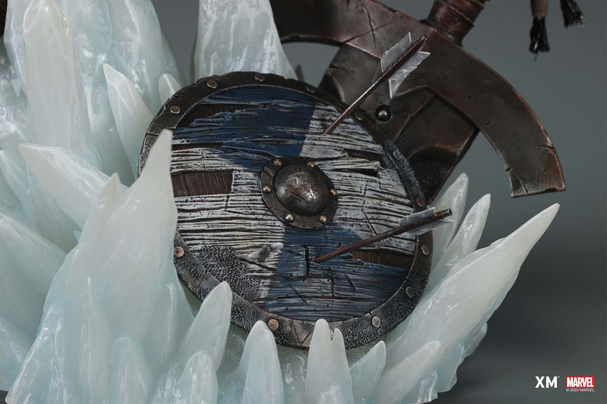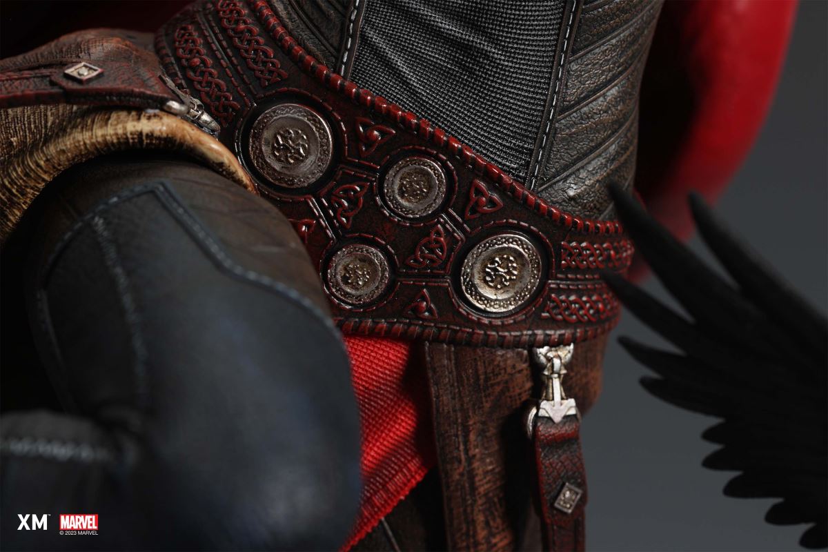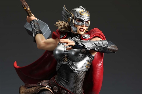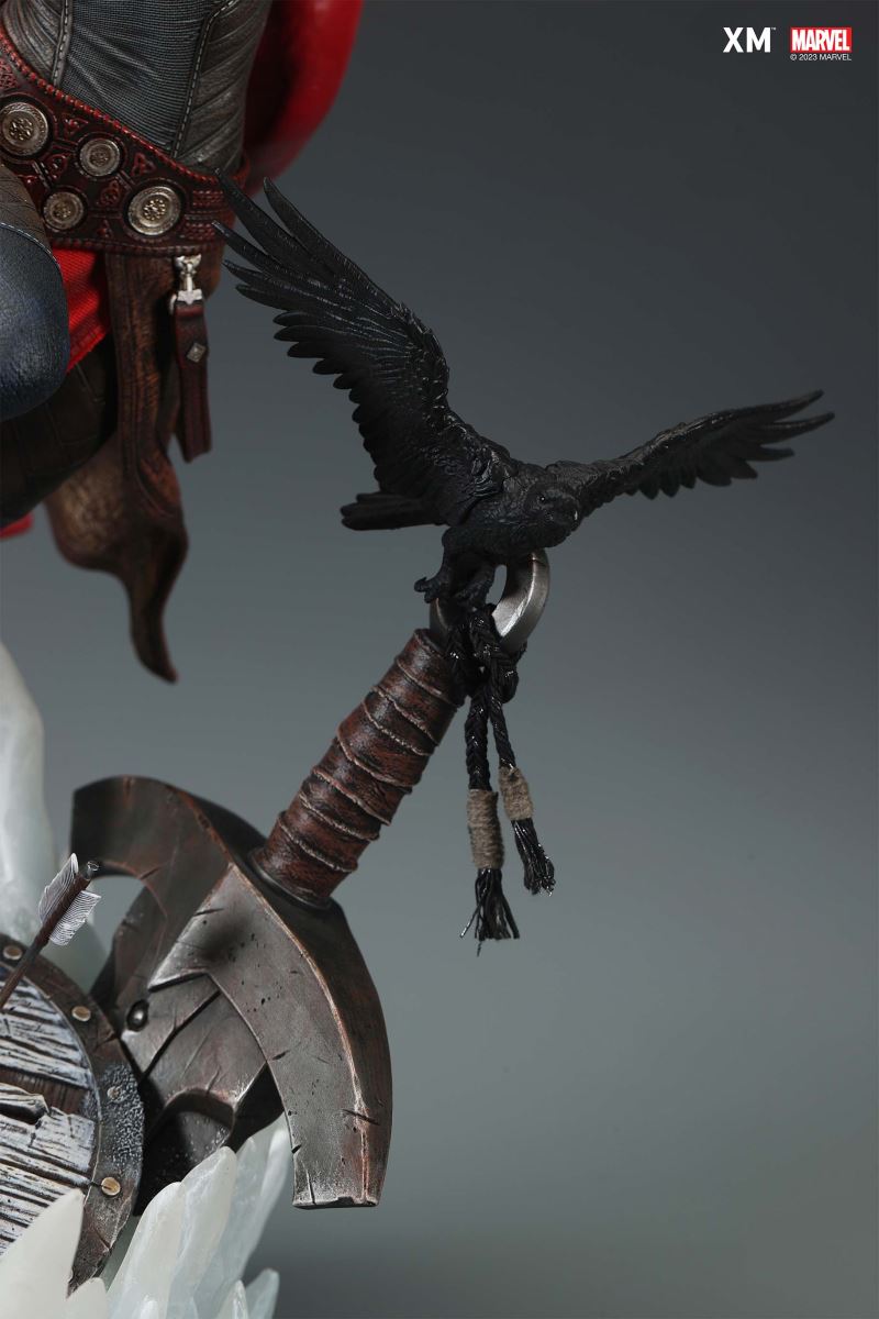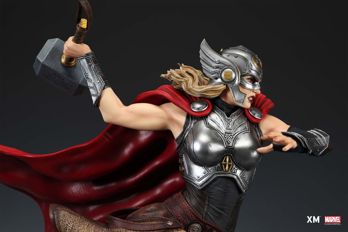 XM Studios is excited to present the next 1/4 scale Marvel Premium Collectibles, Mighty Thor!Each painstakingly handcrafted statue is individually hand-painted with XM’s famous quality finish, and comes in a bold, dynamic, and story-laden style. Jane Foster was granted Thor’s powers when she was deemed worthy to wield Mjolnir. This statue showcases her Asgardian strength and flight as she charges forward with the Mjolnir in her hand as the new Goddess of Thunder. Mighty Thor is seen in mid-flight on an ice crystal base battlefield as she wields the mythical hammer, preparing to throw an attack. She is cladded in Asgardian armor in silver, red and black colour scheme, with leathery tones and textures modernized in XM style. Her unwavering determination to take down the enemies is striking beneath her winged helm. Mighty Thor Premium Collectibles statue features:Highly detailed sculpt featuring Mighty Thor on battlefield charging with a ravenCrafted in PolystoneEach painstakingly handcrafted statue is individually hand-painted with the highest possible quality finishES: 199 Artists:Jorge Molina (2D)Tiago Zenobini (3D)XM Studios Design and Development Team Manufactured by:XM Studios Product and Box Dimensions:Est. Product Size: 45 x 48 x 53cmEst. Box Size: 70 x 55 x 28cmEst. Product Weight: 10kgEst. Shipping Weight: 13kgNote: Prototype shown and pending final approval, final product may differ. Batteries will not be included for products with light up features due to customs.