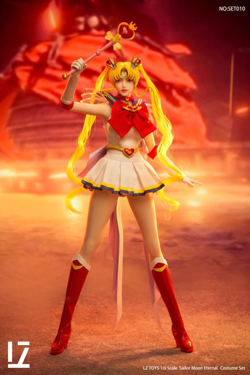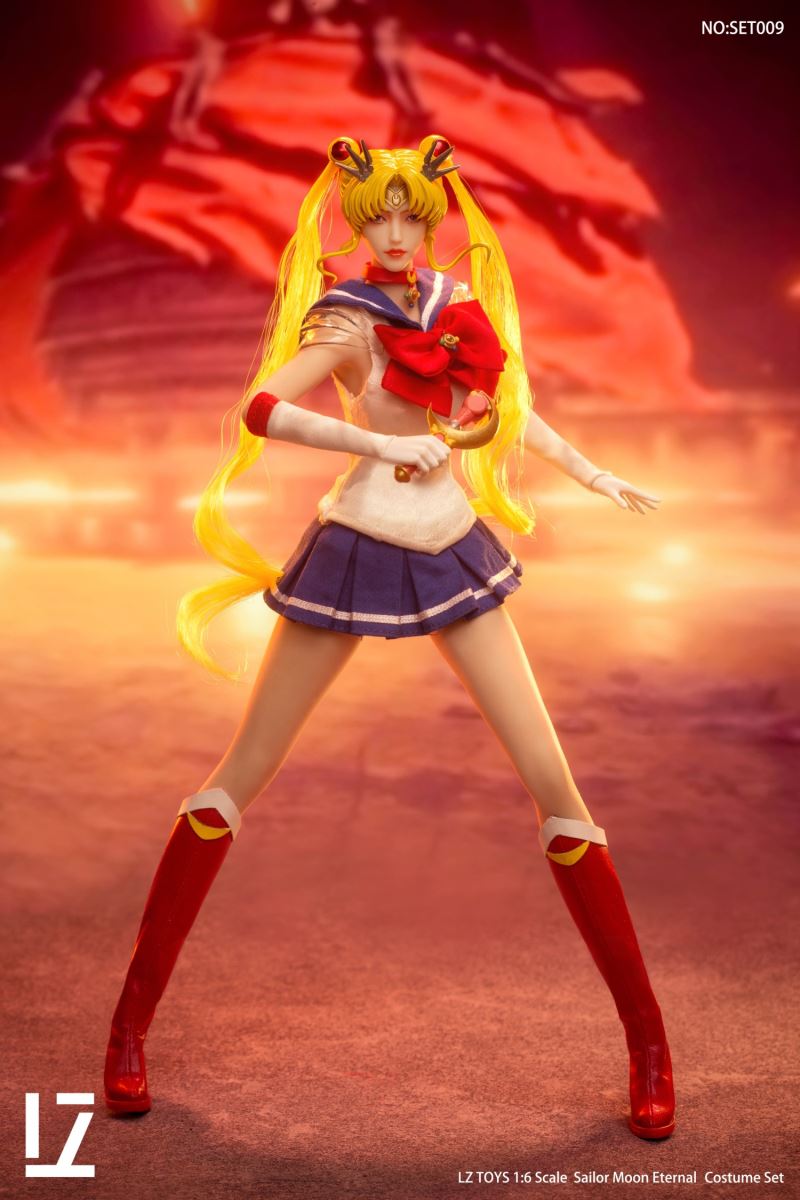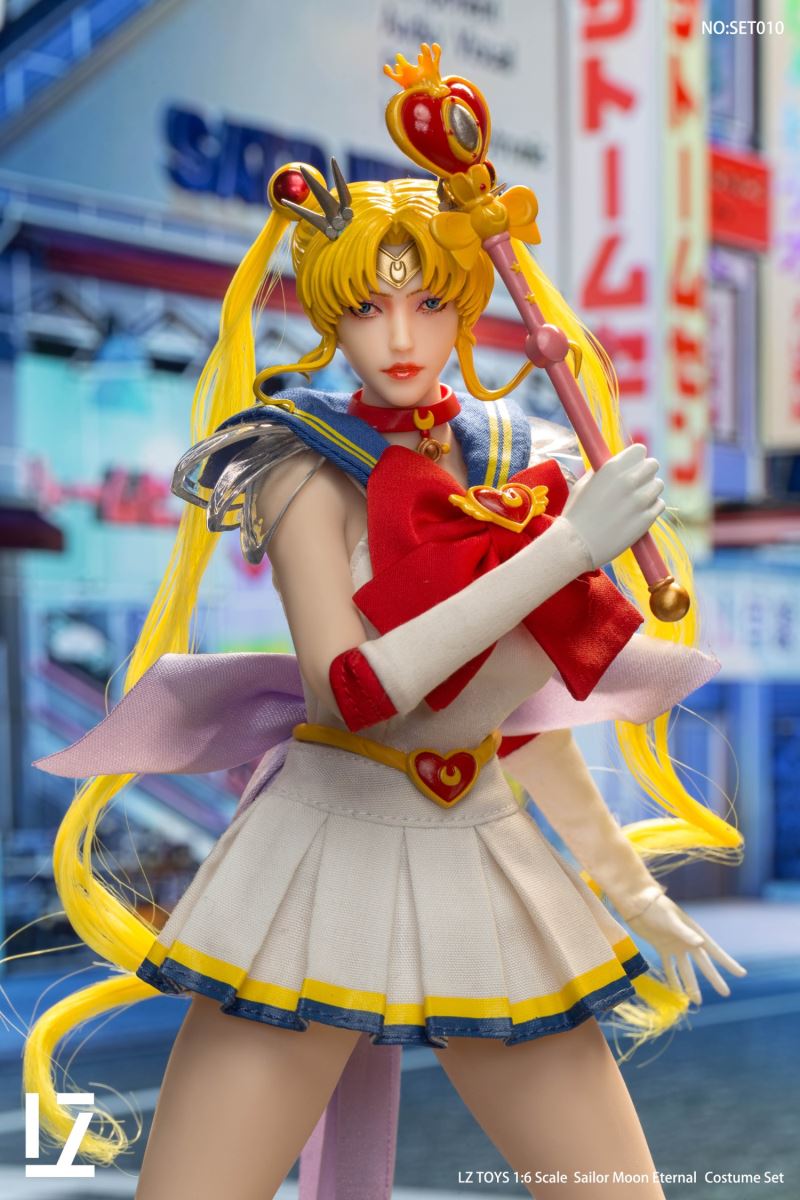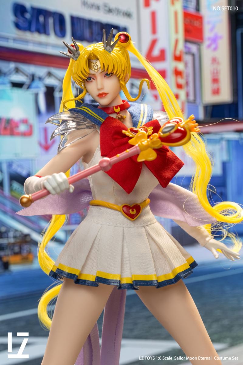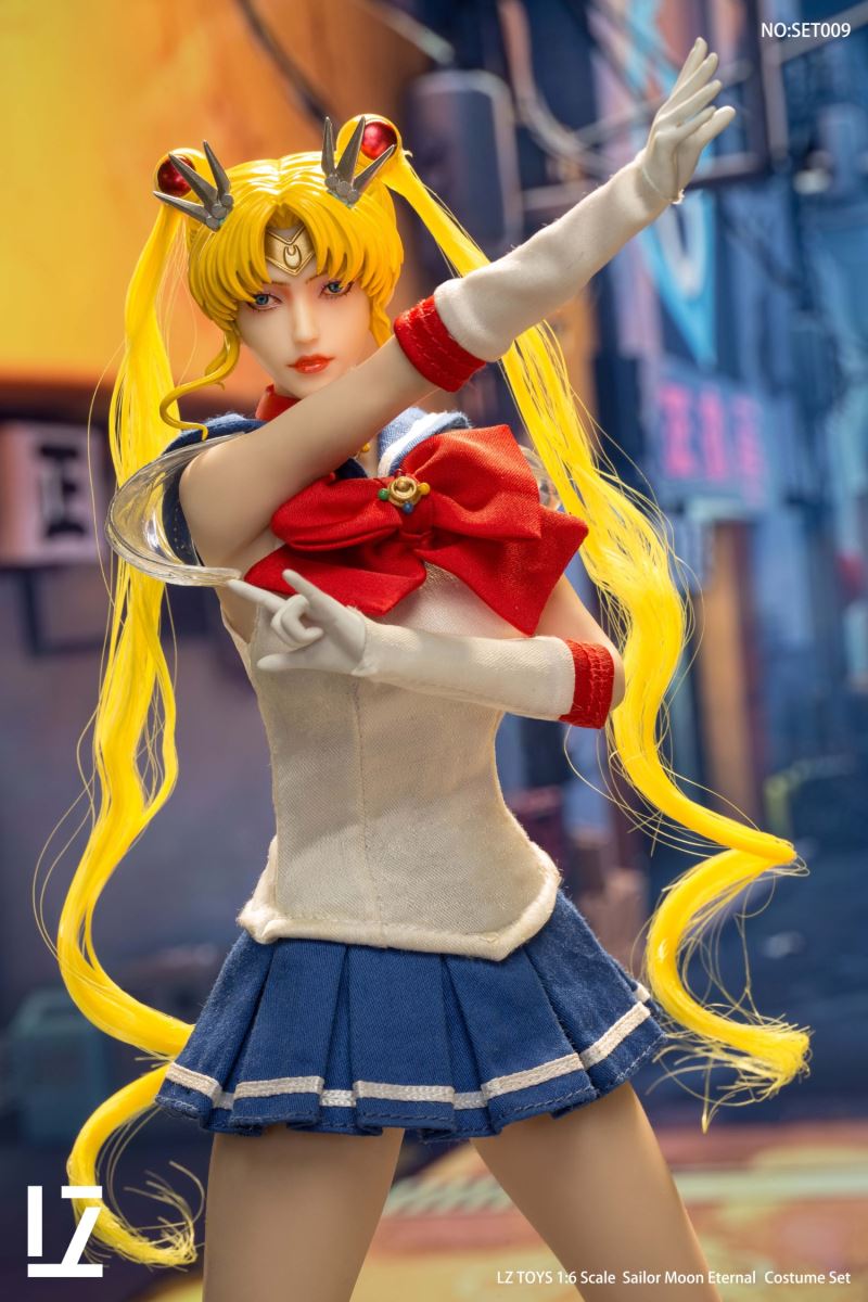 LZ TOYS 1/6 Moon Warrior Head Carving Costume Set SET009 Classic Edition/SET010 Theater EditionList:SET009 Classic Edition:Head carving (with headgear, hair accessories, long braids)*1Necklace*1Sailor suit top (with bow on chest)*1Shoulder armor*2Sleeve*2Sailor suit skirt*1Boots *2White gloves hand type*6pcsShort handle staff*1This product does not contain the body.The product is recommended to be matched with TBLeague S36A 2Dfemale seamless body with metal skeleton.