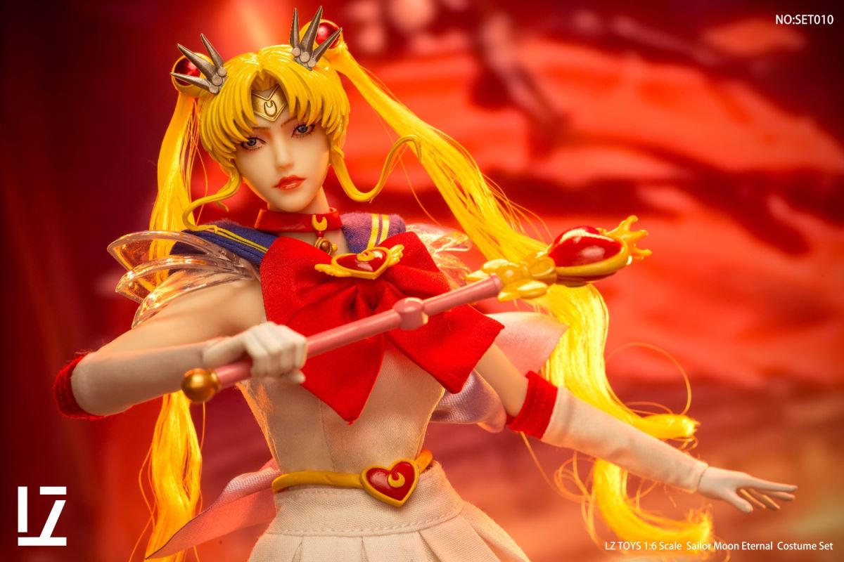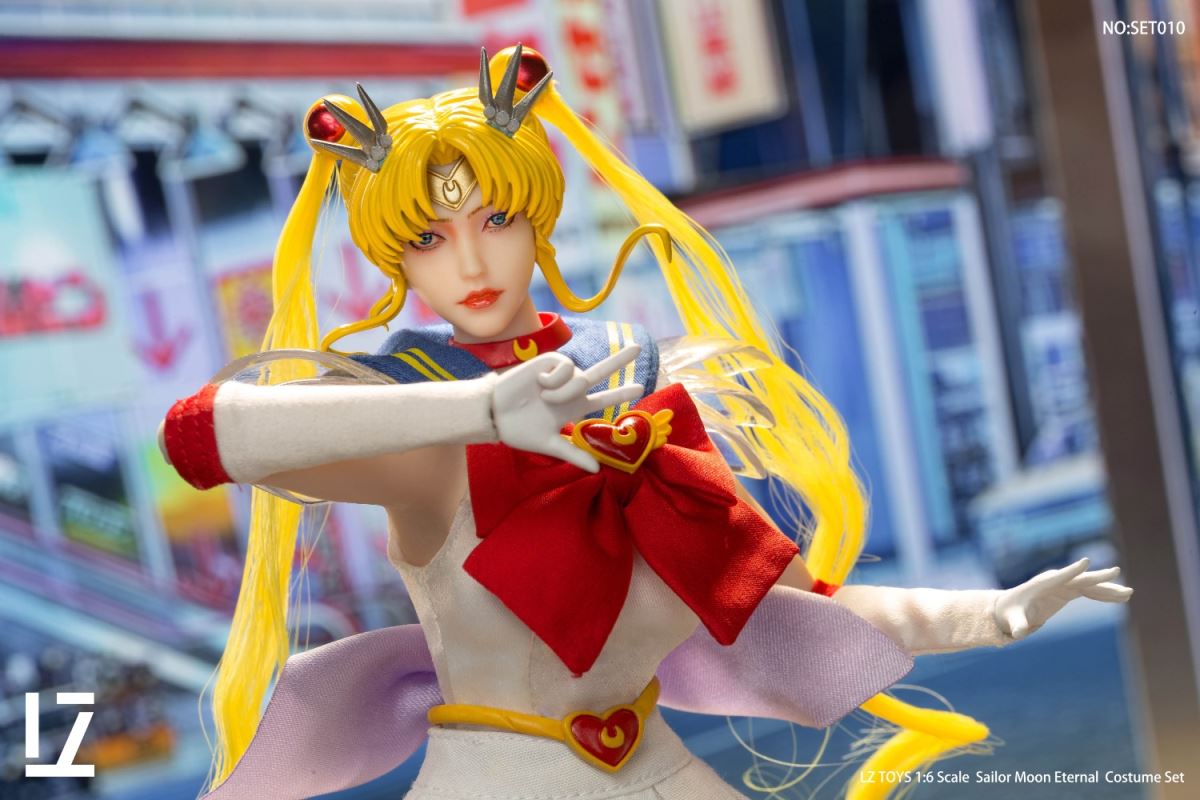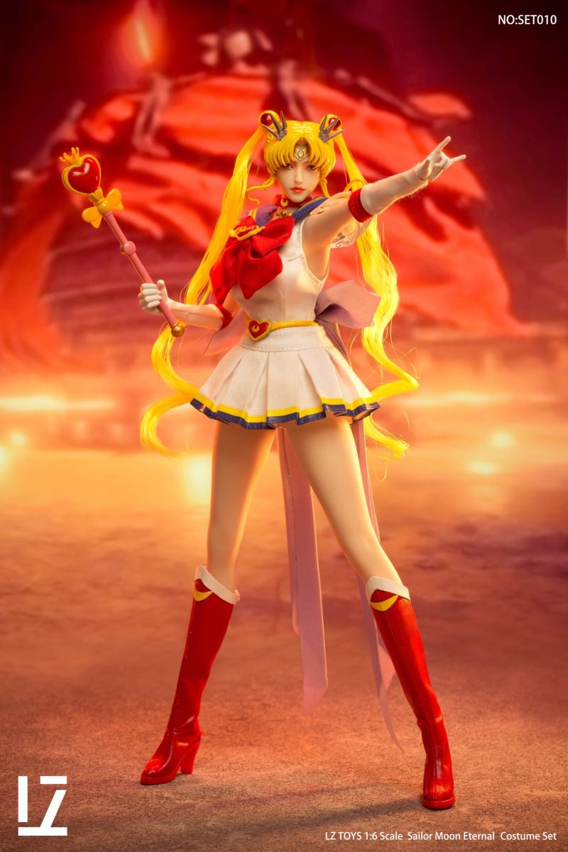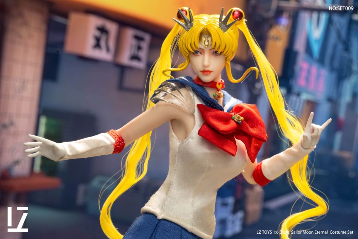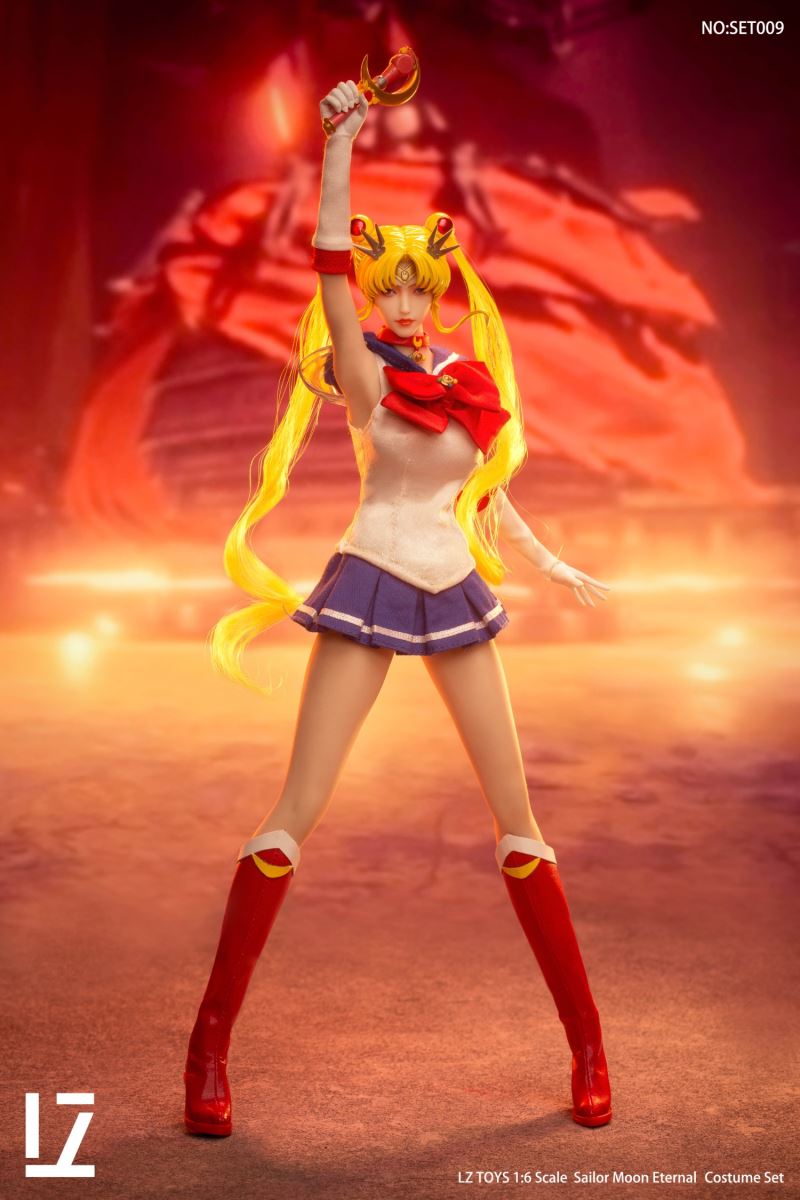 LZ TOYS 1/6 Moon Warrior Head Carving Costume Set SET009 Classic Edition/SET010 Theater EditionList:SET009 Classic Edition:Head carving (with headgear, hair accessories, long braids)*1Necklace*1Sailor suit top (with bow on chest)*1Shoulder armor*2Sleeve*2Sailor suit skirt*1Boots *2White gloves hand type*6pcsShort handle staff*1This product does not contain the body.The product is recommended to be matched with TBLeague S36A 2Dfemale seamless body with metal skeleton.