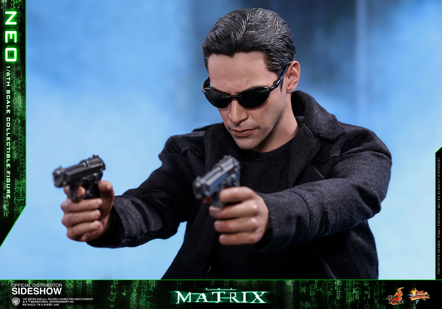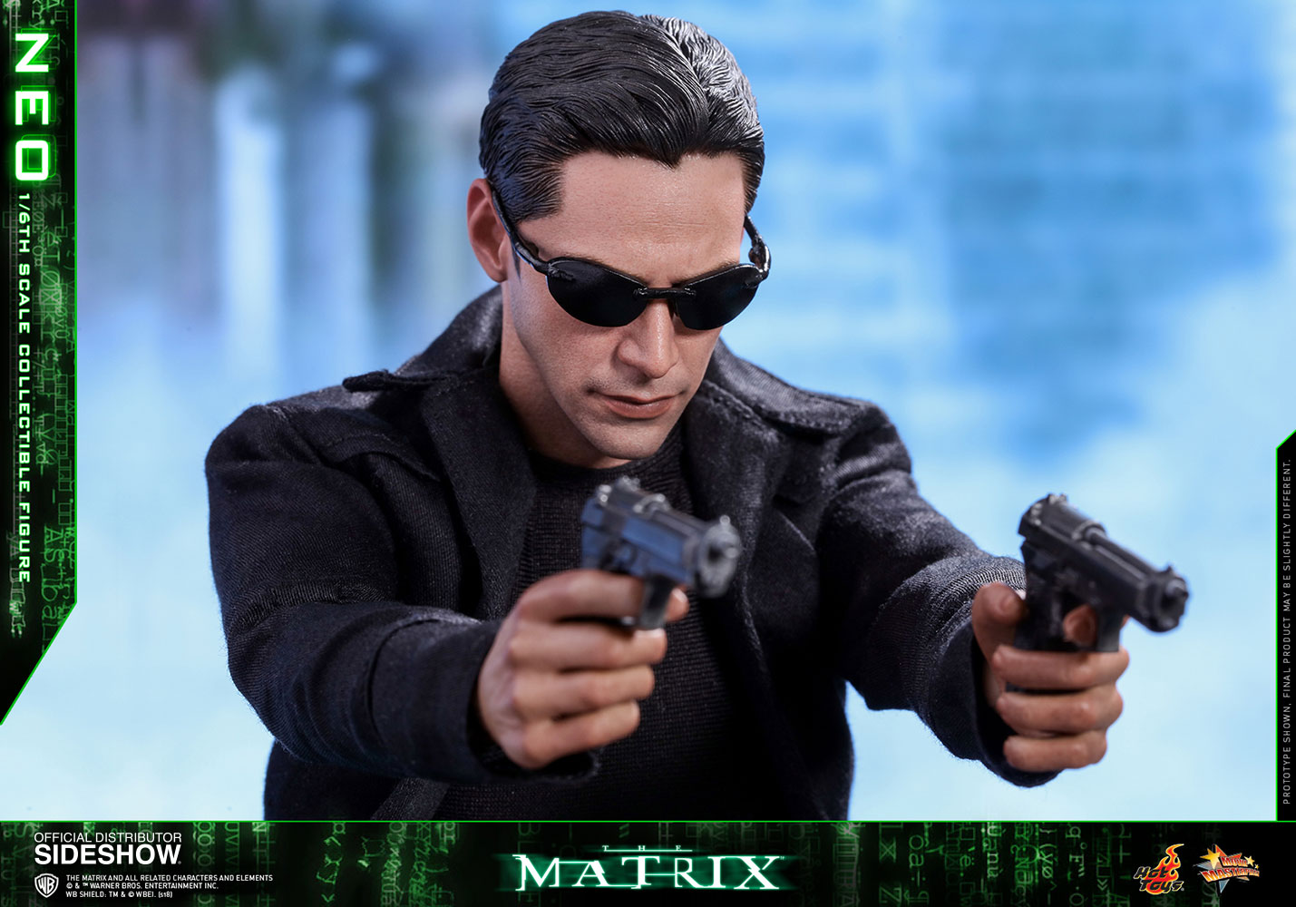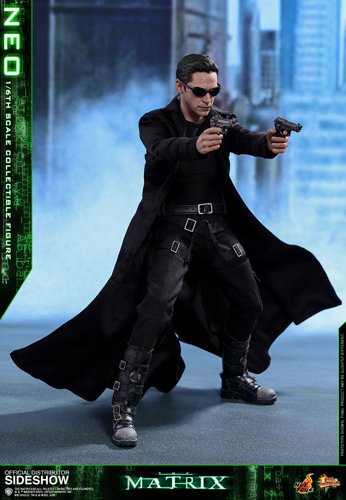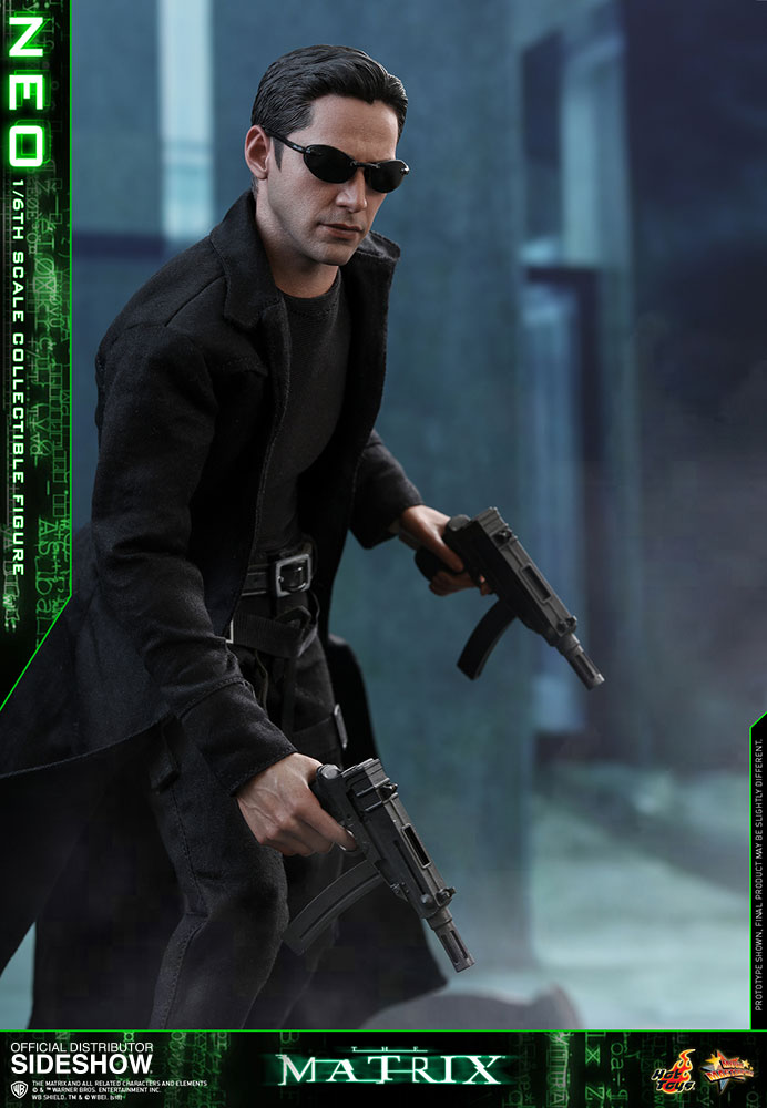 NeoABOUT THIS SIXTH SCALE FIGURE“He is the one.” – MorpheusIn the binary world with one and zero codes, are you a zero, or The One? The legendary and widely acclaimed Sci-Fi blockbuster The Matrix has created a tremendous impact on cinema and pop-culture with its concepts and characters. Portrayed by the renowned actor Keanu Reeves and ranked as one of the greatest movie characters of all time, Neo is foretold by the prophecy to be “The One” who can put an end to the war between humans and machines and free humanity.Sideshow and Hot Toys are very excited to present the highly anticipated 1/6th scale Neo collectible figure from the award-winning science fiction film The Matrix. With meticulous and careful craftsmanship, the very stylish sixth scale figure features a newly developed head sculpt highlighting a stunning likeness of Keanu Reeves as Neo in the movie, the signature form-fitting outfit and long coat with sophisticated tailoring, “lots of guns” including assault rifles, various types of submachine guns, and pistols, the iconic sunglasses, and a specially designed dynamic figure stand!Welcome to the Real World. Forge your love for this monumental Sci-Fi blockbuster by adding this incredible 1/6th scale Neo collectible figure to your collection, this is an offer you definitely shouldn’t pass up!LicenseThe MatrixTypeSixth Scale FigureManufacturerHot ToysArtistsYulli (Head Sculpt)E-Lee (Head Paint)Da-Hye Kim (Head 3D Design)JC. Hong (Head Paint & Art Direction)WHAT'S IN THE BOX?The Neo Sixth Scale Figure specially features:An authentic and detailed likeness of Keanu Reeves as Neo in The MatrixNewly developed head sculpt with movie-accurate facial expression and detailed skin textureApproximately 32 cm tallSpecialized body with over 30 points of articulationEight (8) pieces of interchangeable hands including: - One (1) pair of fists - One (1) pair of weapon holding hands - One (1) pair of relaxed hands - One (1) pair of open handsEach head sculpt is specially hand-paintedCostume:One (1) black long coatOne (1) black long-sleeve T-shirtOne (1) black shoulder holsters with harnessOne (1) black gun strap (wearable on the neck)One (1) black color leather-like beltOne (1) pair of black pants One (1) pair of black and white color leather-like bootsWeapons:One (1) pair of assault riflesThree (3) pairs of submachine gunsOne (1) pair of pistolsAccessories:One (1) pair of black sunglassesOne (1) black color duffle bagSpecially designed dynamic figure base with Neo nameplate and The Matrix logoADDITIONAL DETAILS & DIMENSIONSExpected to ShipJan 2019 - Mar 2019Item shown is a prototype. When shipped, the final production piece may differ in appearance.Product Size12.59 H (319.79mm)*Dimensional WeightTBDInt'l Dim. WeightTBD* Size and weight are approximate values.SKU903302UPC4897011185170THE MATRIX and all related characters and elements © & ™ Warner Bros. Entertainment Inc. WB SHIELD: TM & © WBEI. (s18) © 2018 Hot Toys Limited. All Rights Reserved.