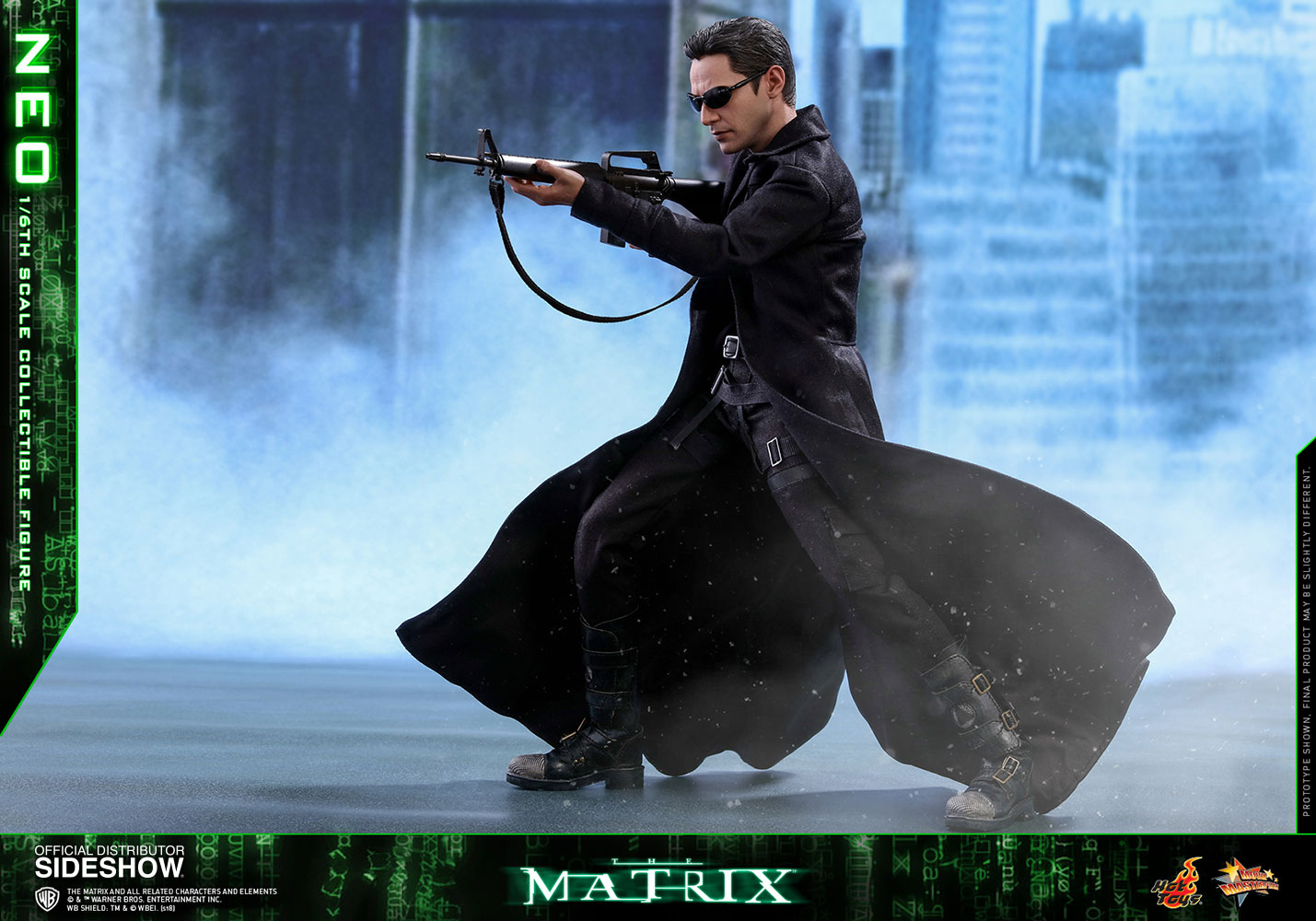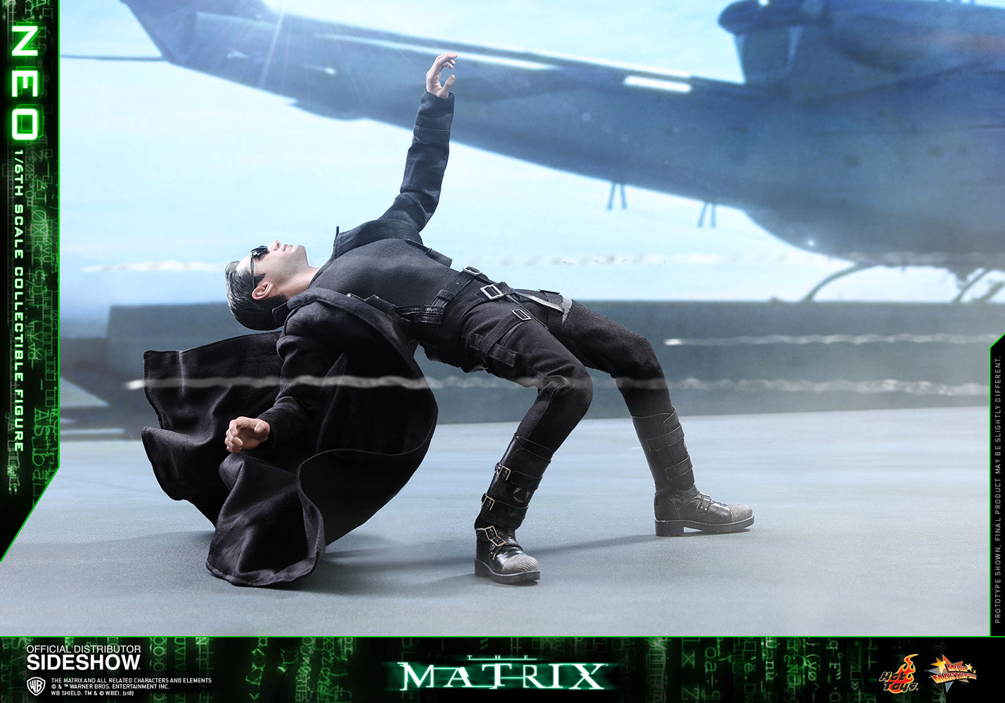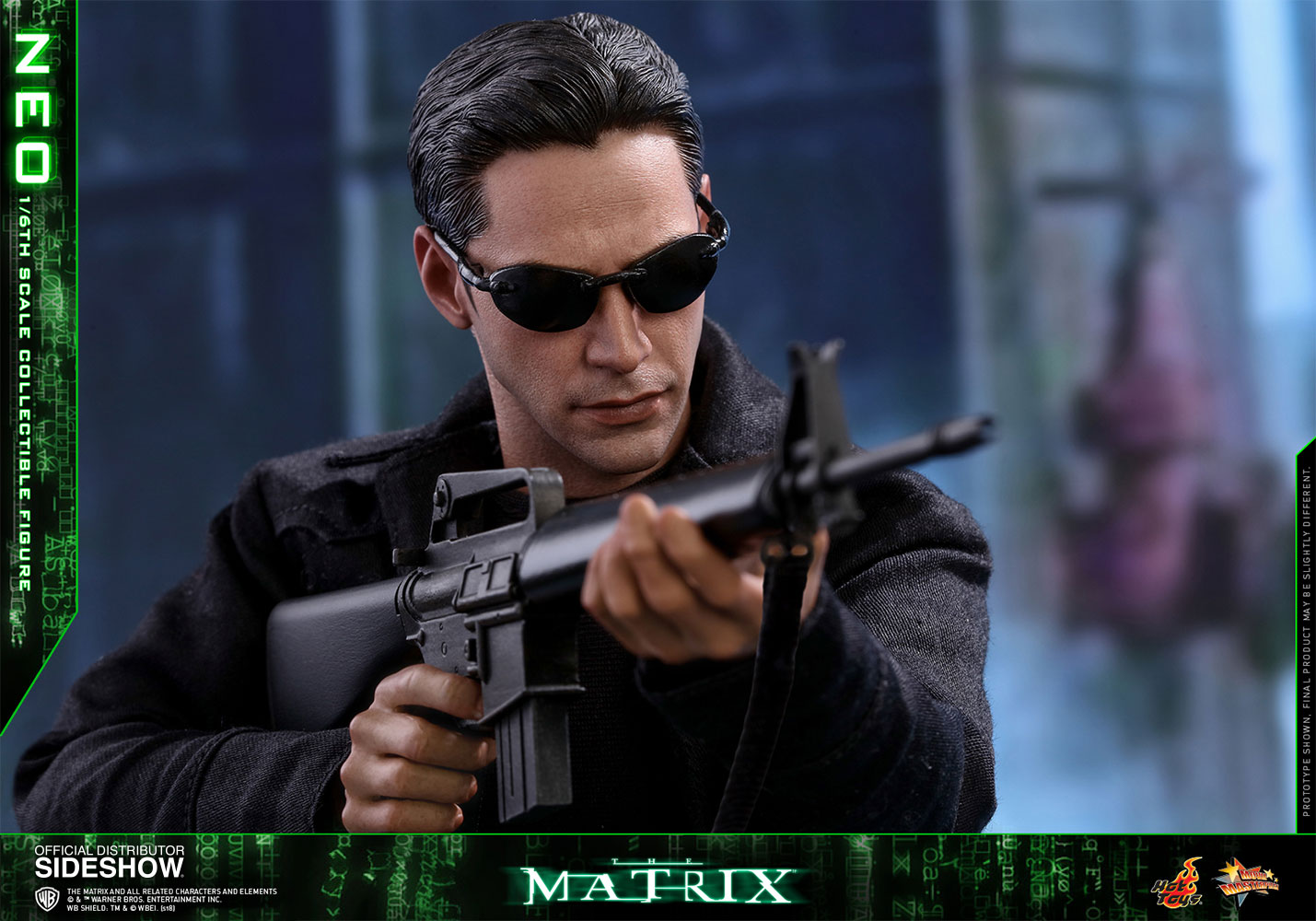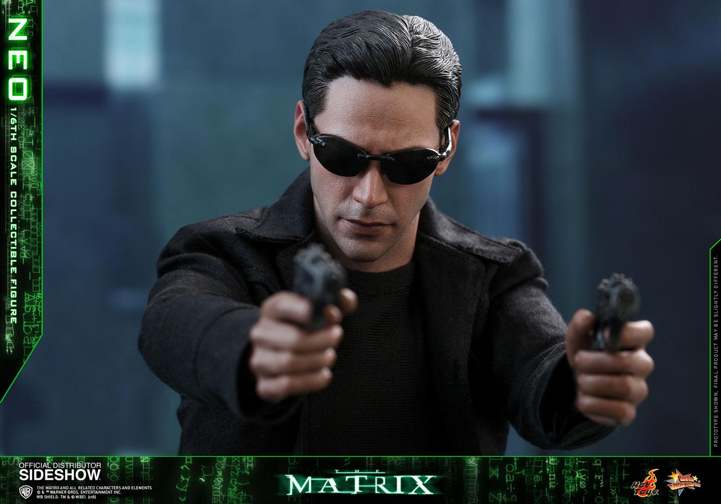NeoABOUT THIS SIXTH SCALE FIGURE“He is the one.” – MorpheusIn the binary world with one and zero codes, are you a zero, or The One? The legendary and widely acclaimed Sci-Fi blockbuster The Matrix has created a tremendous impact on cinema and pop-culture with its concepts and characters. Portrayed by the renowned actor Keanu Reeves and ranked as one of the greatest movie characters of all time, Neo is foretold by the prophecy to be “The One” who can put an end to the war between humans and machines and free humanity.Sideshow and Hot Toys are very excited to present the highly anticipated 1/6th scale Neo collectible figure from the award-winning science fiction film The Matrix. With meticulous and careful craftsmanship, the very stylish sixth scale figure features a newly developed head sculpt highlighting a stunning likeness of Keanu Reeves as Neo in the movie, the signature form-fitting outfit and long coat with sophisticated tailoring, “lots of guns” including assault rifles, various types of submachine guns, and pistols, the iconic sunglasses, and a specially designed dynamic figure stand!Welcome to the Real World. Forge your love for this monumental Sci-Fi blockbuster by adding this incredible 1/6th scale Neo collectible figure to your collection, this is an offer you definitely shouldn’t pass up!LicenseThe MatrixTypeSixth Scale FigureManufacturerHot ToysArtistsYulli (Head Sculpt)E-Lee (Head Paint)Da-Hye Kim (Head 3D Design)JC. Hong (Head Paint & Art Direction)WHAT'S IN THE BOX?The Neo Sixth Scale Figure specially features:An authentic and detailed likeness of Keanu Reeves as Neo in The MatrixNewly developed head sculpt with movie-accurate facial expression and detailed skin textureApproximately 32 cm tallSpecialized body with over 30 points of articulationEight (8) pieces of interchangeable hands including: - One (1) pair of fists - One (1) pair of weapon holding hands - One (1) pair of relaxed hands - One (1) pair of open handsEach head sculpt is specially hand-paintedCostume:One (1) black long coatOne (1) black long-sleeve T-shirtOne (1) black shoulder holsters with harnessOne (1) black gun strap (wearable on the neck)One (1) black color leather-like beltOne (1) pair of black pants One (1) pair of black and white color leather-like bootsWeapons:One (1) pair of assault riflesThree (3) pairs of submachine gunsOne (1) pair of pistolsAccessories:One (1) pair of black sunglassesOne (1) black color duffle bagSpecially designed dynamic figure base with Neo nameplate and The Matrix logoADDITIONAL DETAILS & DIMENSIONSExpected to ShipJan 2019 - Mar 2019Item shown is a prototype. When shipped, the final production piece may differ in appearance.Product Size12.59 H (319.79mm)*Dimensional WeightTBDInt'l Dim. WeightTBD* Size and weight are approximate values.SKU903302UPC4897011185170THE MATRIX and all related characters and elements © & ™ Warner Bros. Entertainment Inc. WB SHIELD: TM & © WBEI. (s18) © 2018 Hot Toys Limited. All Rights Reserved.