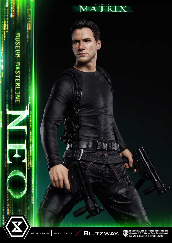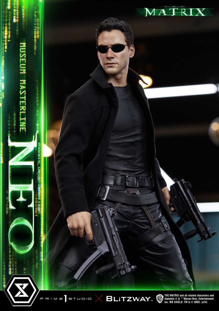 My name... is Neo.Awaken the One: A Revolutionary Statue from the 1999 Cinematic BreakthroughCelebrating the 25th anniversary of the groundbreaking sci-fi action film The Matrix, Prime 1 Studio and Blitzway present the iconic protagonist Neo as part of the Museum Masterline series.This statue captures the moment Neo begins to awaken as the One, rushing to rescue Morpheus from capture. The stunning visual effect-driven action that coined the term Bullet Time and the movie's theme of belief , fate vs free will are embodied in this 1/3 scale figure, bringing the thrilling climax to life in remarkable detail.The statue, carefully crafted using resin ideal for precision processing, boasts a likeness of Keanu Reeves, perfectly capturing his striking and enigmatic features. From the carefully sculpted contours of his face to the lifelike texture of his skin, every aspect is crafted with precision. The iconic custom-made sunglasses are faithfully recreated and can be removed to reveal Neo's determined gaze.His outfit, made of dull-shining leather, battle-worn nylon, and metal, is expertly crafted to showcase various textures, complete with authentic weathering and wrinkles. The long fabric coat can be removed, and the interchangeable hand parts, including both armed and unarmed options, offer alternate styles. The LED base features the Matrix Code, enhancing these styles, adding to the dramatic presence.Additionally, the Bonus Version includes extra hand parts holding machine pistols. This allows fans to recreate the intense shootout scene.After a quarter-century, the One returns with stunning realism. Add this revolutionary piece to your collection and bring a piece of cinematic history into your display! Specifications: Highly detailed likeness sculpture of Keanu ReevesSophisticatedly tailored and designed outfitsThe Matrix Themed Base (with LED Illumination)Power supply method: TBD*Please prepare batteries, USB cables, etc., depending on the power supply method.One (1) SunglassesThree(3) Swappable Pair of Hands(Normal, Handgun, Submachine Gun)One(1) Swappable Bonus Pair of Hands(Holding Uzi)[Bonus Part] Notice:Prototype samples shown.Product details could be subject to change without further notice.Please note the final product specifications may differ because each product is Handmade.Since the product is still in the development stage, the Size (up to 10%) & Weight (up to 10kg) may be changed during the production stage. THE MATRIX and all related characters and elements © & ™ Warner Bros. Entertainment Inc. WB SHIELD: TM & © WBEI. (s24) DETAILSBrandsPRIME 1 STATUECollectionMuseum MasterlineSeriesThe Matrix SeriesScale1/3 ScaleProduct CodeMMMAT-01SProduct Size Approx.H:71.2cm W:45cm D:44cmCarton(Est):2 boxesProduct Weight Approx.20 kgMaterialsPolystone and other materialsJAN4582647120168
