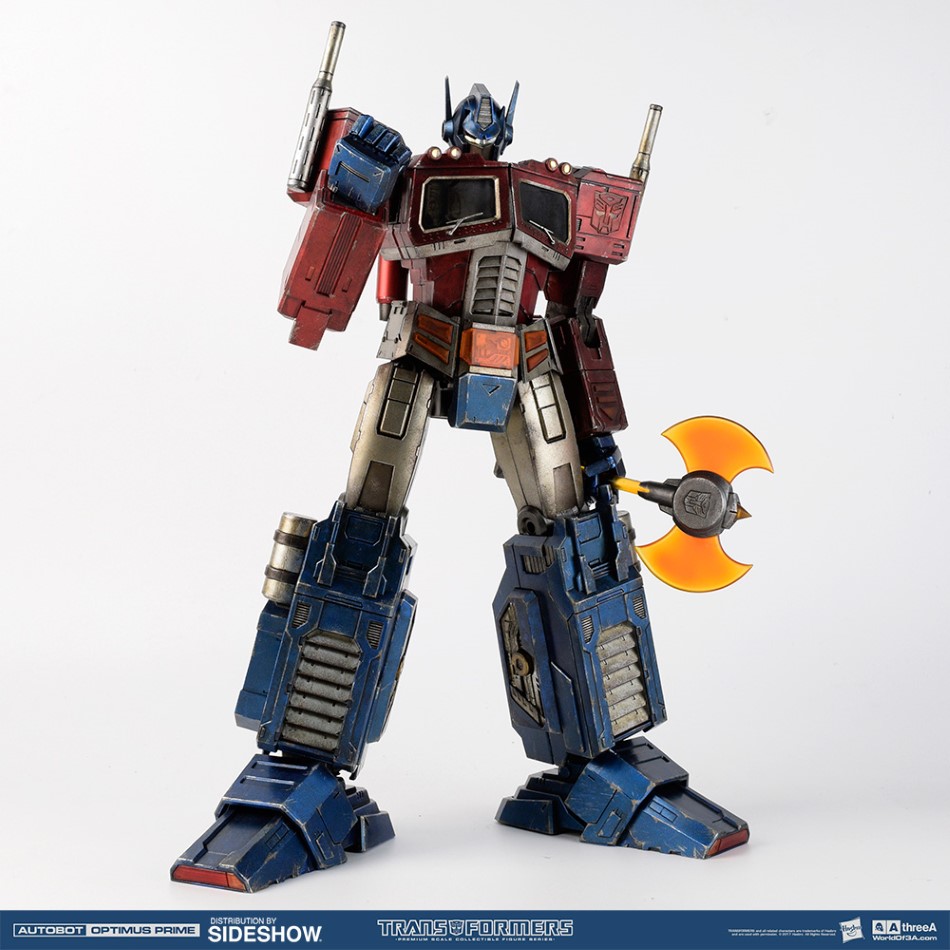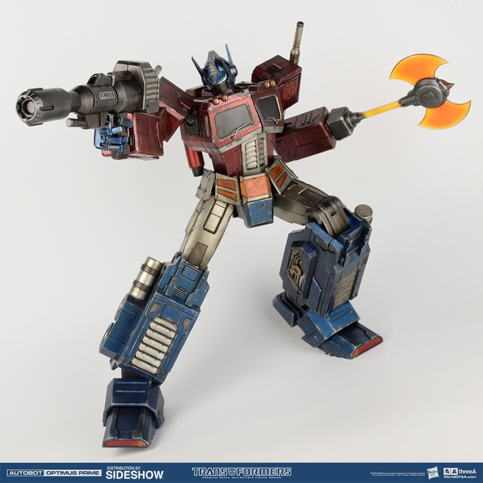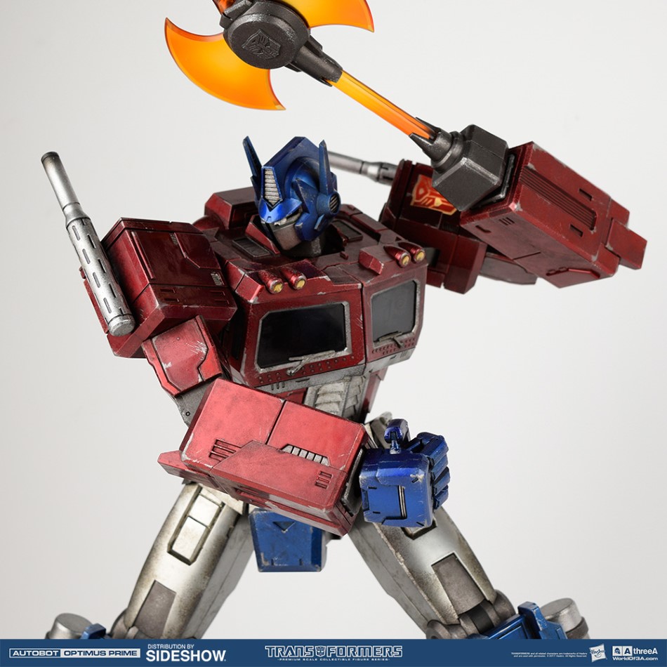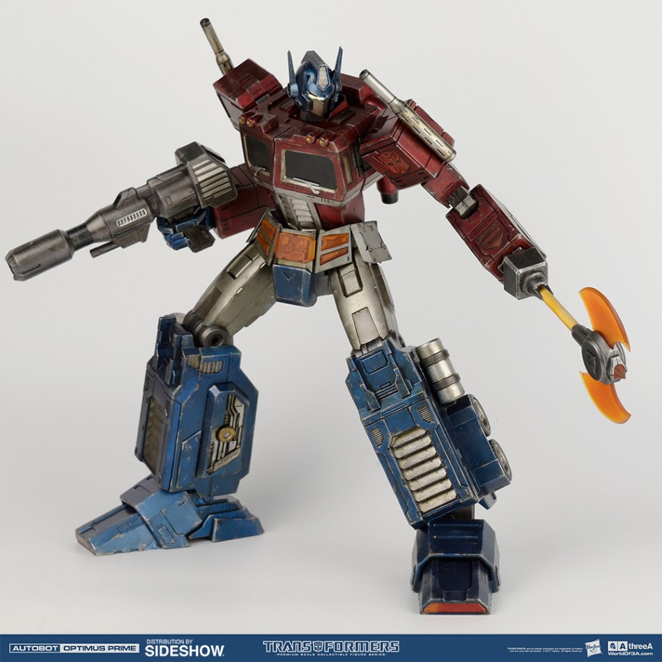 Hasbro and 3A proudly present the first release in the epic Transformers Generation One Premium Scale Collectible Series: the heroic Leader of the Autobots, Optimus Prime! Taking direct inspiration from the 1980s toy and animated series character model, Ashley Wood and the development team at ThreeA have taken a remixed approach that blends their uniquely stylized aesthetics while retaining Optimus Prime’s original iconic look.The Optimus Prime Classic Edition stands approximately 16” (40.64cm) tall and bears a stylized brawler-esque physique. The Classic Edition features a hefty 30% die-cast body, heavily weathered metallic paint, LED illuminated detailing, and an incredible range of articulation – including opening Matrix Chamber. The tankards and wheel wells are removable for a more streamlined animation style appearance. Transformers Generation One Optimus Prime comes complete with interchangeable Energon Axe and his iconic Blaster Rifle. LicenseTransformersTypeCollectible FigureManufacturerThreeA ToysArtistAshley Wood (Design) ADDITIONAL DETAILS & DIMENSIONSExpected to ShipAug 2017 - Oct 2017Item shown is a prototype. When shipped, the final production piece may differ in appearance.Product Size16 H (406.4mm)*Dimensional WeightTBDInt'l Dim. WeightTBD* Size and weight are approximate values.SKU902953UPC4897056213951Price $390.00