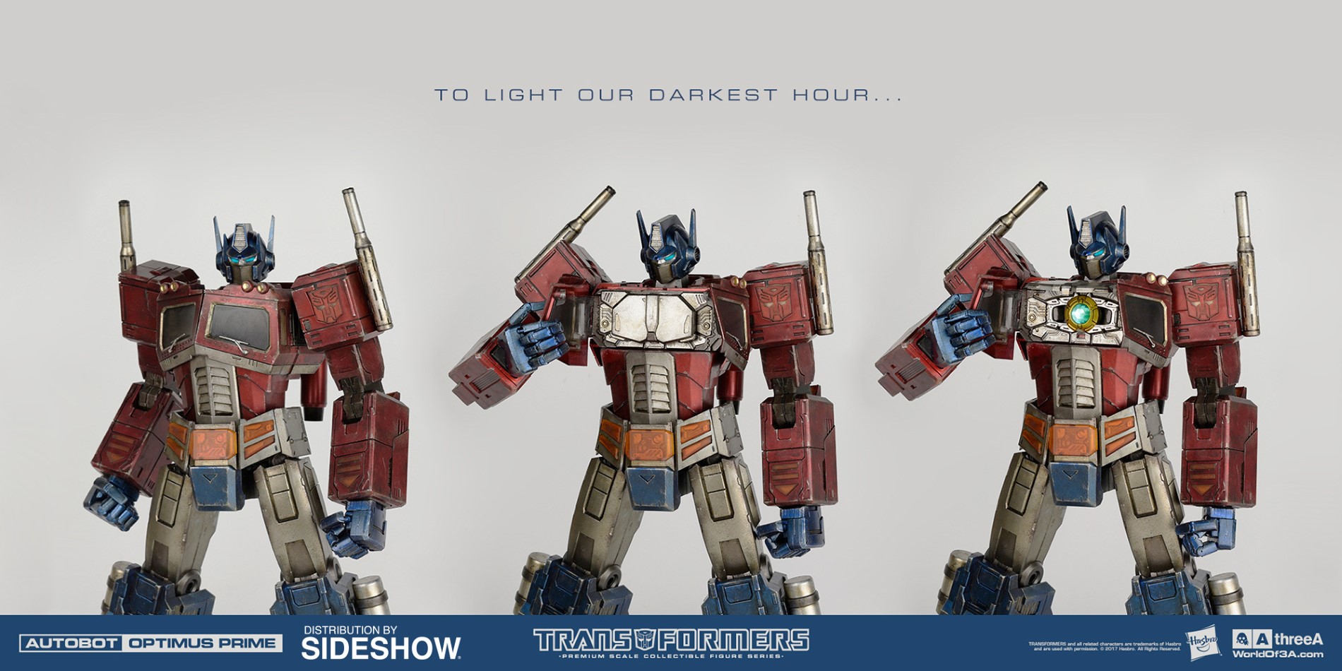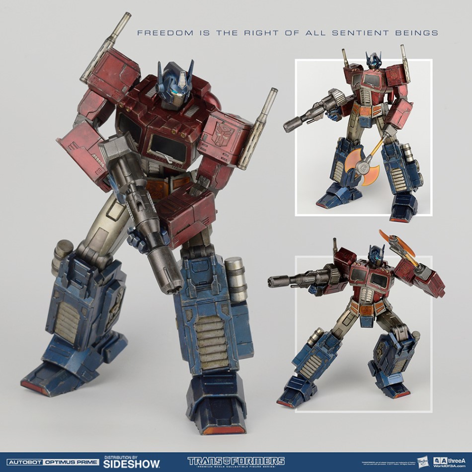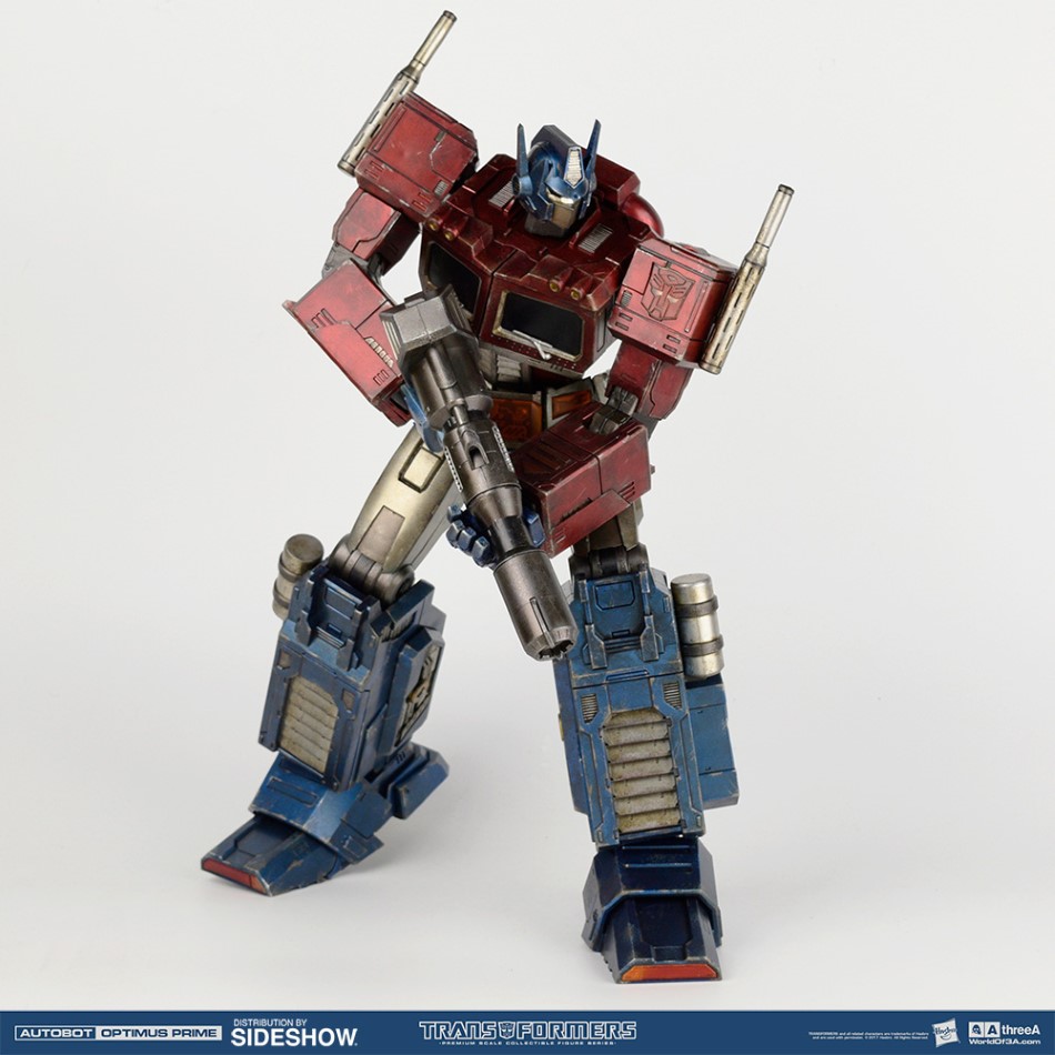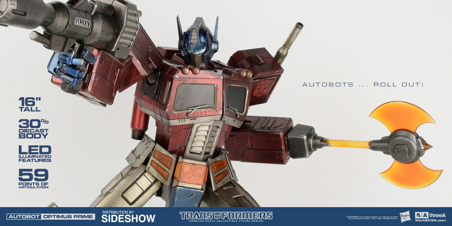 Hasbro and 3A proudly present the first release in the epic Transformers Generation One Premium Scale Collectible Series: the heroic Leader of the Autobots, Optimus Prime! Taking direct inspiration from the 1980s toy and animated series character model, Ashley Wood and the development team at ThreeA have taken a remixed approach that blends their uniquely stylized aesthetics while retaining Optimus Prime’s original iconic look.The Optimus Prime Classic Edition stands approximately 16” (40.64cm) tall and bears a stylized brawler-esque physique. The Classic Edition features a hefty 30% die-cast body, heavily weathered metallic paint, LED illuminated detailing, and an incredible range of articulation – including opening Matrix Chamber. The tankards and wheel wells are removable for a more streamlined animation style appearance. Transformers Generation One Optimus Prime comes complete with interchangeable Energon Axe and his iconic Blaster Rifle. LicenseTransformersTypeCollectible FigureManufacturerThreeA ToysArtistAshley Wood (Design) ADDITIONAL DETAILS & DIMENSIONSExpected to ShipAug 2017 - Oct 2017Item shown is a prototype. When shipped, the final production piece may differ in appearance.Product Size16 H (406.4mm)*Dimensional WeightTBDInt'l Dim. WeightTBD* Size and weight are approximate values.SKU902953UPC4897056213951Price $390.00