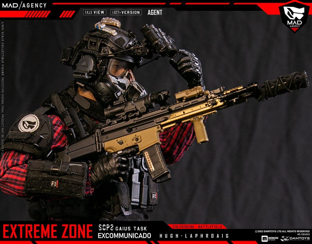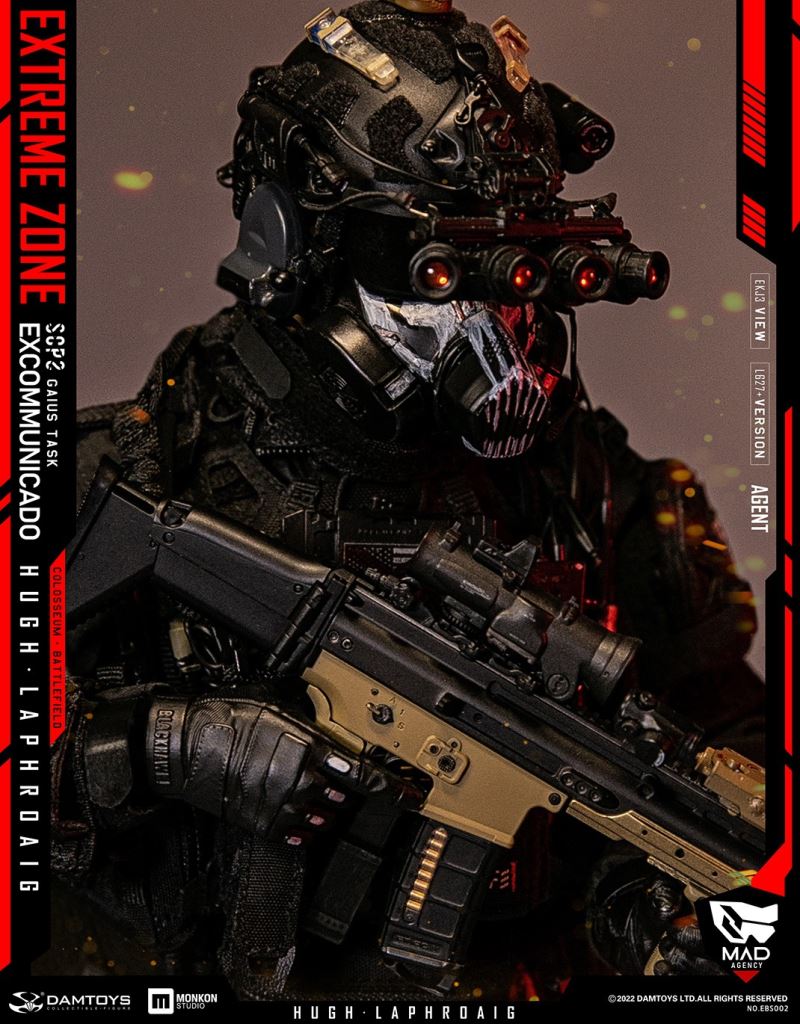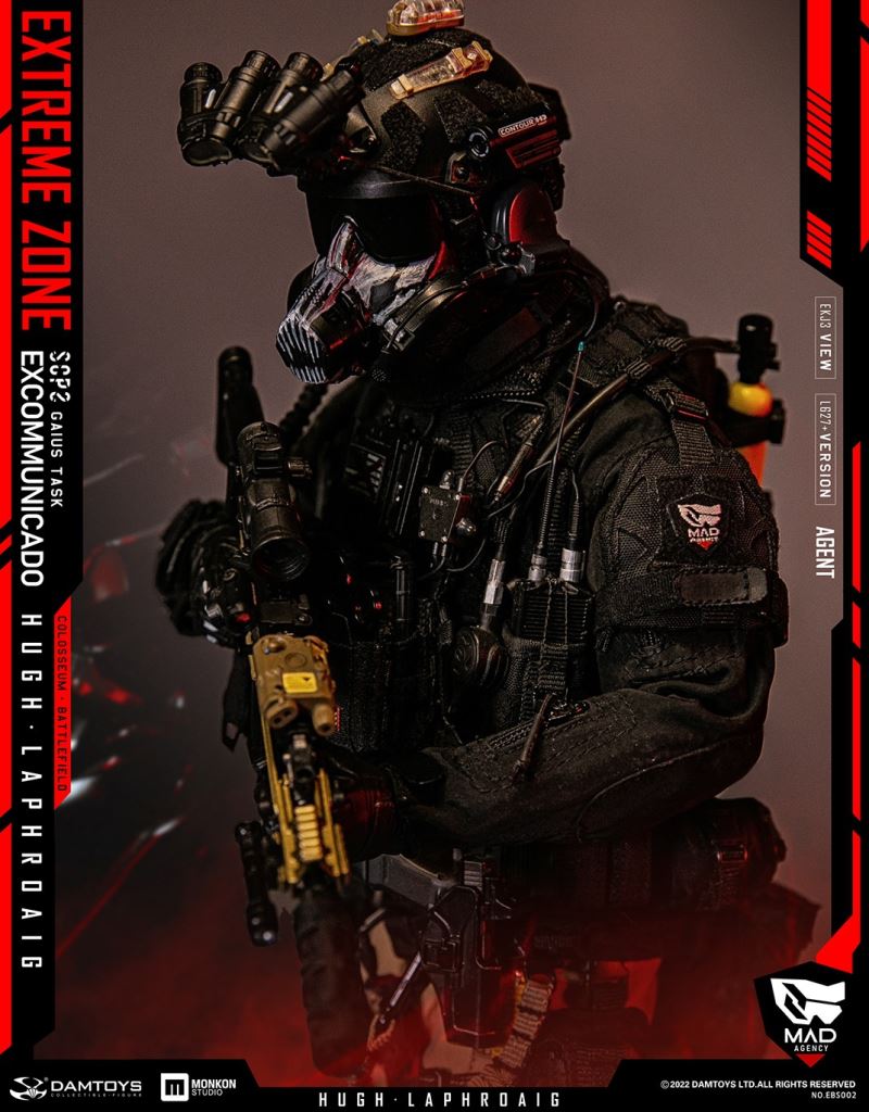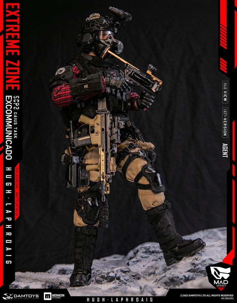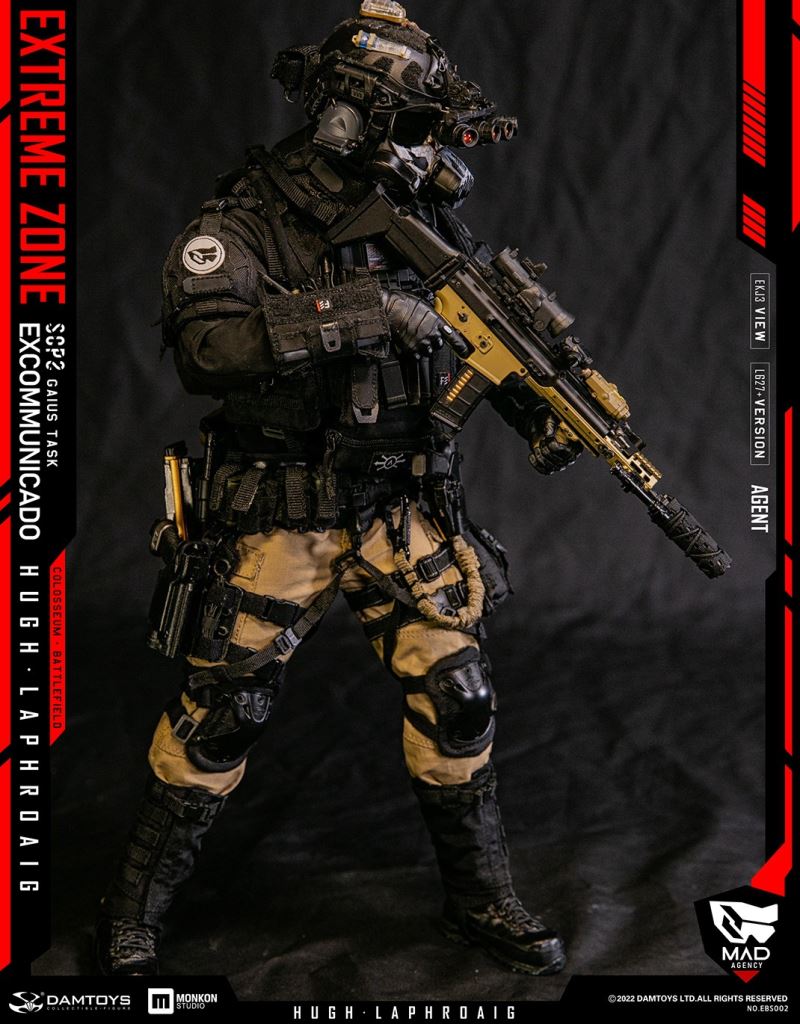Damtoys 1/6th scale EXTREME ZONE Agent HUGH LAPHROAIG Collectible Figure SpecificationsNO.EBS002BC:6970569621197PARTSLIST:-HIGHLY DETAILED HEAD SCULPTURE-DAM 3.5 ACTION BODY-3 INTERCHANGEABLE HANDSCOSTUMES:PLAID SHIRTSOFT-SHELL JACKETTACTICAL VESTBULLETPROOF VESTSHOULDER PADSNECK-PROTECTORSPANTSBELTTACTICAL BELTBOOTSOUTDOOR GAITERSKNEE PADSWEAPONS:MK16 ASSAULT RIFLESF LIGHTSILENCERSUPPRESSOR COVERPTS RAILMK16 MAG X25.56 MAG WITH BASE PAD X45.56 MAG POUCH X3GRIPRAIL SLING ATTACHMENTTACTICAL SLINGT1 RED DOT SIGHT1.5-6X SIGHT WITH REDDOT SIGHTREAR SIGHTFRONT SIGHTPEQ LASERG17 WITH REDDOTCUSTOM G17SF LIGHTG17 MAG X4G17 30R MAGCOMBAT KNIFE WITH SCABBARDM320 GRENADE LAUNCHER WITH REDDOT SIGHTM320 HOLSTERMOLLE STRIKE PLATFORMM320 RAIL MOUNT40MM GRENADE X4ACCESSORIES:GAS MASKHELMETMPLS LED LIGHTHD CAMERANVG MOUNTGROUND PANORAMIC NIGHT VISION GOGGLESTROBE LIGHTV-LITE(BLUE & RED)NIGHT VISION GOGGLE BATTERY WITH POUCHTACTICAL HEADSET WITH PTTAN/PRC-148 MBITR RADIORADIO POUCHJC PHONE AND MOUNTG2 FLASHLIGHTG2 FLASHLIGHT SPEED HOLSTERGRG POUCHDROP HOSTER CQC WAIST HOLSTERDROP MAG POUCHTRI-FOLD RESTRAINTS PLASTICUFFSFAST PISTOL MAG POUCH CQC PISTOL MAG POUCH x2DOUBLE PISTOL MAG POUCHMULTI-FUNCTION TOOL CLAMPTOOL CLAMP POUCHSCISSORSSCISSORS POUCHDUMP POUCHDOUBLE 40mm GRENADE MAG x2GRENADE POUCH x2GP POUCH AGP POUCH BPERSONAL RETENTION LANYARDMULTI HYDRO PACKCLIMBING HARNESSDROP POUCH FANNY PACK TOOL POUCHCP SIDE-PULL MAG POUCHPATCHES x 9HABD IIHABD II WITH POUCH