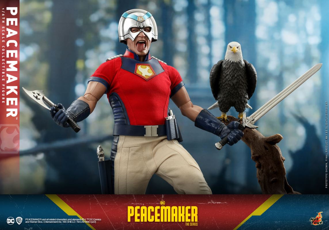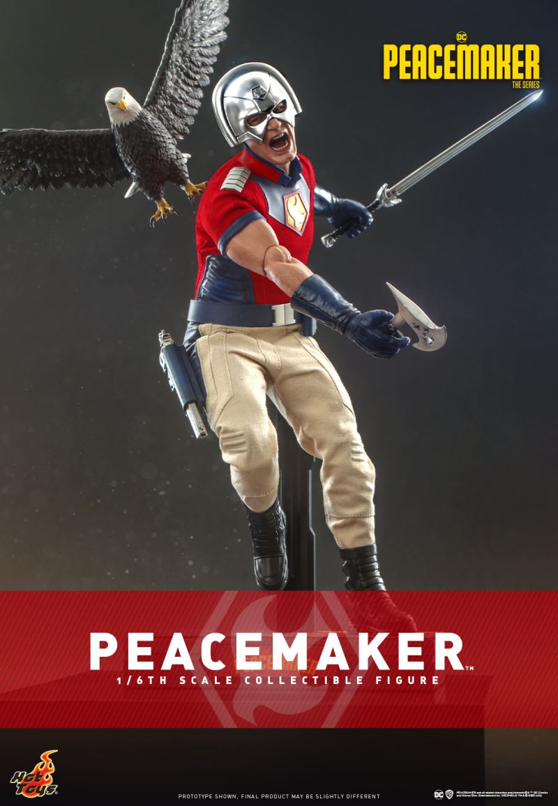 ฟิกเกอร์สเกล 1/6 สร้างขึ้นอย่างประณีตด้วยรูปลักษณ์อันน่าทึ่งของ Peacemaker ซึ่งแสดงโดยจอห์น ซีน่าในซีรีส์แอ็กชัน โดดเด่นด้วยส่วนหัวของหมวกกันน็อคที่พัฒนาขึ้นใหม่และหมวกกันน็อคแบบเปลี่ยนได้ซึ่งเคลือบด้วยโครเมียมสีเงินพร้อมรายละเอียด ลิ้นที่ติดได้เพื่อสร้างการแสดงออกทางเลือก เครื่องแต่งกายที่ออกแบบมาเป็นพิเศษ อาวุธต่างๆ เช่น ดาบ ขวาน และขาตั้งหุ่น เพื่อนสนิทของการแสดง - Eagly จะมาเป็นอุปกรณ์เสริมขนาด 1/6 พร้อมปีกที่กางออกเพื่อประสบการณ์สะสมที่สมบูรณ์