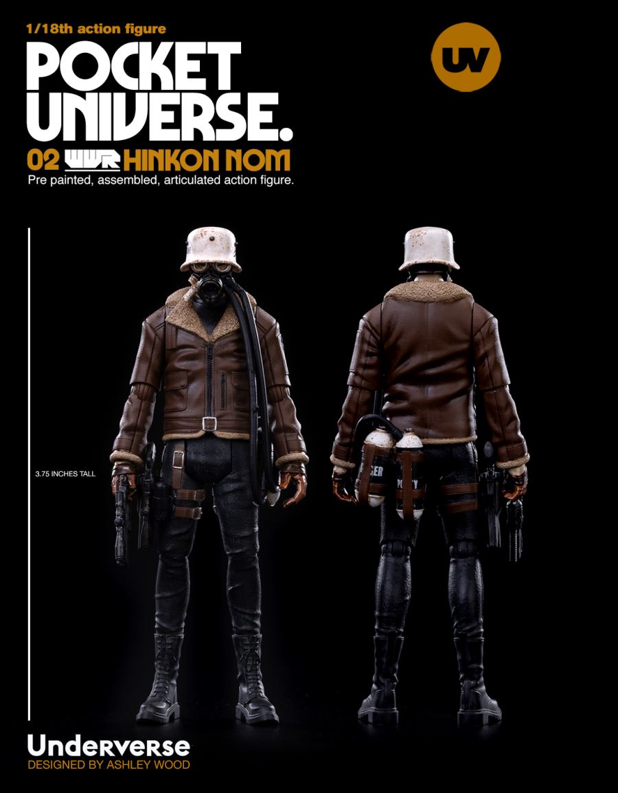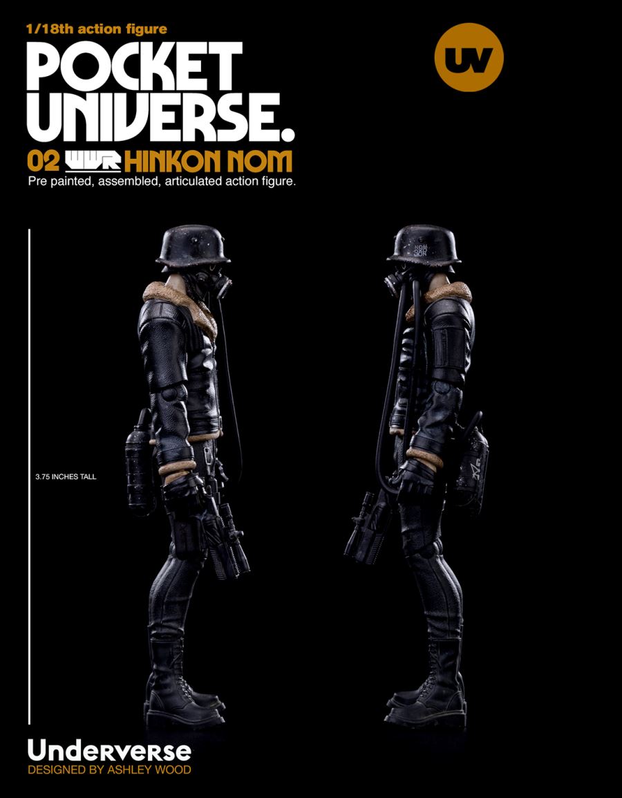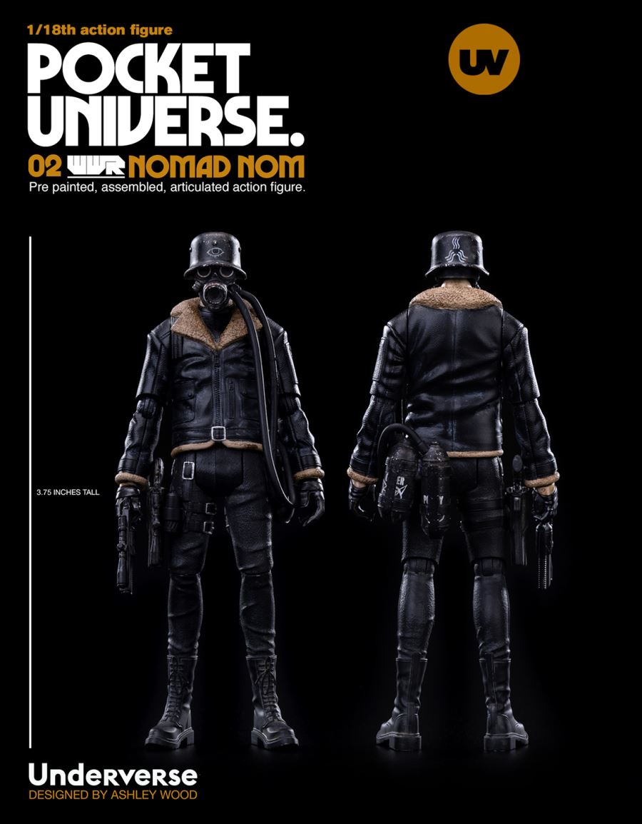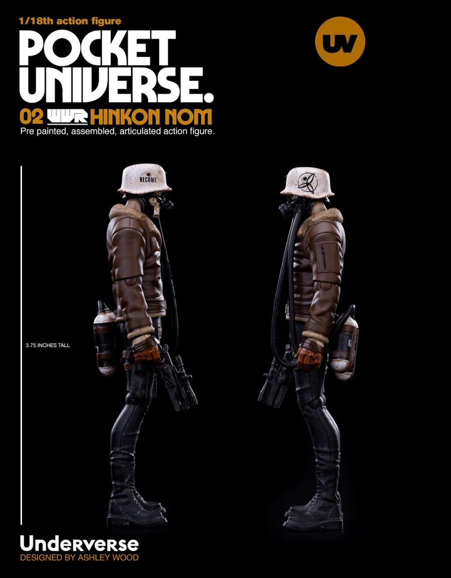 Underverse 1/18 POCKET UNIVERSE TRACKER NOM HINKONFeatures:Approximately 3.75inches (9.53cm) Tall9 Points of ArticulationFully Painted and AssembledIncludes:1x Tracker NOM Hinkon/Nomad Dritte Disciple NOM1x NEMIZA Revolver with Scope 1x Holstered NEMIZA Revolver Materials:ABS, PVC--------------------------Underverse 1/18 POCKET UNIVERSE WWR2NOMAD DRITTE DISCIPLE NOMFeatures:Approximately 3.75inches (9.53cm) Tall9 Points of ArticulationFully Painted and AssembledIncludes:1x Tracker NOM Hinkon/Nomad Dritte Disciple NOM1x NEMIZA Revolver with Scope 1x Holstered NEMIZA Revolver Materials:ABS, PVCDesigned and Created by Ashley WoodSculpted by Maxim Produced by Underverse