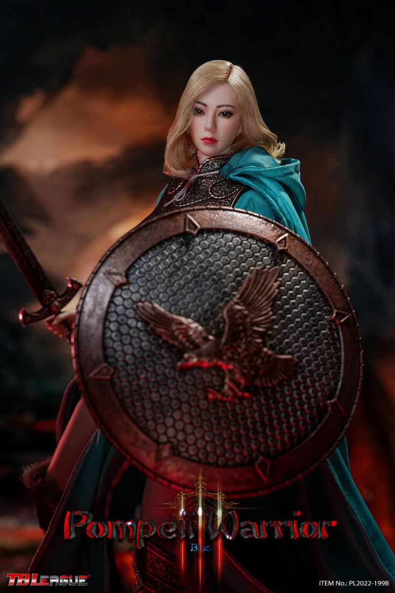 Pompeii Warrior - Blue 1/6 Scale Action FigureItem Name: Pompeii Warrior - Blue 1/6 Scale Action FigureItem No: PL2022-199BBar Code: 697 127233 160 1Packing List:1) 1 x head sculpt2) 1 x TBLeague 1/6 scale female seamless body with metal skeleton3) 1 x cloak with hood4) 1 x one-piece armor for upper body5) 1 pair x armor pieces for lower arms6) 1 x belt7) 1 x long-sleeved dress8) 1 pair x shoes9) 1 x shield10) 1 pair x lower leg sleeves11) 1 pair x armor pieces for lower legs12) 3 pairs x interchangeable hands13) 1 x sword14) 1 x sword scabbard15) 1 pair x underpantsPackaging:1 product/individual boxGW: 1.52 kgMeasurements: 24.3cmx10cmx38cm6 products/master cartonGW: 10.02 kgMeasurements: 51cmx32.5cmx40.5cm
