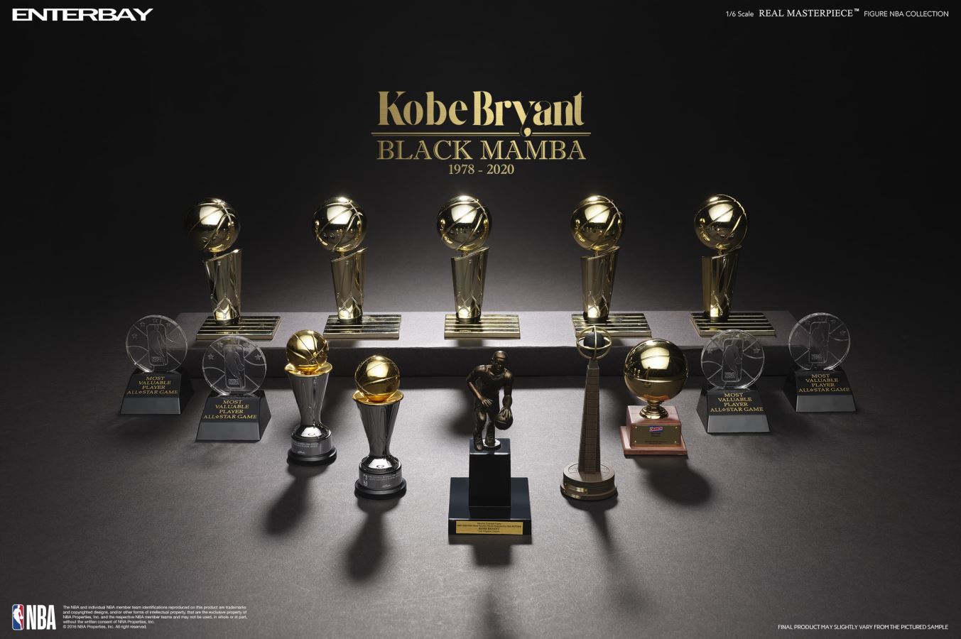 วันนี้ เรารำลึกและรำลึกถึงชีวิตในตำนานอันสั้นและรุ่งโรจน์ของ Black Mamba และความสำเร็จที่ไม่มีใครเทียบได้ในสนาม เราจะใช้รูปแบบของ "การผลิตในเวลาจำกัด" เพื่อมอบให้กับลูกค้าและแฟน ๆ ผู้มีอุปการคุณที่สนับสนุน ENTERBAY มาโดยตลอด โดยมี "การต่อสู้ครั้งสุดท้ายเพื่อเกษียณอายุ" สีดำ mamba เป็นแบบจำลองการตั้งค่า รางวัลและความสำเร็จทั้งหมดของอาชีพ N BA รวมถึง Hall of Fame Frame รู้สึกเป็นเกียรติที่ได้สร้างสรรค์ผลิตภัณฑ์ Mamba สีดำรุ่นสุดท้ายที่ไม่มีใครเทียบได้ ซึ่งช่วยให้จิตวิญญาณของ Mamba สีดำคงอยู่ตลอดไป