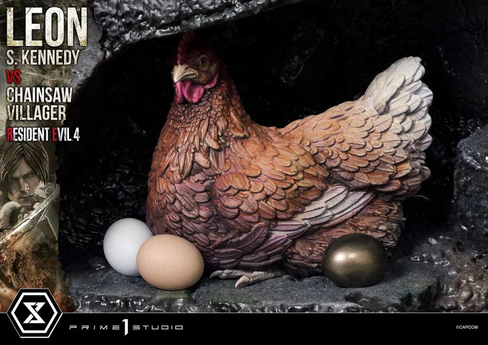 A Bullet Piercing Madness, A Chainsaw Evoking Fear.The Tension of Resident Evil 4, Frozen in an Iconic Showdown.Hailed as the pinnacle of remake titles, Resident Evil 4 brings to life the iconic showdown between Leon S. Kennedy and the Chainsaw Villager!This statue captures the clash of life and death in the world of Resident Evil 4, depicting the intense battle between Leon and his nemesis. Every detail, from their locked gazes to the weight in their stances, has been carefully crafted to freeze this tense moment in time.Leon’s mature expression, the gunsmith’s engraving on his handgun, and the soft fur of his bomber jacket are all meticulously recreated with diverse sculpting and painting techniques, bringing out his distinctive charm.The Chainsaw Villager is rendered with equally terrifying precision. The vivid splatter of blood, finely tuned with precise color saturation, the hand-painted abdominal sprays, and the eerie burlap sack that hints at the head beneath—all are crafted in extraordinary detail.The custom base, featuring the Ganado wielding an axe, evokes the madness of a desolate European village. From the Los Iluminados cult emblem to the chickens and gold and silver eggs, every inch is filled with details to explore.The statue also includes swappable parts, such as two distinct head sculpts for Leon and both arms holding either his custom handgun or combat knife. Leon’s slightly parted lips convey heightened emotion, while his extended left hand measures distance, ready for a parry or counterattack. Each part brings to life a variety of combat scenarios.Additionally, the Bonus Version features an exclusive right hand holding the Fighting Knife—a weapon that proves its worth against the toughest foes. Equip Leon with this piece to match your tactical preferences.Add a piece of this grueling rescue saga to your collection!Specifications:Resident Evil 4 Themed BaseTwo (2) Swappable Heads (Closed Mouth, Open Mouth)Two (2) Swappable Pair of Arms (SG-09 R, Combat Knife)One (1) Swappable Right Hand (Fighting Knife) [BONUS PART]Notice:Prototype samples shown.Product details could be subject to change without further notice.Please note the final product specifications may differ because each product is Handmade.Since the product is still in the development stage, the Size (up to 10%) & Weight (up to 10kg) may be changed during the production stage.©CAPCOMDETAILSBrandsPRIME 1 STATUECollectionUltimate Premium MasterlineSeriesResident EvilScale1/4 ScaleProduct CodeUPMRE4-02SProduct Size Approx.H:76cm W:52cm D:70cmCarton(Est):2 boxProduct Weight Approx.19.7 kgMaterialsPolystone and other materialsJAN4582647120885