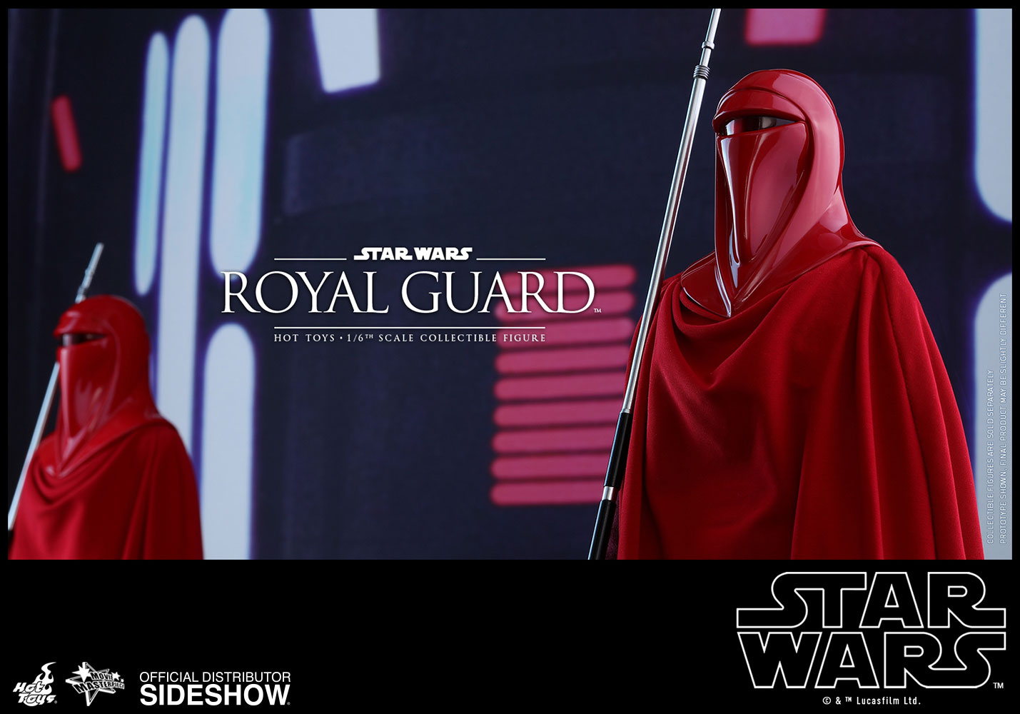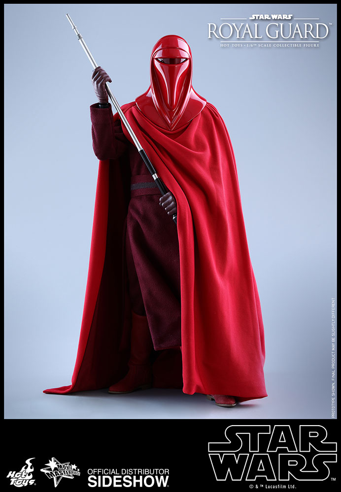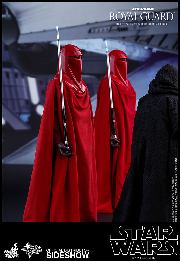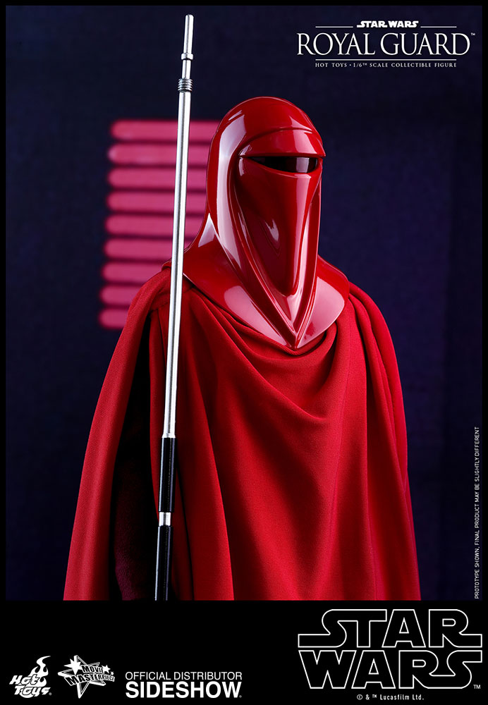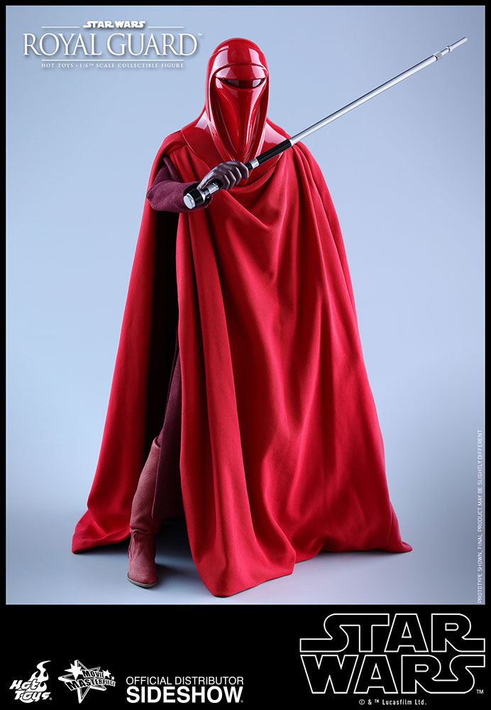 ABOUT THIS SIXTH SCALE FIGUREIn Star Wars: Episode VI Return of the Jedi, fans met the ominous evil Sith Emperor Palpatine and also introduced us to his Royal Guards. Resplendent in crimson robes and armor, the Imperial Royal Guard protected the Emperor. Secrecy shrouded the Guard, with rumors abounding about the sentinels' backgrounds and combat capabilities. Sideshow and Hot Toys are excited to present the new sixth scale collectible figure of the Royal Guard for all Star Wars fans! The highly-accurate collectible figure is specially crafted based on the appearance of Royal Guard in Star Wars: Episode VI Return of the Jedi. It features a finely sculpted Royal Guard helmet, expertly tailored robe and outfit, a Force pike, and figure stand.Your Star Wars collection will not be complete unless you have the Emperor and his Royal Guards in your display!LicenseStar WarsTypeSixth Scale FigureManufacturerHot ToysWHAT'S IN THE BOX?The Royal Guard Sixth Scale Collectible Figure specially features:Authentic and detailed likeness of Royal Guard in Star Wars: Episode VI Return of the JediA newly developed helmet with specially applied glossy red colored paintingApproximately 31 cm tallNewly developed body with over 30 points of articulationSix (6) pieces of interchangeable gloved hands including: - Four (4) Force pike holding hands - One (1) relaxed left hand - One (1) gesturing left handCostume:One (1) newly developed red colored cloakOne (1) dark-red colored robe with beltOne (1) pair of dark-red colored pantsOne (1) pair of red colored bootsWeapon:One (1) Force PikeAccessory:Specially designed figure stand with Royal Guard nameplate and Star Wars logoADDITIONAL DETAILS & DIMENSIONSExpected to ShipJan 2019 - Mar 2019Item shown is a prototype. When shipped, the final production piece may differ in appearance.Product Size12.20 H (309.88mm)*Dimensional WeightTBDInt'l Dim. WeightTBD* Size and weight are approximate values.SKU902996UPC4897011185811© & ™ Lucasfilm Ltd. © 2018 Hot Toys Limited. All Rights Reserved.