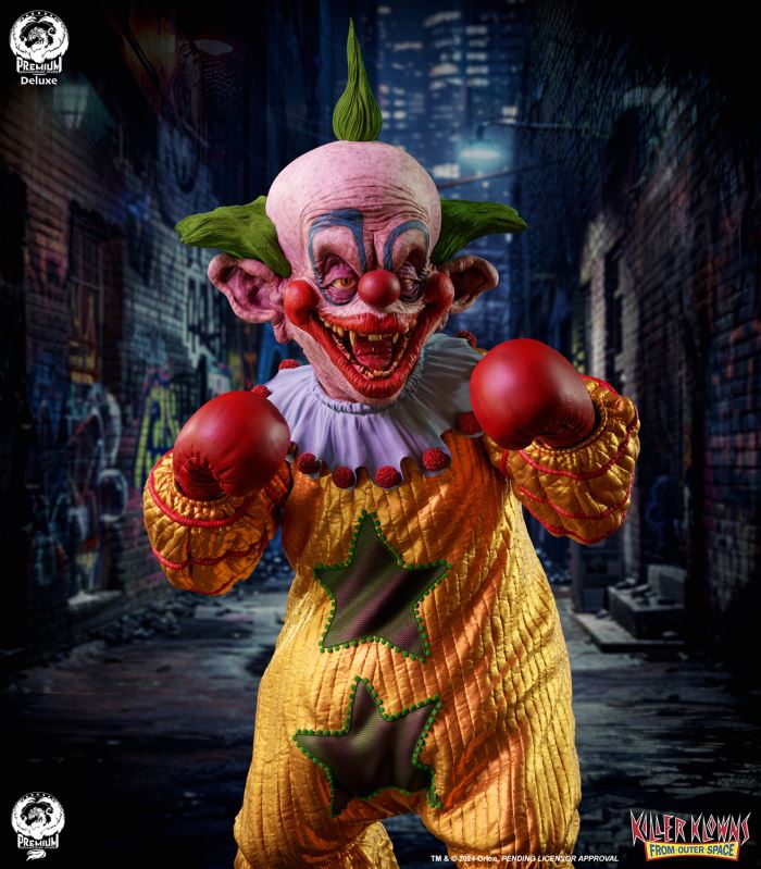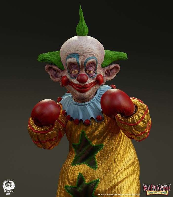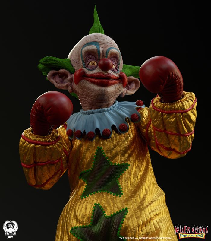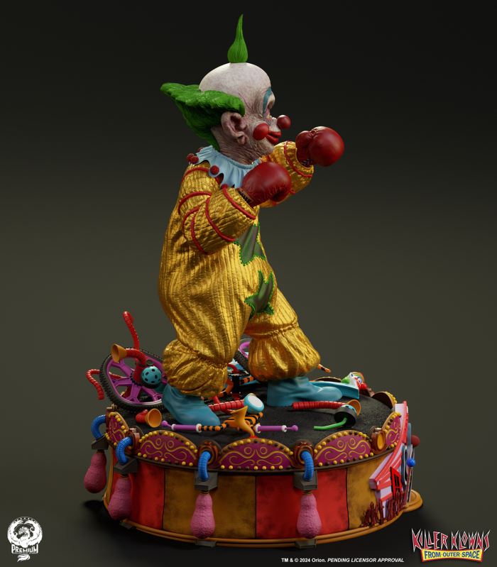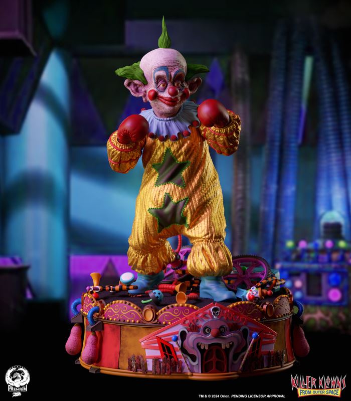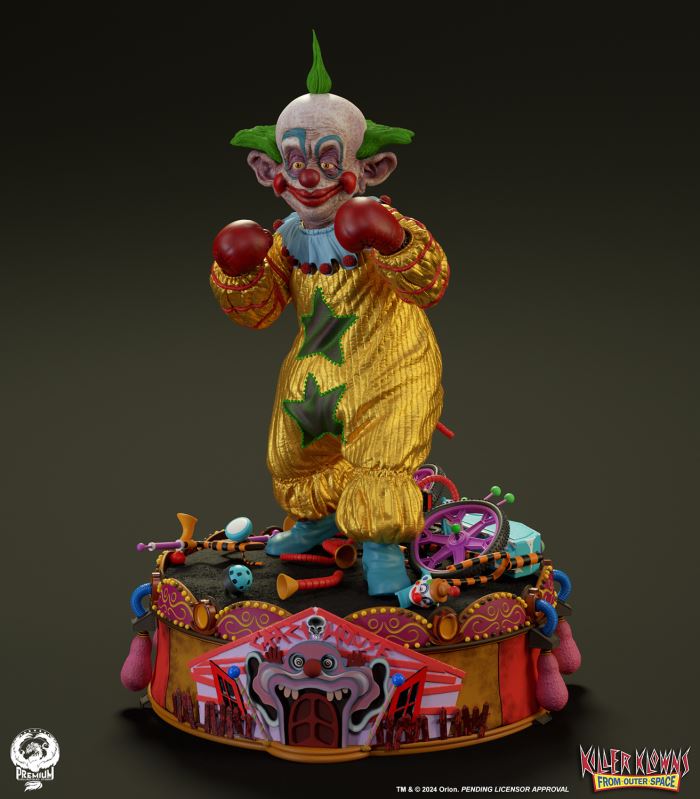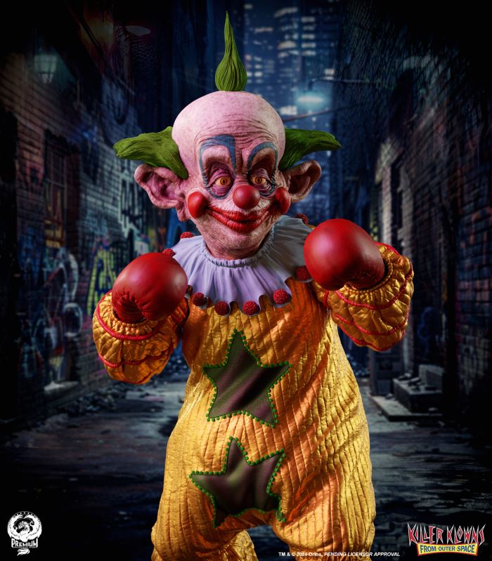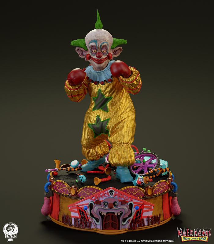 Put up your dukes!Sideshow and Premium Collectibles Studio are excited to announce the Killer Klowns from Outer Space: Shorty Quarter Scale Premier Series Statue from the cult classic 1988 film.Depicted in his garish yellow jumper, this tiny terror is squared up and ready to brawl. Standing nearly 22” tall, Shorty sports a grisly grin from ear to oversized ear. His vacant expression is brought to horrible life by the splotchy application of his clown makeup and his cold, unwavering gaze. Shorty's shimmering yellow costume is accented with green stars and red piping on the sleeves matching the color of his boxing gloves and ruffled collar tassels.The base is filled with details from the iconic Crazy House and is littered with parts of Shorty's colorful bicycle.Add a little humor to your collection and pre-order the Killer Klowns from Outer Space: Shorty 1:4 Scale Premier Series Statue today!Purchase LimitsLimit of 2 per person.View in ARSee in AR (Mobile Device)Product SizeHeight: 22 (56 cm)Width: 17 (43 cm)Depth: 15 (38 cm) ** Size and weight are approx. values​​Learn moreSKU913190Vendor IDKKSHORTY14UPC712179860742