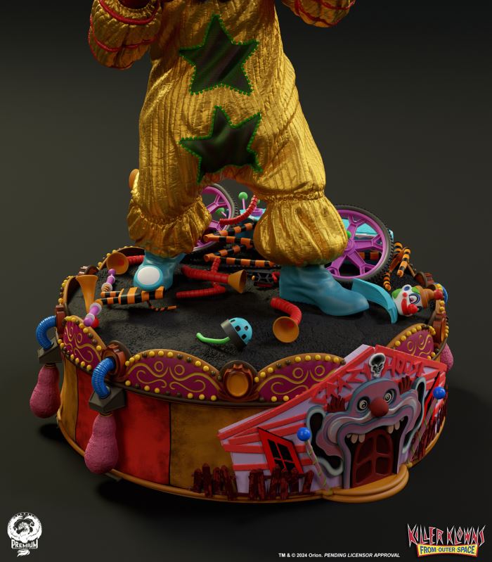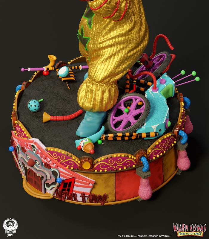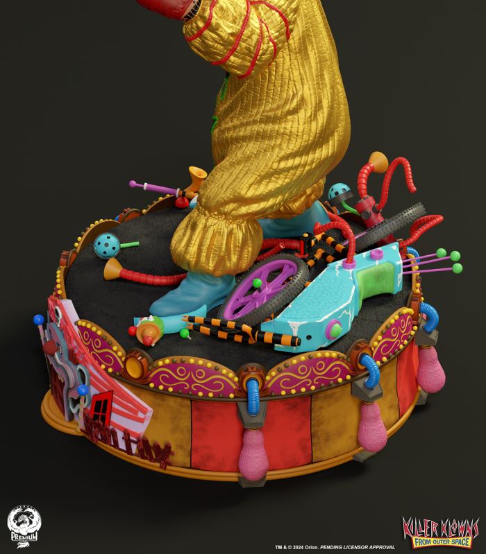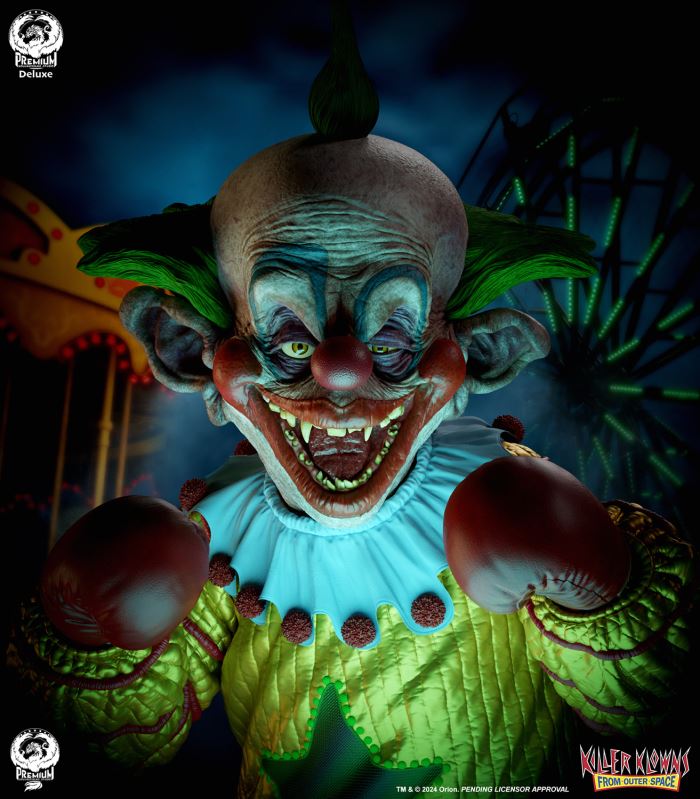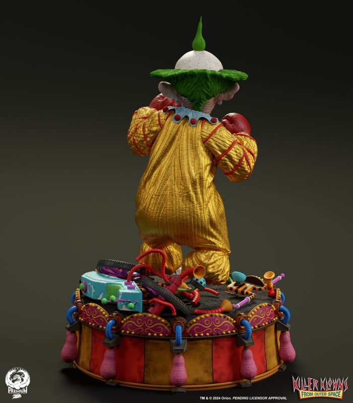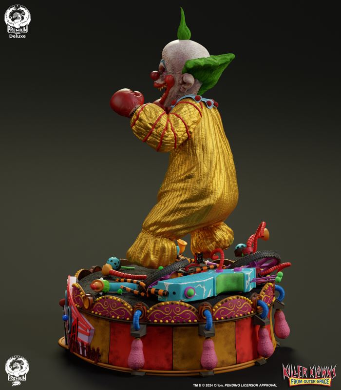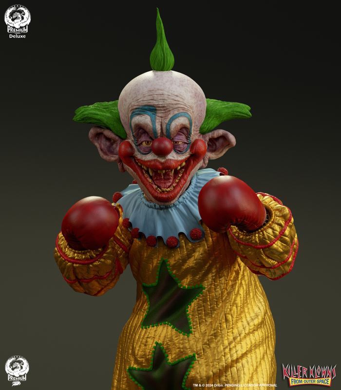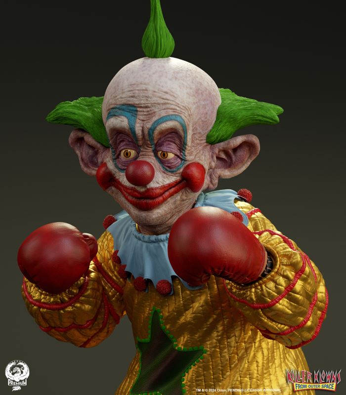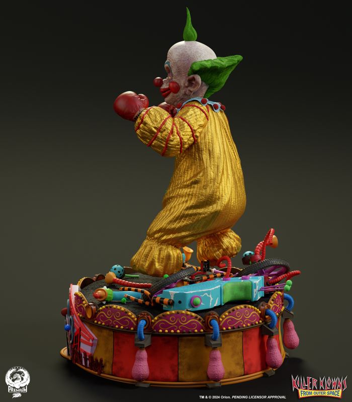 Put up your dukes!Sideshow and Premium Collectibles Studio are excited to announce the Killer Klowns from Outer Space: Shorty Quarter Scale Premier Series Statue from the cult classic 1988 film.Depicted in his garish yellow jumper, this tiny terror is squared up and ready to brawl. Standing nearly 22” tall, Shorty sports a grisly grin from ear to oversized ear. His vacant expression is brought to horrible life by the splotchy application of his clown makeup and his cold, unwavering gaze. Shorty's shimmering yellow costume is accented with green stars and red piping on the sleeves matching the color of his boxing gloves and ruffled collar tassels.The base is filled with details from the iconic Crazy House and is littered with parts of Shorty's colorful bicycle.Add a little humor to your collection and pre-order the Killer Klowns from Outer Space: Shorty 1:4 Scale Premier Series Statue today!Purchase LimitsLimit of 2 per person.View in ARSee in AR (Mobile Device)Product SizeHeight: 22 (56 cm)Width: 17 (43 cm)Depth: 15 (38 cm) ** Size and weight are approx. values​​Learn moreSKU913190Vendor IDKKSHORTY14UPC712179860742