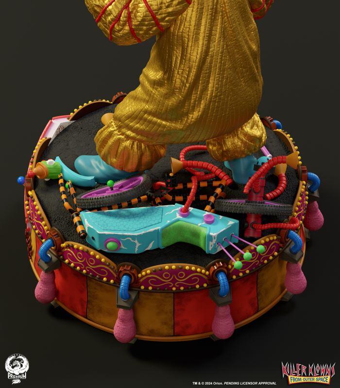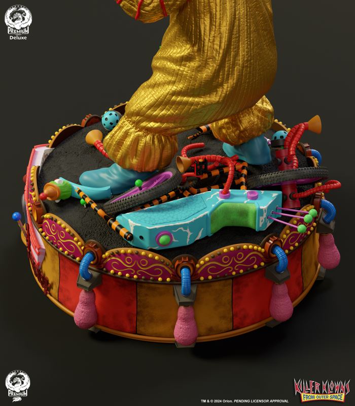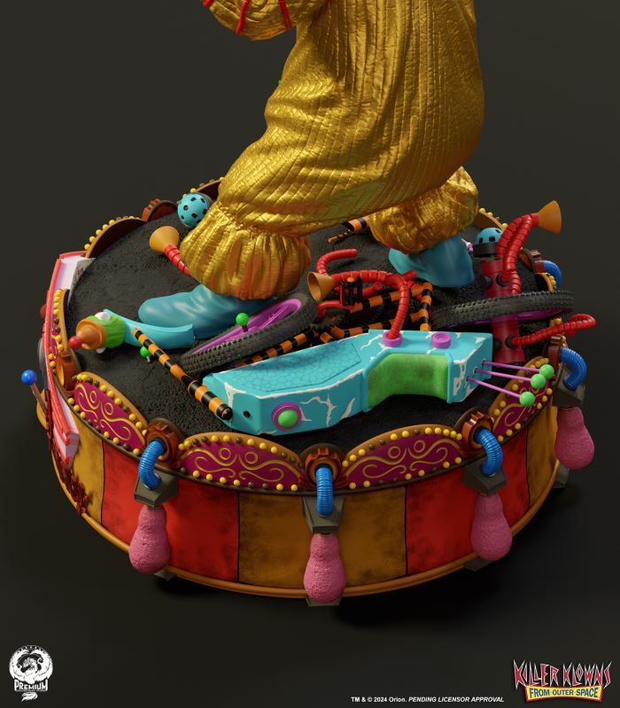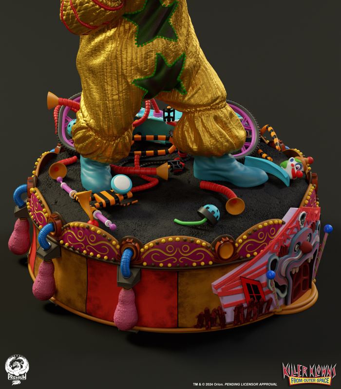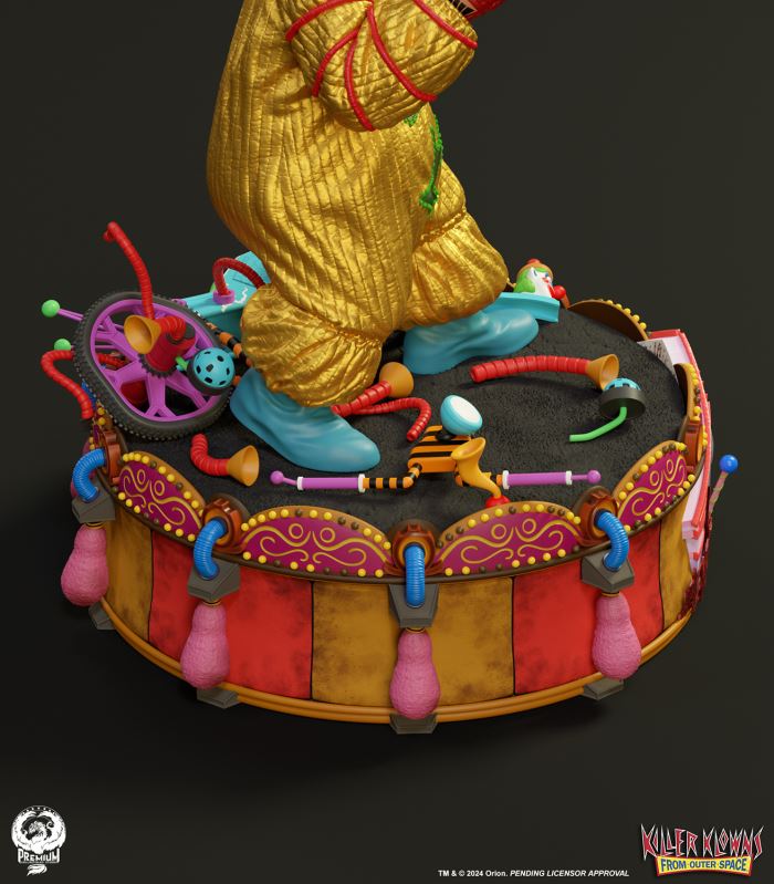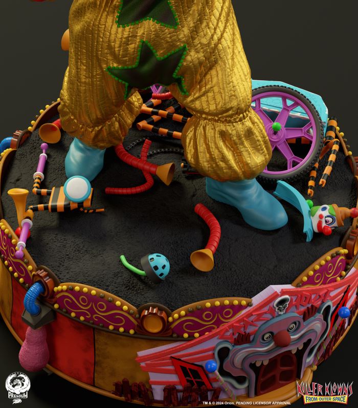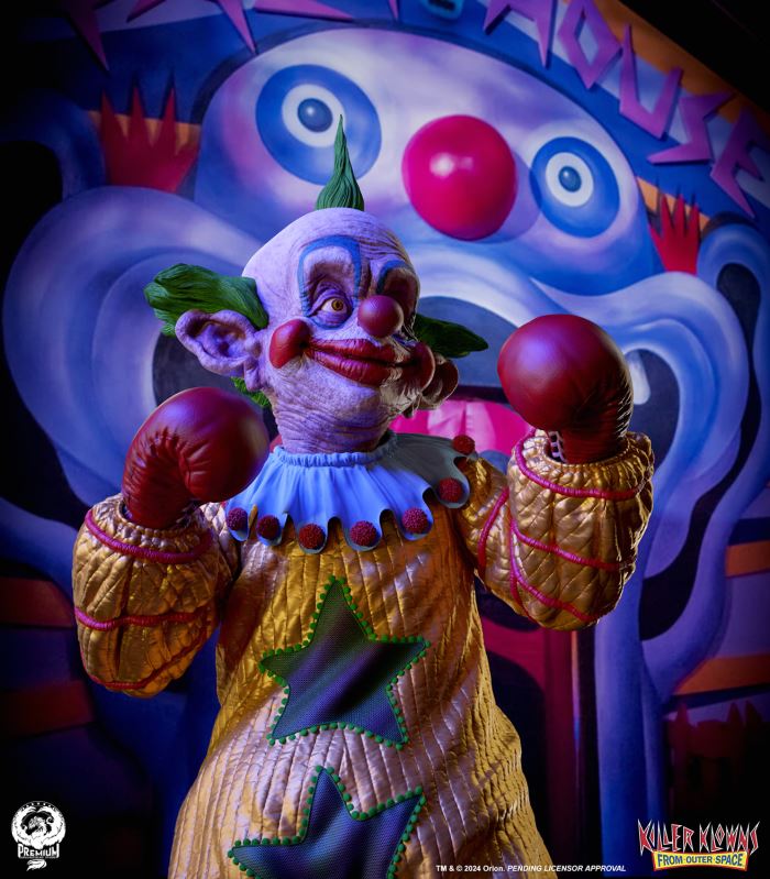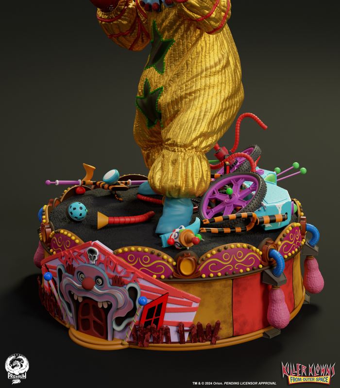 Put up your dukes!Sideshow and Premium Collectibles Studio are excited to announce the Killer Klowns from Outer Space: Shorty Quarter Scale Premier Series Statue from the cult classic 1988 film.Depicted in his garish yellow jumper, this tiny terror is squared up and ready to brawl. Standing nearly 22” tall, Shorty sports a grisly grin from ear to oversized ear. His vacant expression is brought to horrible life by the splotchy application of his clown makeup and his cold, unwavering gaze. Shorty's shimmering yellow costume is accented with green stars and red piping on the sleeves matching the color of his boxing gloves and ruffled collar tassels.The base is filled with details from the iconic Crazy House and is littered with parts of Shorty's colorful bicycle.Add a little humor to your collection and pre-order the Killer Klowns from Outer Space: Shorty 1:4 Scale Premier Series Statue today!Purchase LimitsLimit of 2 per person.View in ARSee in AR (Mobile Device)Product SizeHeight: 22 (56 cm)Width: 17 (43 cm)Depth: 15 (38 cm) ** Size and weight are approx. values​​Learn moreSKU913190Vendor IDKKSHORTY14UPC712179860742